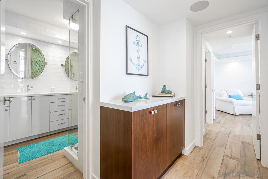 This corner unit is located on the 6th floor of Las Palmas Tower at the highly desirable Coronado Shores with views south to Mexico and across the bay to the Coronado Golf Course, Bay and Bridge. The spectacular arrangement of the sliding windows allows for an indoor/outdoor feeling as if you are perched right on the beach! Rise and shine to enjoy your coffee while watching the crashing ocean waves. A short stroll to the beach and beach club for sunset cocktails. This 3 bedroom, 3 bath unit has 2 primary bedroom suites with king beds and a third bedroom with 2 double beds. Gourment kitchen, designer quality furniture, luxury linens and 2 car garage parking space.