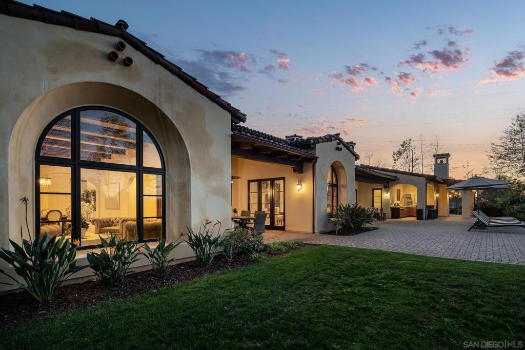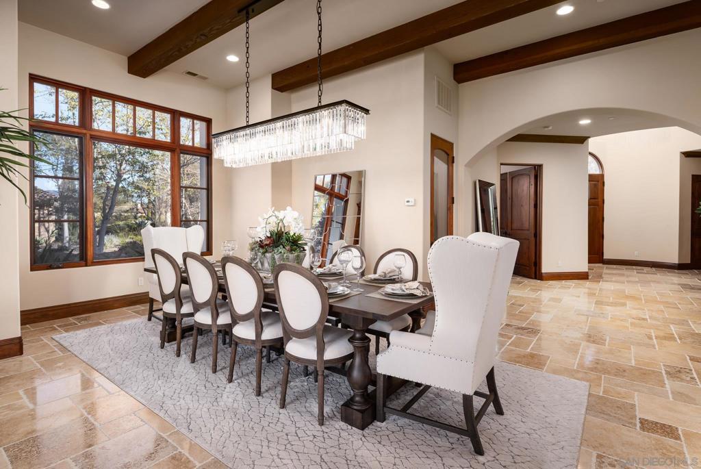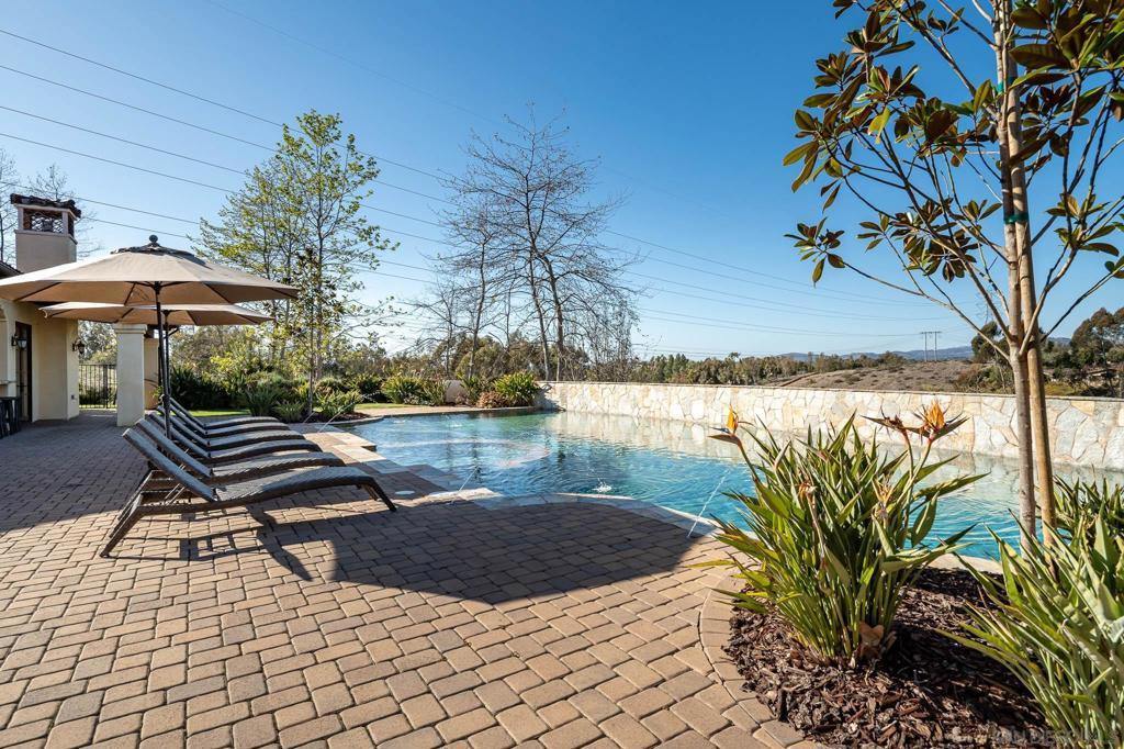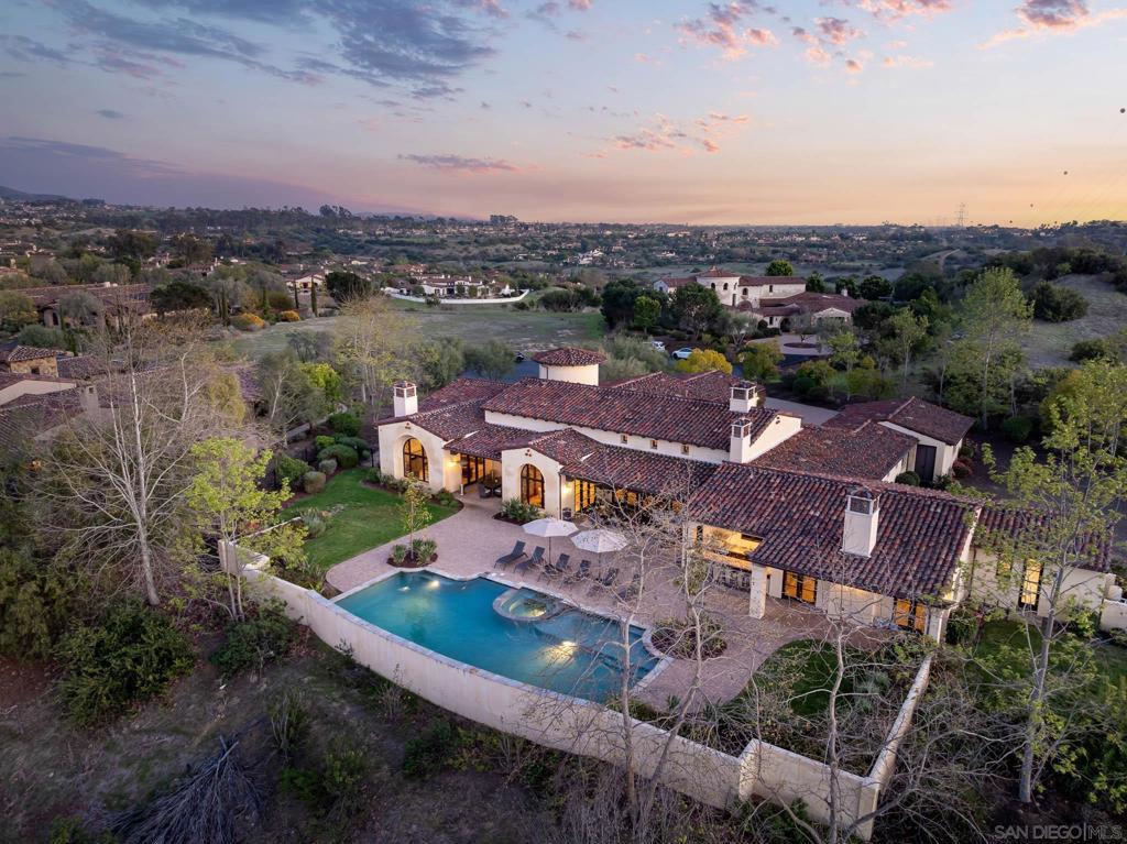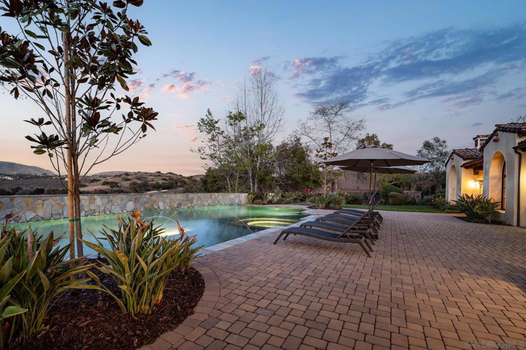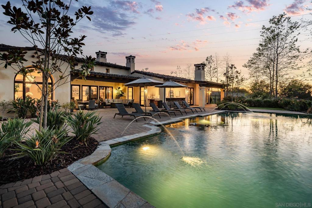 Welcome to 7552 Montien Road, a refined single-story estate built in 2014 by Mulvey Custom Builders and located in the prestigious guard-gated community of Santaluz. Designed to blur the line between indoors and out, this residence invites both effortless entertaining and quiet retreat. Through a serene entry courtyard, you’ll find a flowing open plan with soaring wood-beamed ceilings, travertine floors, and curated designer finishes. The chef’s kitchen combines beauty and function with custom cabinetry, GE Monogram appliances, dual ovens and dishwashers, a 72” built-in refrigerator, 6-burner cooktop, and pot filler—all oriented toward sweeping views of the pool and mountains. The primary suite is a true haven, featuring a spa-like bath with steam shower, soaking tub, fireplace, and French doors that open to a private patio. Each secondary bedroom is generously scaled with walk-in closets and en-suite baths. A tiered theater with pocket doors provides a cinematic experience at home. Outdoors, a resort-style pool and spa, built-in bar with BBQ, and expansive patios offer endless enjoyment under San Diego skies atop a 1.74 acre lot. Set on one of Santaluz’s most sought-after parcels overlooking the 7th green of the Rees Jones-designed course, this residence also benefits from the community’s 3,800 acres of rolling hills, 33 miles of hiking and biking trails, and two clubhouses. Membership opportunities include golf, tennis, spa, fitness, dining, and social events, creating a lifestyle that is both active and secure. OPEN HOUSES by APPOINTMENT ONLY