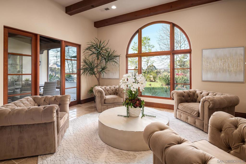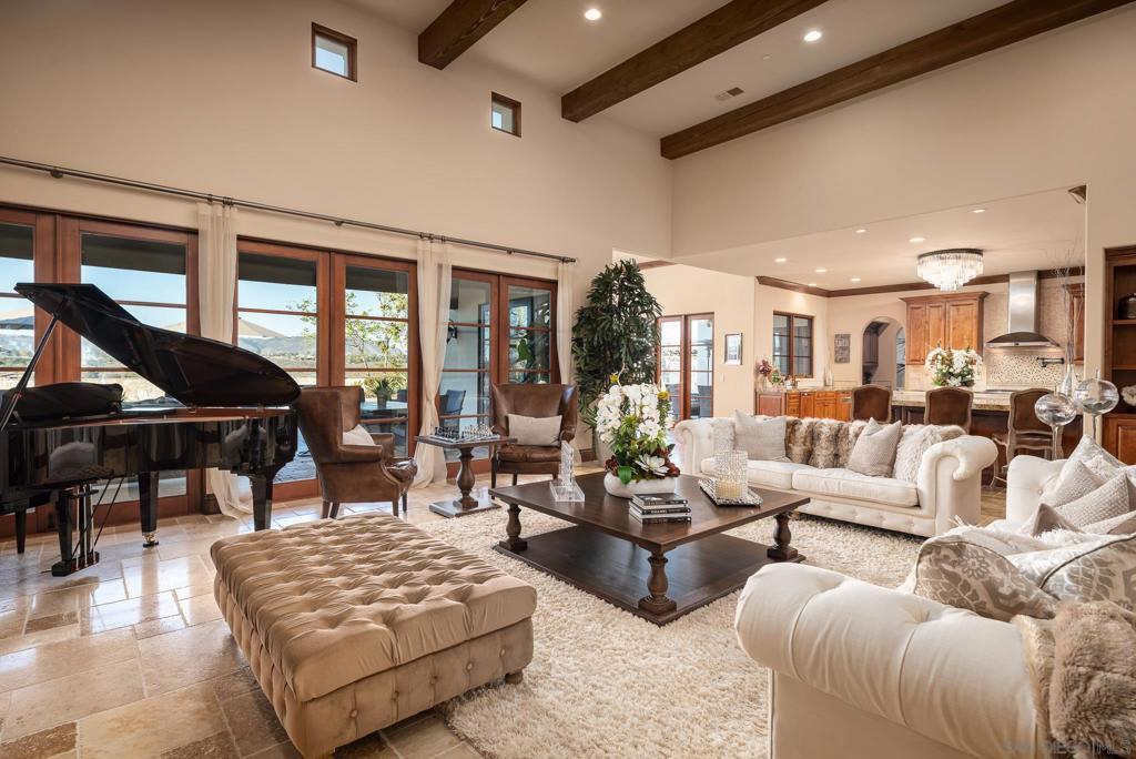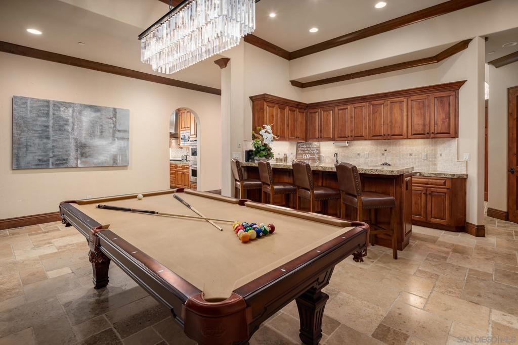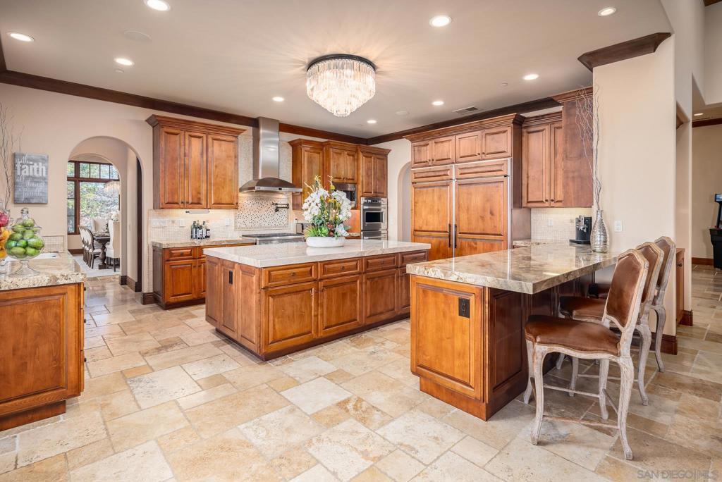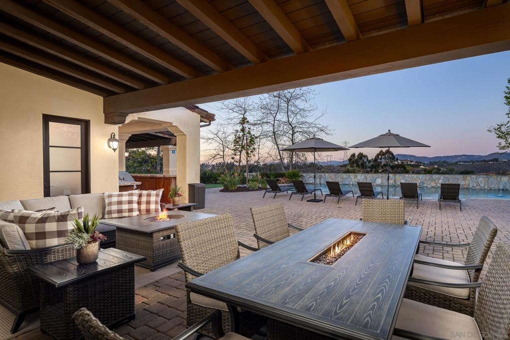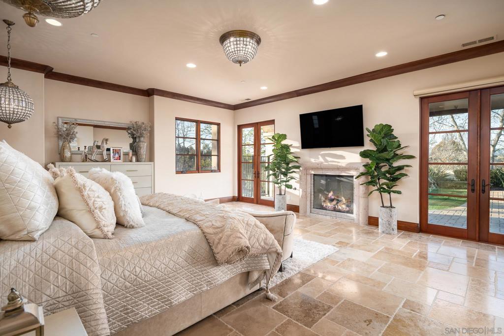 Welcome to 7552 Montien Road, a refined single-story estate built in 2014 by Mulvey Custom Builders and located in the prestigious guard-gated community of Santaluz. Designed to blur the line between indoors and out, this residence invites both effortless entertaining and quiet retreat. Through a serene entry courtyard, you’ll find a flowing open plan with soaring wood-beamed ceilings, travertine floors, and curated designer finishes. The chef’s kitchen combines beauty and function with custom cabinetry, GE Monogram appliances, dual ovens and dishwashers, a 72” built-in refrigerator, 6-burner cooktop, and pot filler—all oriented toward sweeping views of the pool and mountains. The primary suite is a true haven, featuring a spa-like bath with steam shower, soaking tub, fireplace, and French doors that open to a private patio. Each secondary bedroom is generously scaled with walk-in closets and en-suite baths. A tiered theater with pocket doors provides a cinematic experience at home. Outdoors, a resort-style pool and spa, built-in bar with BBQ, and expansive patios offer endless enjoyment under San Diego skies atop a 1.74 acre lot. Set on one of Santaluz’s most sought-after parcels overlooking the 7th green of the Rees Jones-designed course, this residence also benefits from the community’s 3,800 acres of rolling hills, 33 miles of hiking and biking trails, and two clubhouses. Membership opportunities include golf, tennis, spa, fitness, dining, and social events, creating a lifestyle that is both active and secure. OPEN HOUSES by APPOINTMENT ONLY