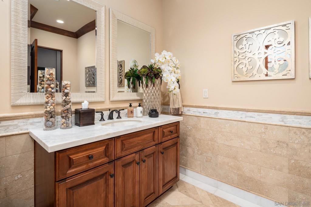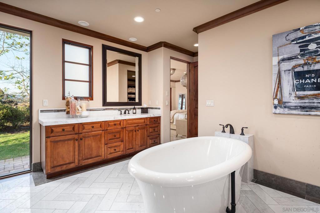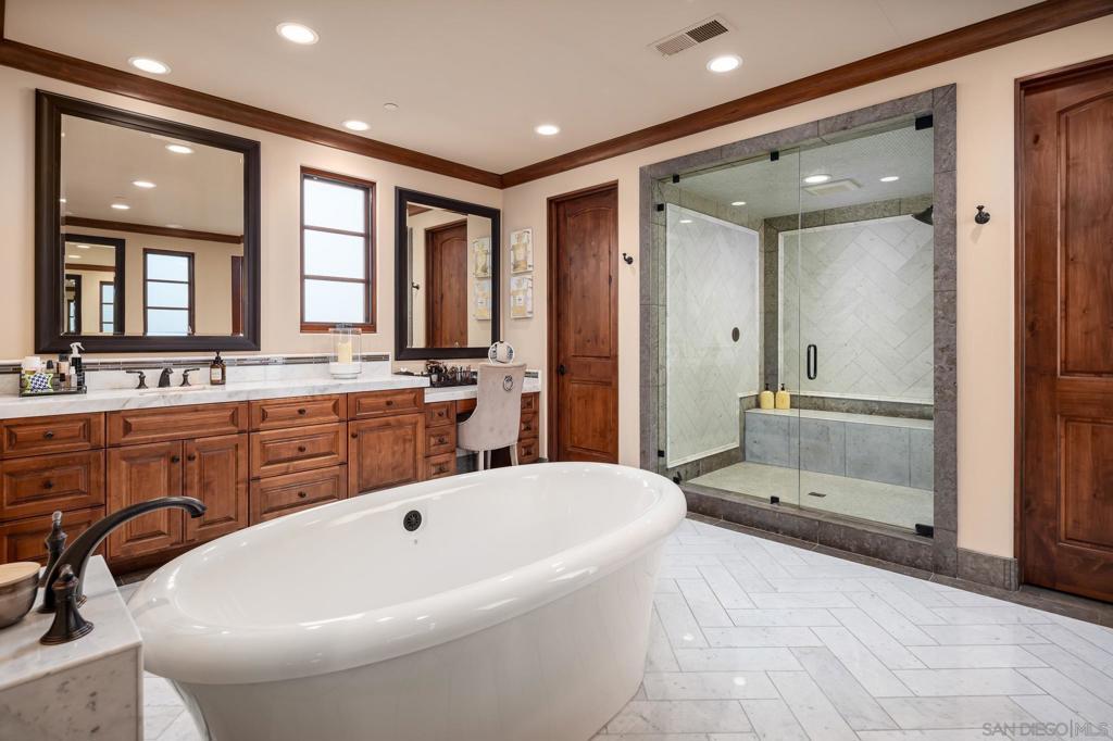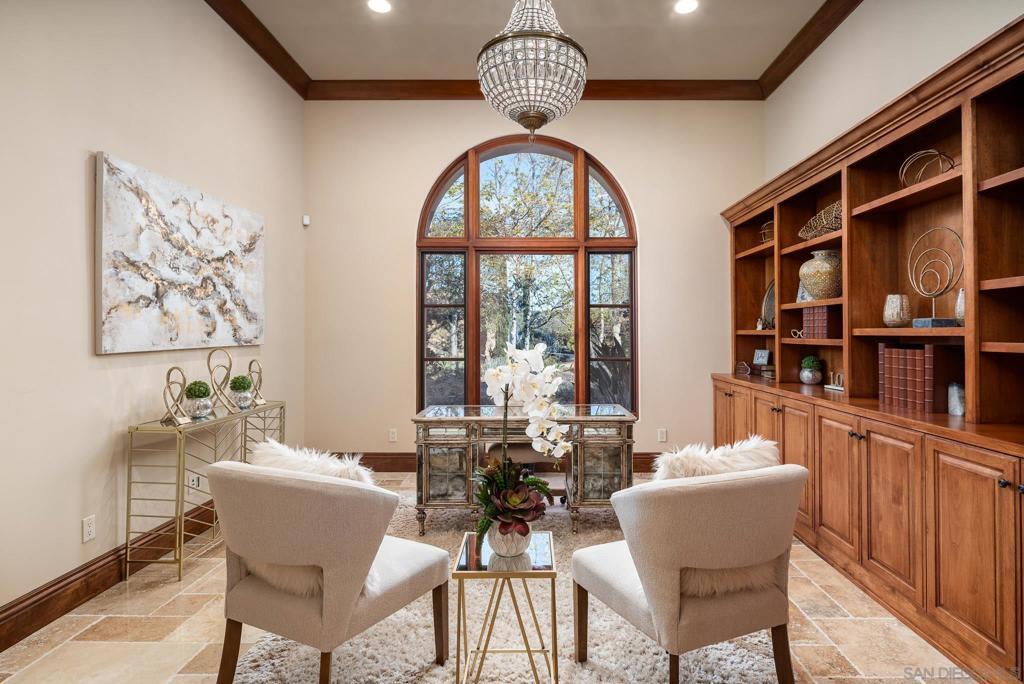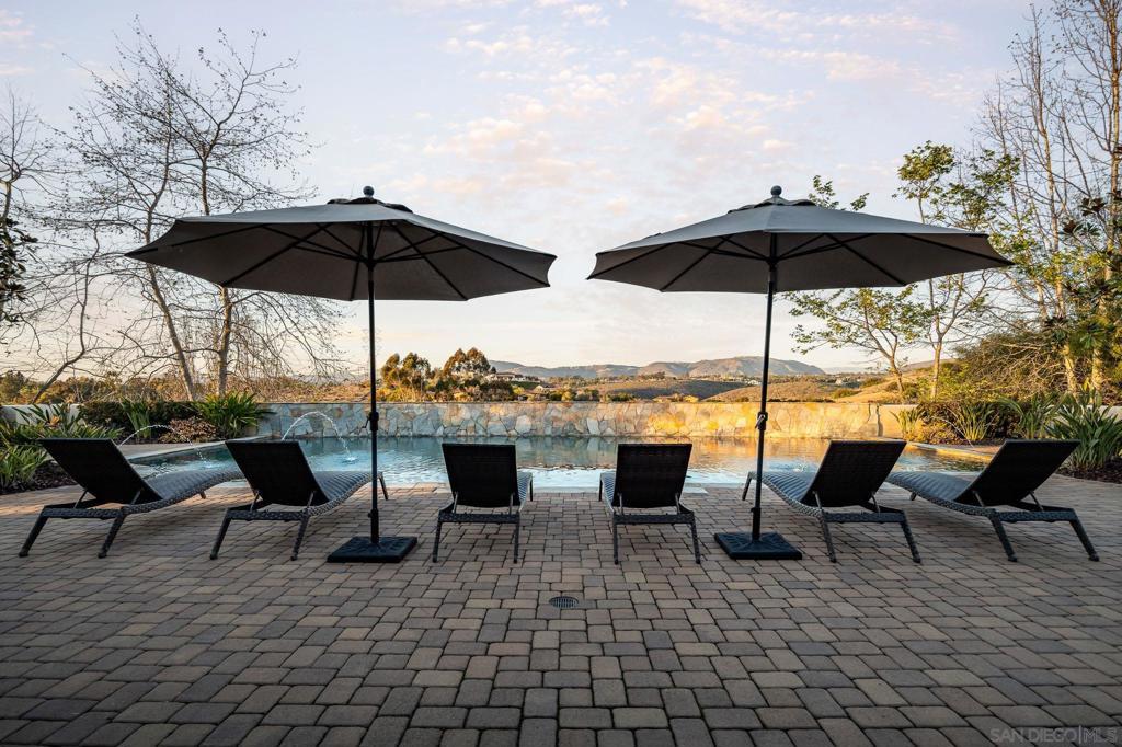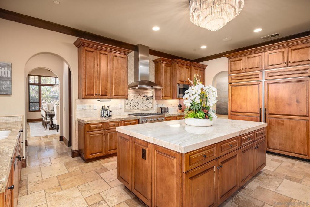 Welcome to 7552 Montien Road, a refined single-story estate built in 2014 by Mulvey Custom Builders and located in the prestigious guard-gated community of Santaluz. Designed to blur the line between indoors and out, this residence invites both effortless entertaining and quiet retreat. Through a serene entry courtyard, you’ll find a flowing open plan with soaring wood-beamed ceilings, travertine floors, and curated designer finishes. The chef’s kitchen combines beauty and function with custom cabinetry, GE Monogram appliances, dual ovens and dishwashers, a 72” built-in refrigerator, 6-burner cooktop, and pot filler—all oriented toward sweeping views of the pool and mountains. The primary suite is a true haven, featuring a spa-like bath with steam shower, soaking tub, fireplace, and French doors that open to a private patio. Each secondary bedroom is generously scaled with walk-in closets and en-suite baths. A tiered theater with pocket doors provides a cinematic experience at home. Outdoors, a resort-style pool and spa, built-in bar with BBQ, and expansive patios offer endless enjoyment under San Diego skies atop a 1.74 acre lot. Set on one of Santaluz’s most sought-after parcels overlooking the 7th green of the Rees Jones-designed course, this residence also benefits from the community’s 3,800 acres of rolling hills, 33 miles of hiking and biking trails, and two clubhouses. Membership opportunities include golf, tennis, spa, fitness, dining, and social events, creating a lifestyle that is both active and secure. OPEN HOUSES by APPOINTMENT ONLY