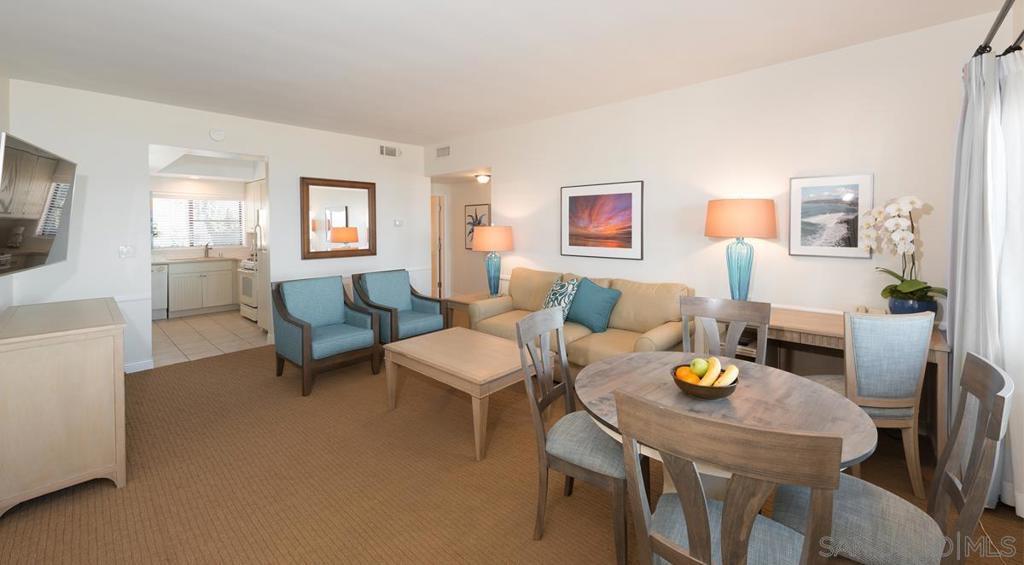 Enjoy the perfect balance of style and functionality in our One-Bedroom Apartment, ideally located in the heart of La Jolla. Thoughtfully designed, this suite offers a private bedroom, a separate living area with a pull-out sofa bed, and a fully equipped kitchen complete with a dedicated dining space. Whether you're unwinding after a day at the beach or enjoying a home-cooked meal, this serene suite provides all the comforts of home in a relaxing, resort-style setting. Ideal for those seeking a peaceful coastal escape. Weekly rates available. Resort Style Amenities: Junior-Olympic swimming pool, 13 championship tennis courts, 5 pickleball courts, 3 oceanfront restaurants, state-of-the-art fitness center, massage services (extra charge will apply), complimentary parking, and more. Appliances Included: Electric stove, refrigerator, dishwasher, laundry Utilities Included: All, including Wifi Pet Policy: No pets