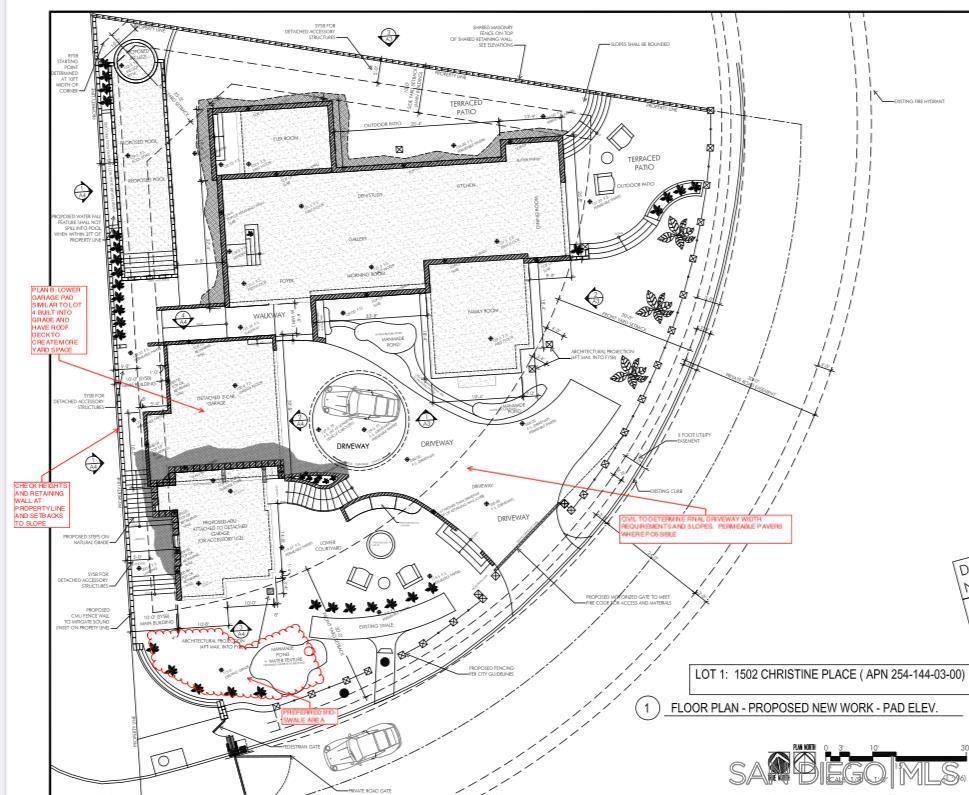 Modern Rendering with intentional flow and flexibility, offering approximately 5,974 sq.ft. of total living space (excluding the garage and roof deck). The main residence spans 2,483 sq.ft. and features a seamless connection to outdoor areas, including a terraced patio and optional roof deck. The detached 833 sq.ft. garage is complemented by a 1,067 sq.ft. rooftop deck. A two-level ADU adjacent to the garage provides 992 sq.ft., including one bedroom and a small office space—ideal for guests, work-from-home, or rental potential. A lower-level 456 sq.ft. basement offers bonus flex space and integrates with a plunge pool set into grade without stacked retaining walls. The first floor includes an optional bedroom and bathroom, while the second floor is designed for three bedrooms and three bathrooms across 2,043 sq.ft. The design incorporates permeable pavers, strategic slope grading, and a proposed bioswale for optimal drainage and environmental sensitivity. This home blends function, privacy, and high-end design in one of Encinitas’ most sought-after coastal neighborhoods. A quick jot down to world famous south Ponto beach, grand view surf, Leucadia beach and Encinitas county park. If you like to golf Omni Resort or Encinitas Ranch Golf! Walking distance to Olympus park for family fun a zipline for the kids, slides, skate ramp and a dog park.
