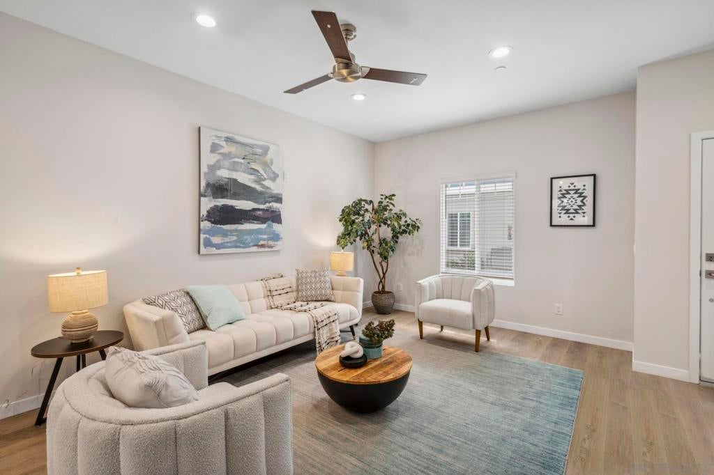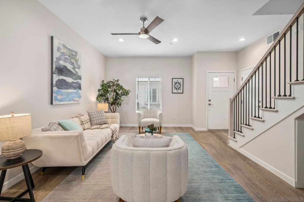 VA Approved and the best value in 91932! This Craftsman-style townhome, built in 2022 and just 5 minutes from the beach, features premium finishes and designer touches throughout. Enjoy a private, low-maintenance patio plus a second-floor tanning balcony—perfect for indoor-outdoor living. The oversized 2-car attached garage includes an EV outlet and plenty of storage. Inside, the open-concept layout boasts high ceilings, durable vinyl wood-look flooring, and a spacious primary suite with walk-in closet and en-suite bath, located near a full-size laundry room with side-by-side washer and dryer. Additional upgrades include a Wi-Fi-enabled HVAC thermostat, energy-efficient tankless water heater, and a solar-ready setup so buyers can choose their own provider and potentially benefit from tax incentives. Don’t miss the 3D Matterport tour and marketing video in the Virtual Tour link—this one won’t last! Who would have thought that so much was available at such a low price and only a 9 min bike ride to the water?! The Craftsmen style design fits perfectly into our Southern California landscape. This 8-unit complex was completed in 2022, making it newer construction. Exceptional attention has been paid to all of the details that make daily living effortless and inspiring. The windows are by the highly regarded manufacturer Milgard and allow for an abundance of natural light, creating a bright and inviting atmosphere. Upon entry you feel the contemporary flair, from the wide-plank, oak engineered wood floors, to the high ceilings and custom finishes. The kitchen is a dream unto itself, as it features a full suite of Frigidaire stainless-steel appliances and an abundance of cabinetry and food prep quartz counter space, complete with breakfast bar. The bedrooms are all generously sized with the primary suite being exceptional, featuring a large walk-in closet and dual sink primary bath with large walk-in shower. You will love the separate laundry room, located on the same level as the bedrooms, with its side-by-side Whirlpool washer and dryer, overhead cabinetry and wonderful window for additional ventilation and light.