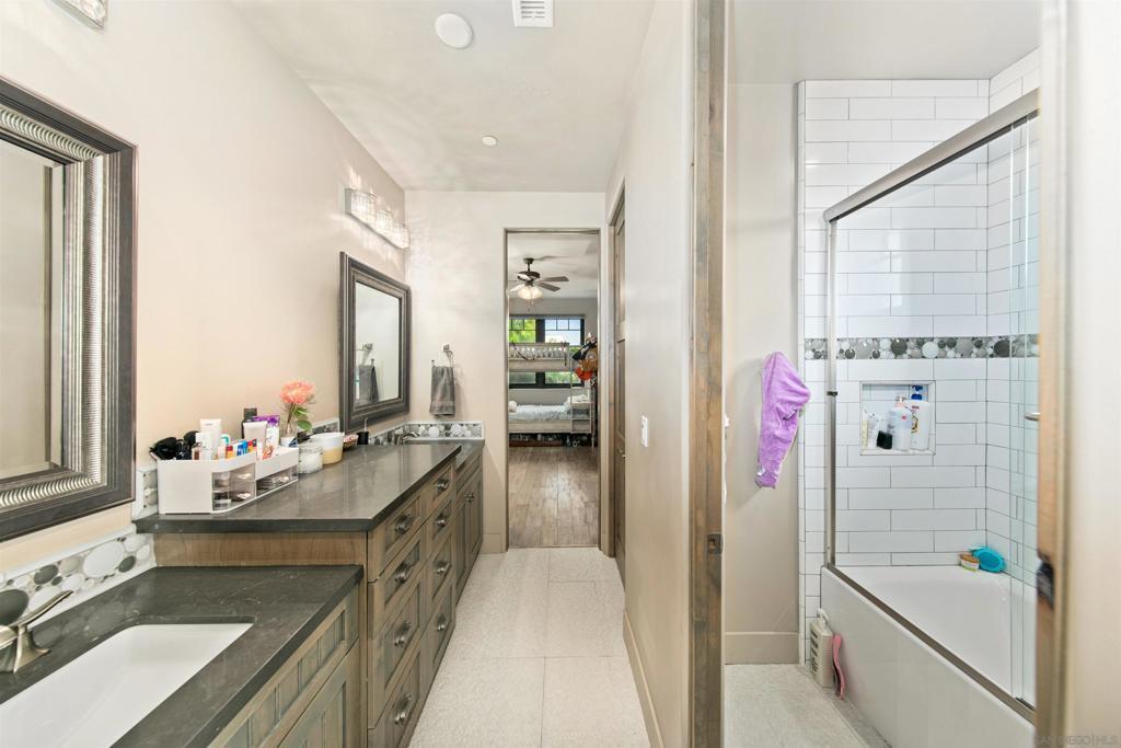 This stunning custom Craftsman home in the sought-after Country Club neighborhood of Coronado is a true gem. As you enter, you’re welcomed by exquisite mango hardwood floors and soaring 14-foot coffered ceilings. The open floor plan seamlessly connects the kitchen to the living room, creating a perfect flow to the spacious backyard. The kitchen is a chef’s dream, featuring quartz countertops, bespoke cabinetry, and high-end Thermador appliances. A downstairs guest casita adds convenience with its own sitting room, laundry, and full bath. Upstairs, you’ll find four additional bedrooms, including a luxurious primary suite with a spa-like master bath and a grand wrap-around patio with a fireplace. From the rooftop deck, enjoy breathtaking views of the San Diego skyline and the iconic Coronado Bridge. Located just a few blocks from award-winning Coronado beaches, this home is an entertainer’s paradise. Broker/Agent does not guarantee the accuracy of square footage, lot size, or other information concerning the condition or features of property provided by seller or obtained from public records or other sources and the buyer is advised to independently verify the accuracy of that information through personal inspections and with appropriate professionals.