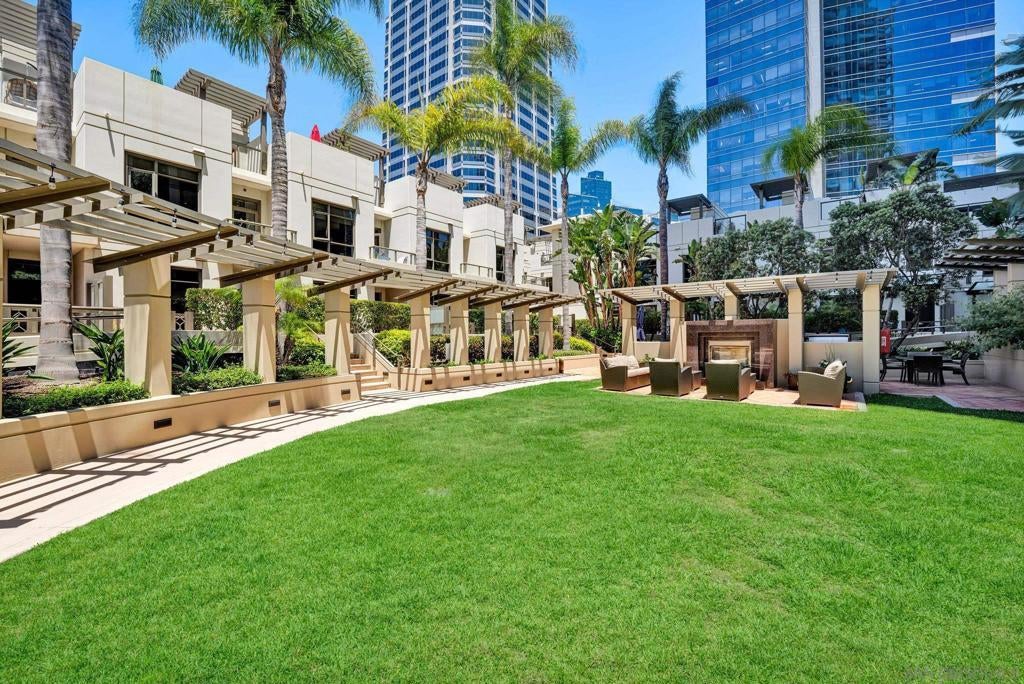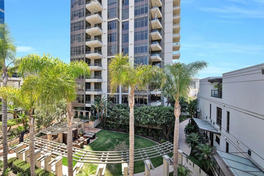 MOTIVATED SELLER! Tucked within the iconic Electra tower, this rare townhome-style condo blends high-rise luxury with the feel of a private garden retreat. Thoughtfully designed, the home features sleek modern finishes, an inviting walk-out balcony, and a rare private rooftop terrace - perfect for morning coffee, sunset lounging, or entertaining! Set amid lushly landscaped greenery, this residence sits on the same level as Electra’s full suite of resort-style amenities. From the sparkling pool and hot tub to the sauna, steam room, BBQ area, and state-of-the-art fitness center, everything is just steps from your door - effortless living, elevated. Perfectly positioned close to San Diego’s most beloved neighborhoods—including Little Italy, Seaport Village, and the vibrant Gaslamp Quarter—this home offers timeless elegance in the heart of the city. Perfectly positioned close to the best of Downtown—from Little Italy’s culinary scene to the waterfront charm of Seaport Village and the energy of the Gaslamp Quarter—this home offers timeless elegance in the heart of the city!
