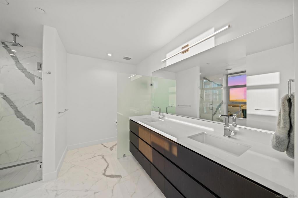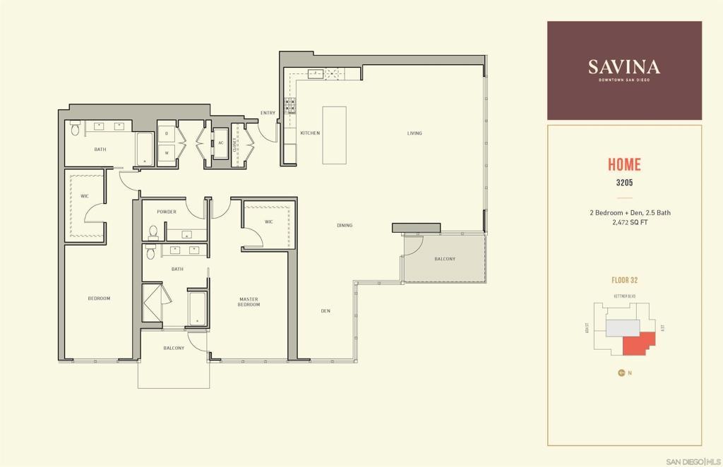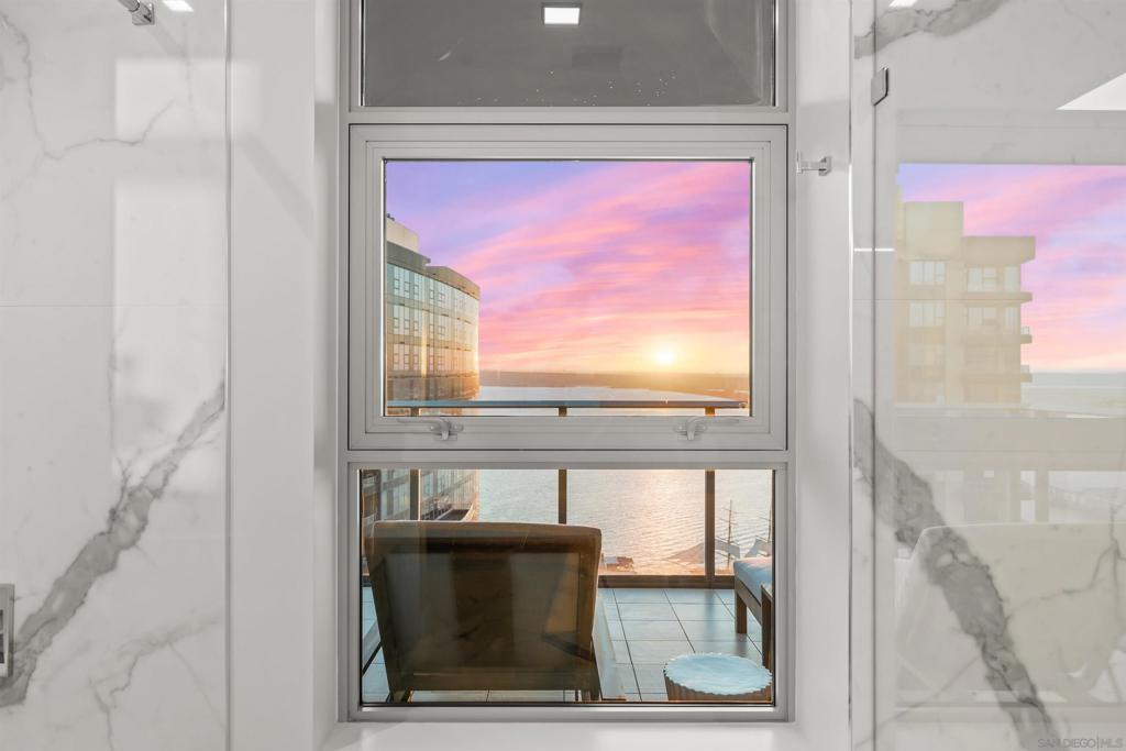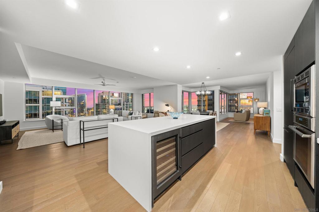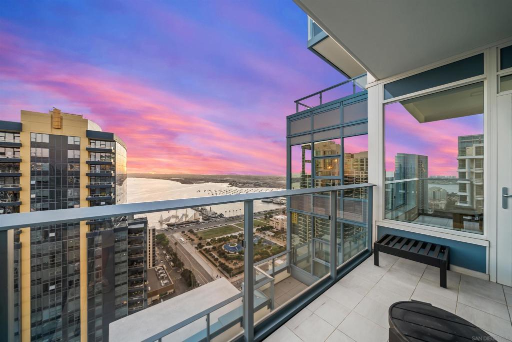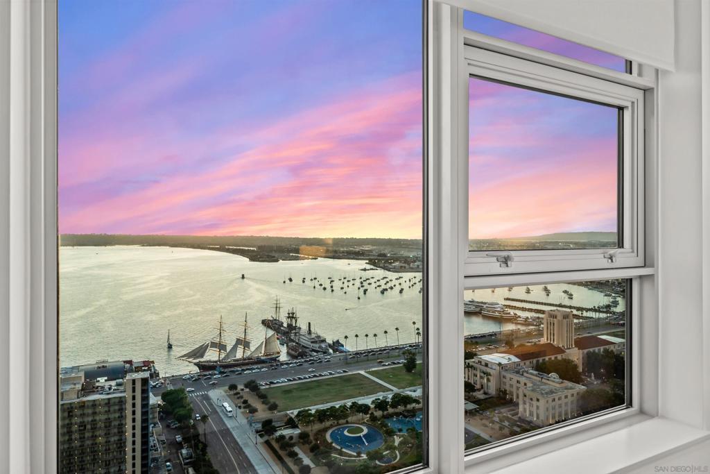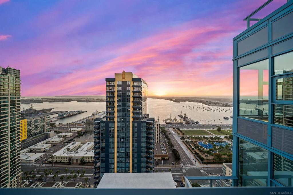 Welcome to Residence 3205, the largest and most sought-after floorplan at Savina, Downtown San Diego’s newest luxury high-rise. One of only two residences in the building with this layout, 3205 offers a truly rare opportunity and showcases sweeping southwest-facing views of the bay, city skyline, and vibrant sunsets from every room. This spacious 2-bedroom plus den, 2.5-bath home features two private balconies - one off the living room and another off the primary suite - creating a seamless connection between indoor and outdoor living. The expansive great room is ideal for entertaining or simply enjoying the panoramic views. Both bedrooms include en-suite bathrooms and large walk-in closets, while the versatile den can be enclosed to create a third bedroom or private office. A dedicated dining area adds flexibility and functionality to the open-concept layout. Additional upgrades include Lutron motorized shades throughout, with blackout and solar options in the bedrooms for added comfort and privacy. Savina offers one of Downtown’s most extensive amenity collections, including a 24-hour concierge, heated pool and spa, state-of-the-art fitness center, social lounge, business center, conference room, pet retreat, bike storage and repair station and EV charging stations - just steps from the waterfront and Little Italy.