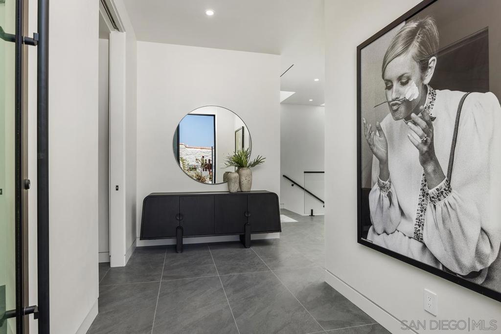 Incredible NEW CONSTRUCTION coastal gem w/ Ocean Views + ADU in the heart of Solana Beach. Steps from the beach and "Cedros Design District," with its restaurants and shopping. West of 5. Elevated 1/3 acre lot. Designed by acclaimed architect Jennifer Bolyn, EOS Architecture. 147-149 S. Rios is a contemporary compound, totaling 5,143 sq. ft (4,141 sq.ft house & 1,002 sq.ft ADU). New modern architecture 6 bed/8 baths, including 2 bed/2bath detached ADU w/ high ceilings, full kitchen, laundry and direct pool access, making it perfect for guests, home office or coastal rental income property. Soaring 12-ft ceilings, floor-to-ceiling glass sliders and a floating deck. Ocean view chef's dream kitchen w/ sleek European cabinetry, quartz surfaces, and top-tier Dacor appliances. Primary suite on entry level that feels like a retreat w/ the sliding glass door into the large patio w/ ocean-views and a spa-like ensuite wrapped in luxe porcelain. A Kohler glass elevator, seamless glass railings, and skylights accentuate the home's light-filled architecture. Outdoors, enjoy a heated pool and spa, fire pit, outdoor shower, built-in BBQ with bar seating, and multiple lounge areas. Elegant architectural features all throughout, front entry waterfall, 14-panel solar system,19 SEER high energy efficiency heat pump with five zoned thermostats with architectural linear grills for ultimate comfort. Short walk to the Del Mar Racetrack and stunning beaches of Del Mar and Solana Beach. Easy access to 101 and I5. A rare opportunity to own a legacy property in an iconic coastal setting.