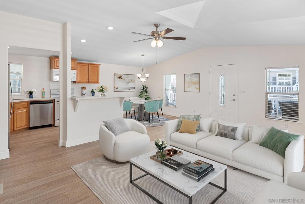 Stunning 2bedroom/2bath PLUS DEN - Manufactured Home in Resort-Like Land-Leased Senior Community - Just 4 Miles to the Beach! Nestled in a serene,well-maintained and vibrant park,this beautifully updated home offers a perfect blend of comfort and style. Boasting 1344 sq ft of living space it has been meticulously upgraded with all-new interior paint, sleek new flooring,and modern 2" blinds throughout.The gorgeous dormer in living room radiates beams of sunlight, enhancing the home's airy and spacious feel, and the vaulted ceilings are expansive. The heart of the home is the inviting kitchen,with open floor plan, and featuring new quartz countertops, a chic backsplash plus new kitchen sink with convenient pull-out sprayer, perfect for any chef. The primary bedrrom is a private retreat,with it's own separate entrance, offering a peaceful sanctuary. The ensuite bathroom is luxurious, with a deep soaking tub, a separate shower, and dual sinks for ultimate comfort and convenience. Outside, you'll love the huge front porch,ideal for enjoying the coastal breeze and outdoor relaxation.The private patio are is perfect for gardening, enteretaining,or simply unwinding in your own space. A big shed provides extra storagae for your belongings.Powerful A/C unit included plus 2 year old washer and dryer convey in their own separate laundry room. New landing, stairs and railing on rear entry. The park has 2 pools, spas,clubshouses,pickleball court and social activities.Pet friendly, trees and grass abound. Close to eveything for shopping and dining and strolls on our beautiful beaches.
