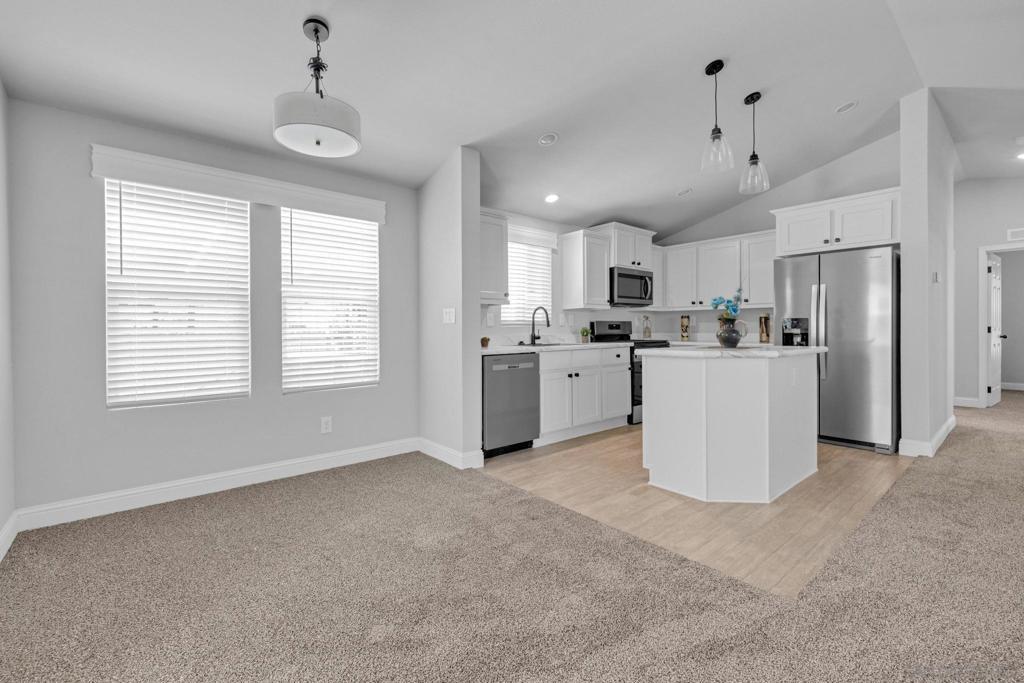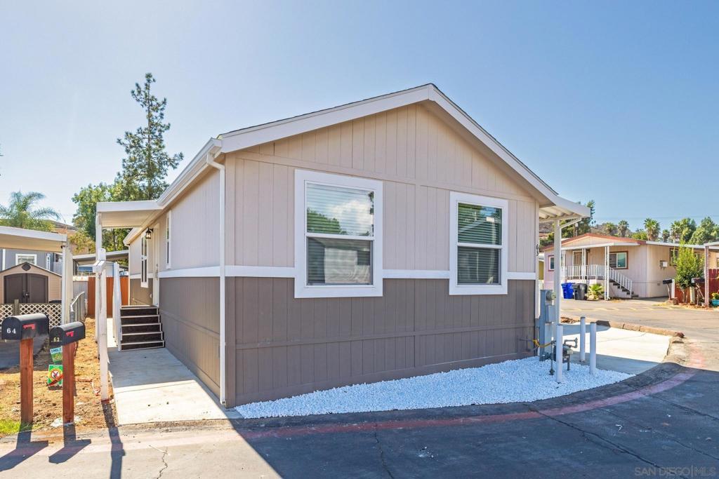 Priced to sell, this brand new 3-bedroom, 2-bathroom manufactured home can be yours! With the split floor plan, it is ideal for families with kids or roommates that want privacy. Upgraded stainless appliances in kitchen, includes: built in microwave, dishwasher, sink, side-by-side refrigerator w/water & ice dispenser. The kitchen offers modern white shaker cabinetry w/black hardware and pull-down faucet. Cook with ease in this convenient easy to maneuver through kitchen with an island and open concept to the living room. For the privacy you dream of, the primary bedroom is located on one side of the house with it's own bathroom, that offers a walk-in shower. While bedrooms 2 & 3 are on the opposite side of the home that offers a guest bathroom with shower/tub combo. Both bathrooms offer elongated toilets. No tandem parking, this carport offers convenient side-by-side parking. Nestled in the family friendly Westward Ho Manor, an all-ages community, Splash around and have fun in the sparkling swimming pool on sunny days. The park generously offers a spacious clubhouse, available for you and your family. Centrally located in El Cajon (on the border of Lakeside and minutes from Santee- shopping centers, schools, parks, dining, and freeways are right at your fingertips. All of San Diego County, including beaches and mountains are minutes away either east or west of your new home. Perfect if you're starting a family, wanting your first home, or ready to retire, this is the place you've been looking for!