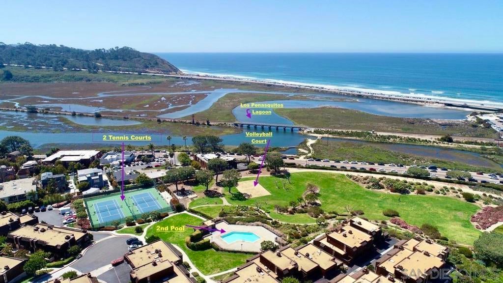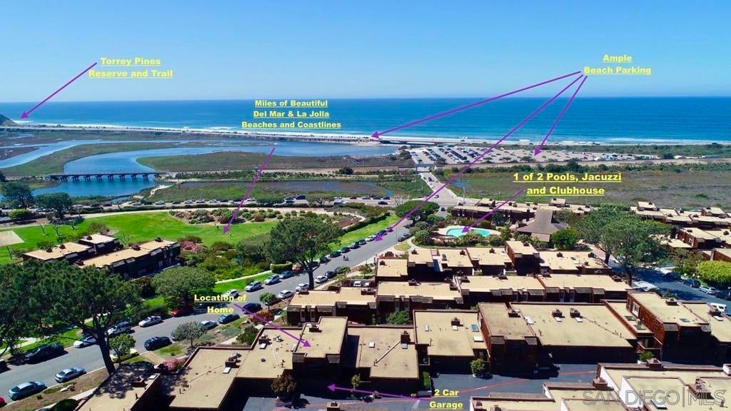 Perched on a terraced hillside, this coastal 3 Bed, 3.5 Bath, Sea Point Del Mar Townhome is in one of the most desirable locations in Del Mar. Enjoy expansive ocean and whitewater views from any of the west-facing balconies located off the living room, Dining area, Kitchen, and Master Bedroom Suite. This spacious Tri-level home features Central Air, a brand-new roof, recessed lighting, and beautiful hardwood floors throughout. The 1st level offers a Primary Bedroom en-suite and a 3rd Bedroom w/attached patio, hall bath and home entrance. The 2nd level is the main living area, sun-kissed with multiple Skylights and glass sliding doors illuminating natural light within the living Rm, dining area & oversized galley kitchen, attached patio with an additional home entrance door and 2 car garage with home access. The 3rd level is devoted to the ocean view, large Primary bedroom Suite w/ 2 walk-in closets and Balcony/patio. This resort-like community boast a 4-acre Park with beautiful, lush landscaping, lighted tennis courts, playground area, volleyball CT, 2 heated pools, clubhouse w/ BBQ areas and nearby walking trails. Walking distance to Torrey Pines State Beach, Hiking Trails, and Eateries. A short distance to Del Mar Thoroughbred Racing, Fine Dining, Shopping & much more! A short drive to the many North San Diego Beaches & Attractions.