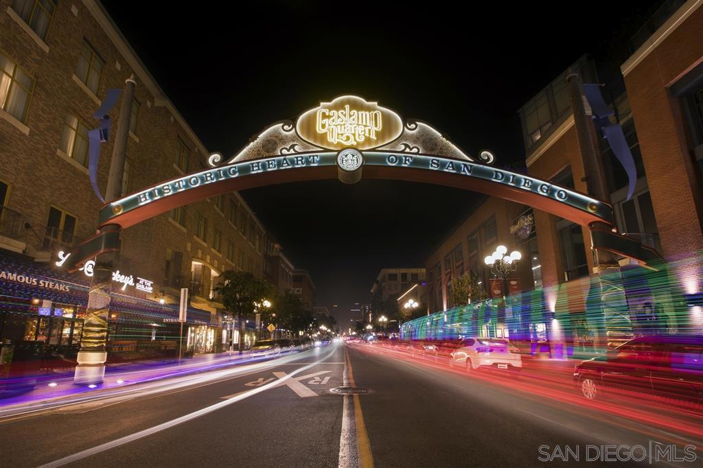 COMPLETELY FURNISHED adorable Home in the Heart of the GAS LAMP District. Owner spared no expense in furnishing this stunning condo featuring a $5,000 + custom CAL-KING BED from SPACES of San Diego, Washer/Dryer to linens & kitchenware! Just bring your toothbrush! Located in the most Prime location in the building, facing inner courtyard & pool area so is quieter than properties facing outward to Gaslamp District nightlife noise . New paint, new carpet, RARE PRIVATE PATIO & Secure assigned parking space. LOCATION-LOCATION-LOCATION!!! Upbeat urban living.....Walk to everything that the Gas Lamp District has to offer, The Embarcadero, Petco Park, Horton Plaza, 100's of restaurants, the Symphony, live Theatre and only 2 blocks to the trolley line. Gaslamp City Square offers street-level shops, secure entry, a fully landscaped interior courtyard, outdoor sundeck, pool and spa and an onsite - convenient fitness center. This exciting neighborhood provides every amenity imaginable. Perfect for those seeking that special Pied-à-terre in the Heart of America's Finest City!