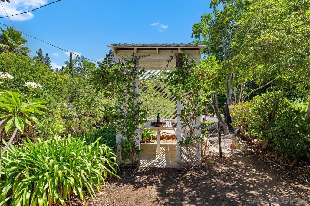 Discover the magic of Mt. Helix as you travel through the winding hills, evocative of the Santa Barbara foothills, to find this truly delightful property. First time on the market since 1966, this home is on a sprawling fully fenced .94-acre. Built with quality craftsmanship in 1936 by Abbott & Huston, the 2,023 sq ft. home offers 3 bedrooms each w/walk-in closets, 2 remodeled baths & sizable finished basement that includes a separate entrance, fenced yard & full bath which could be used as Rental, in-law suite, hobby, playroom, perhaps a theater? The possibilities are endless. The updated kitchen w/ skylight, solid wood cabinetry, island & recessed LED lighting flows into the great room w/vaulted ceilings, fireplace, & access to a covered patio & deck. The home’s GAF Title 24 compliant roof, owned solar w/battery backup, water heater & an upgraded electrical panel are all new. Additional improvements include: sewer lines, carpet, Luxury Vinyl Plank & refinished original oak hardwood. The property’s award-worthy landscape creates a peaceful & private paradise & there is plenty of room to grow your own produce. Numerous varieties of trees are loved by both nesting hawks & flocks of wild parrots. This is truly one of the most prime locations in East County. Additional features of the property include a tea house, custom potting area, 20x20 barn & 2-car garage w/a new insulated roll-up garage door. Zoned for animals, the property can also accommodate RVs, trailers & toys. Seller will consider concessions towards closing costs, buyer's-choice kitchen counters, or rate buydown.