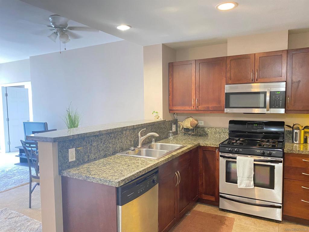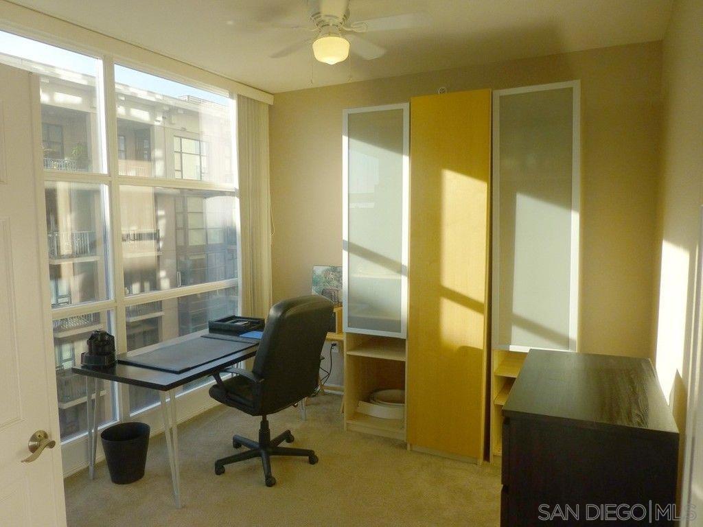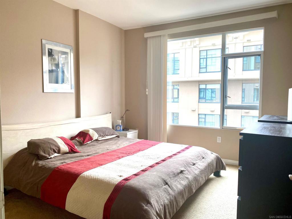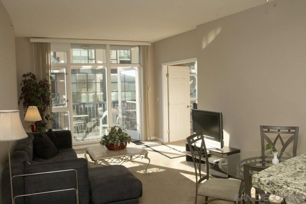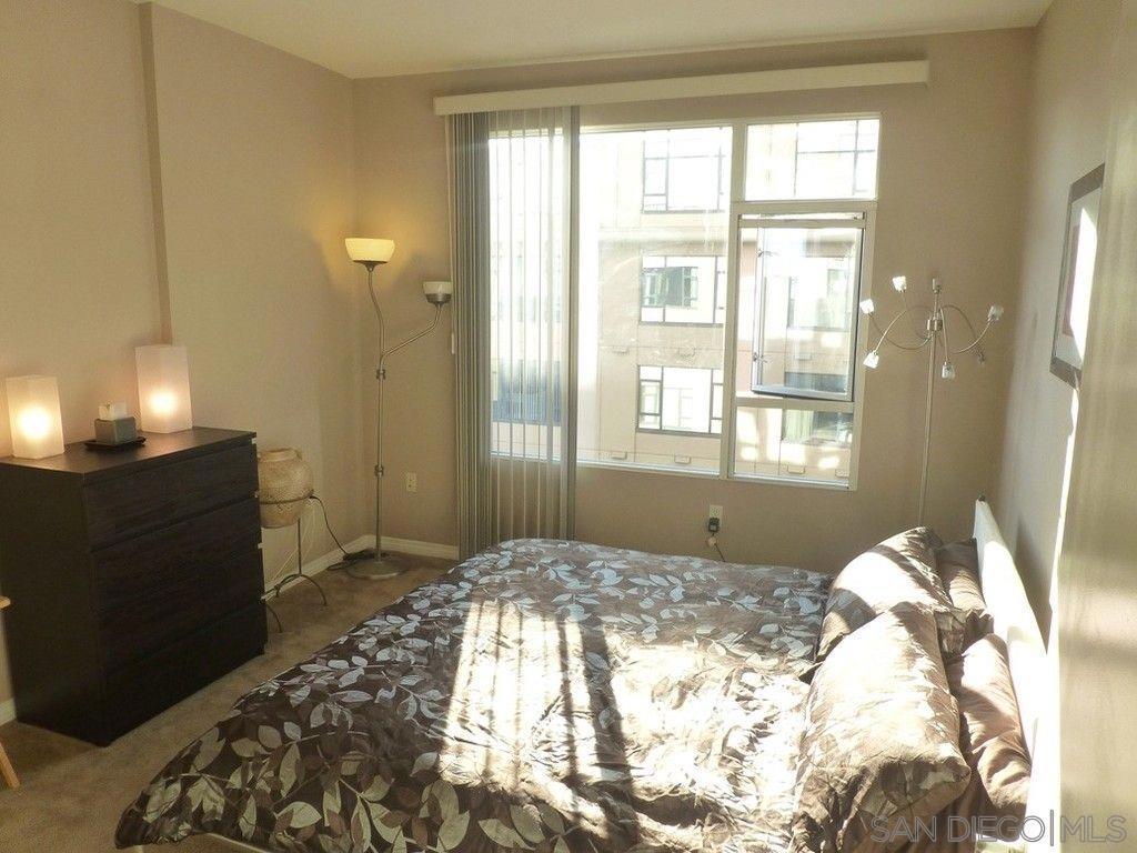 BRAND NEW HARDWOOD FLOORING JUST INSTALLED IN LIVINGROOM, BEDROOM AND LARGE DEN! Beautifully furnished, one bedroom plus spacious Den/office! Open kitchen concept with Stainless steel appliances and granite countertops. Trellis complex located in the heart of downtown San Diego Gaslamp, Convention Center, Petco Park, the Trolley, fine dining and shops all with in one block of the condo. West facing views are spectacular during the day and night. Secure entry, gated parking space. Courtyard views, security entries for garage and building. Complex offer fitness center, patio furniture and BBQ grills in courtyard area.