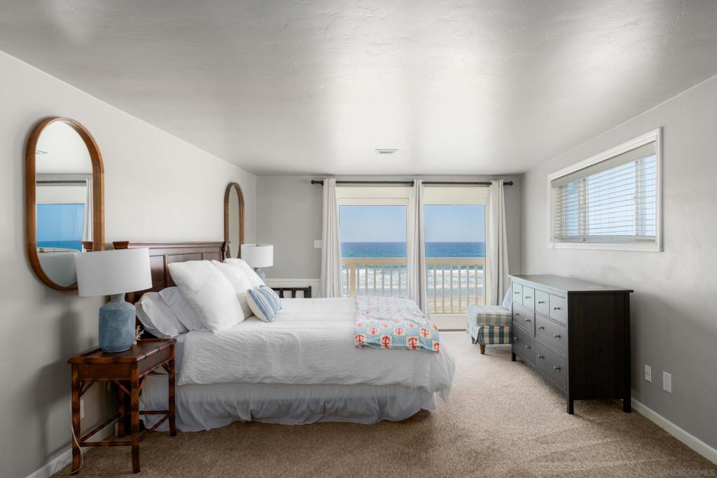 Life on the sand feels different. At 1836 Ocean Front, you wake up to the surf, wind down to sunset, and fall asleep to the steady hush of the Pacific. This is front-row beach living in Olde Del Mar, set directly on the sand between 18th and 19th Streets with a true walk-to-everything lifestyle. The three-level residence offers 6 bedrooms, 4.5 baths, and over 3,200 sq ft of versatile layout and uninterrupted ocean views. The lower level hosts a full kitchen, casual dining area and breakfast nook, plus a guest bedroom and full bath. The middle level frames wide ocean views from the main living areas. Sliding doors open to an oceanfront deck for meals, lounging, or a quick step down to the beach. A separate family room is ready for movies or games. Two interior courtyards add more intimate outdoor spaces, including an upper terrace and a lower brick patio. Upstairs, three bedrooms face the horizon and a view deck spans the full structure. The primary suite includes its own bath and walk-in closet, while two more guest rooms and a full bath sit above the garage, ideal for visitors or an office. The attached garage and wide driveway handle parking with ease. With a proven record as a vacation rental, the property generates solid cash flow and offers an ideal opportunity for a 1031 Exchange. Located one block from Poseidon, Jake’s, and Powerhouse Park, with Del Mar Village an easy stroll away, this address keeps dining, shopping, and everyday errands close while the ocean stays front and center. With the beach at your doorstep, daily life feels simple. The horizon does the rest.