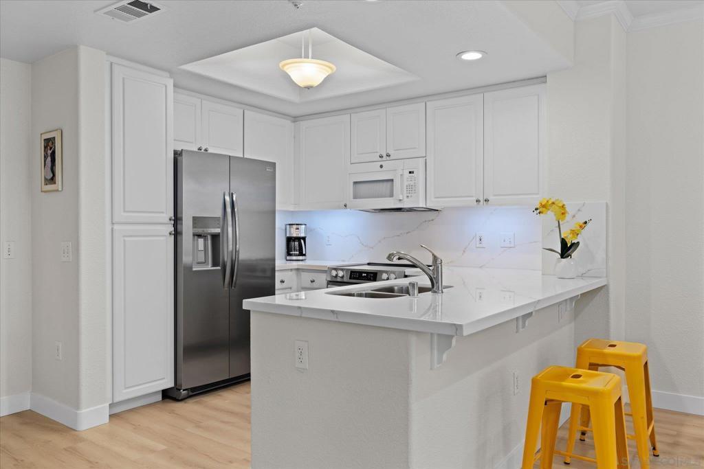 Welcome to the luxury resort style Regents La Jolla. This stunning and highly upgraded ground-level home offers an ideal accessible location with a spacious private patio perfect for enjoying San Diego’s sunshine. The light and bright interior features an open floor plan, recessed lighting, luxury vinyl plank flooring throughout, fresh paint, and quartz kitchen countertops with a stylish backsplash. The kitchen includes new stainless steel appliances, and the fully remodeled bathroom offers a new tub, floor-to-ceiling tile, and updated plumbing. Turn-key and move-in ready—don’t miss this rare opportunity! Welcome to this beautifully remodeled corner unit in the highly desirable luxury resort-style Regents La Jolla condominium. This ground-level home offers an ideal location with easy access and a spacious private patio perfect for enjoying San Diego’s sunshine. The light and bright interior features an open floor plan, recessed lighting, luxury vinyl plank flooring throughout, fresh paint, and quartz kitchen countertops with a stylish backsplash. The kitchen includes new stainless steel appliances, and the fully remodeled bathroom offers a soaking tub, floor-to-ceiling tile, and updated plumbing throughout. This luxury gated community complex has amazing amenities such as Concierge services, business center with printers and wi-fi, 2 heated pools, 2 spas, tiki bar w/BBQ, SPA, clubhouse, theater, gourmet kitchen with formal dining room, game room, gym, cabanas, and much more... Perfect location within minutes to the UCSD, UTC mall and amazing restaurants, easy access to the frewways and the beautiful beaches. Don't miss this rare opportunity on this turn-key and move-in ready property!