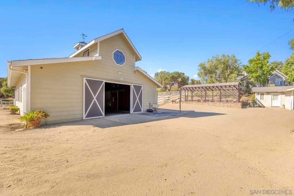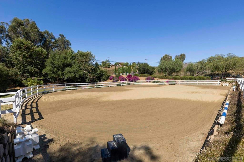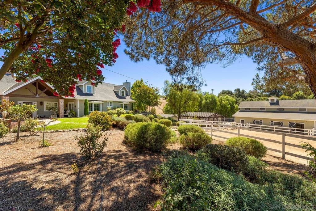 Discover an exquisite equestrian retreat at 20455 Elfin Forest Road in Elfin Forest. This elegant estate spans approximately 3.5 acres of picturesque terrain, offering an 5-stall custom barn, 4 large corrals, dressage arena, caretakers ADU, 20 minutes from the coast and within the Rancho Santa Fe School District. Main house offers 3 bedrooms, 3 bathrooms, plus a large studio above the 3 car garage which could be a 4th bedroom and/or living space. The detached ADU is between the main house and barn. Thoughtfully designed to capture the essence of serene sophistication, the interiors are bathed in natural light, offering expansive living areas ideal for both grand entertaining and serene relaxation. The kitchen and primary bathroom have been extensively updated in recent years, DuChateau Windsor handmade European oak flooring throughout, new interior 6 panel doors throughout, new Thermador appliances, all new Kohler plumbing fixtures and sinks, high end custom DeWils oak vanity cabinetry, new Pella windows, radiant heat flooring in primary bathroom, towel warmer, tankless hot water heater and much more. Equestrian enthusiasts will appreciate the property's exceptional horse facilities fitted with a large solar system on NEM-1 metering. Set amidst vast grounds that invite outdoor exploration and enjoyment with a seasonal creek. This distinguished residence offers a perfect sanctuary for those seeking tranquility and privacy in a prestigious setting. One of the more iconic and pristine estates in Elfin Forest.