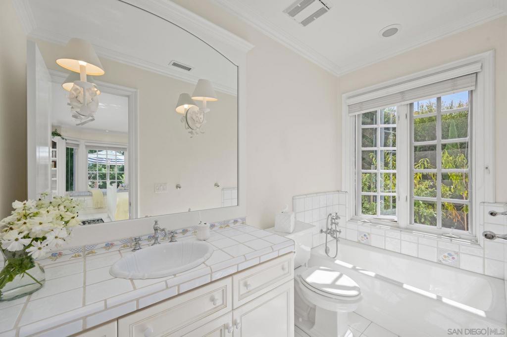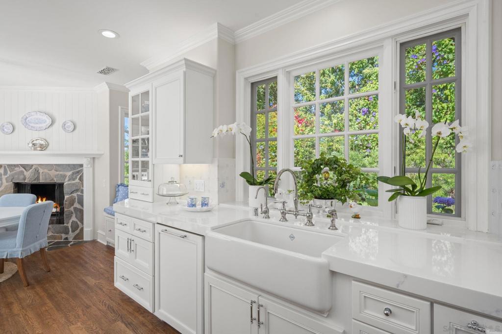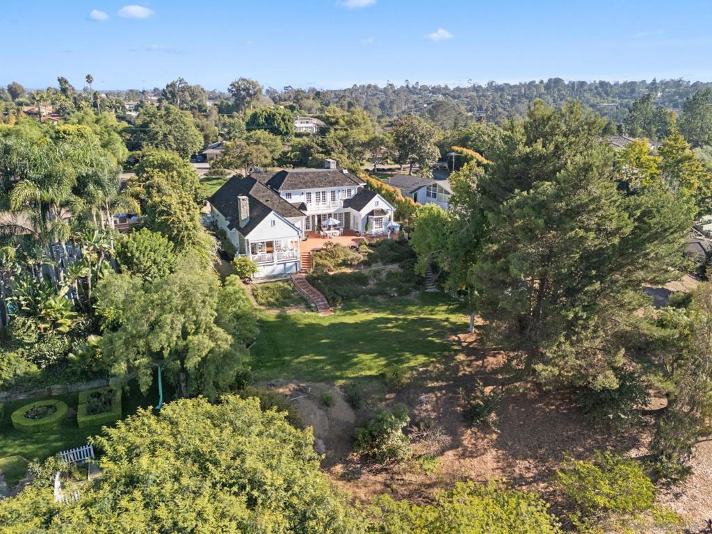 A perfect blend of timeless East Coast charm with relaxed Southern CA Living! The home is set on a generous usable lot with Panoramic Countryside Views & Sunsets, incredible gardens, and grass yard all delivering scale, privacy, and proximity to the Village, golf, beaches, and award-winning schools. The interior and exterior are full of generous "sun kissed" spaces with French doors that frame the entire back wall, inviting year-around indoor/outdoor living. The luxurious primary suite offers lovely vistas, large walk-in custom closet and grand spa bath with lovey views over the gardens. Each room offers total privacy and an incredible setting. The kitchen looks like a page out of Veranda Magazine and is equipped with Thermador, SubZero Refrigerator and Freezer, dual ovens, walk-in pantry, and large center island open to casual dining which flows seamlessly outdoors, where an expansive brick terrace, gardens, and covered loggia with fireplace extend living space year-round. The yard can easily accommodate a detached ADU with separate entrance for guests or family members. This property is so beautiful and unique ~ won't last long!