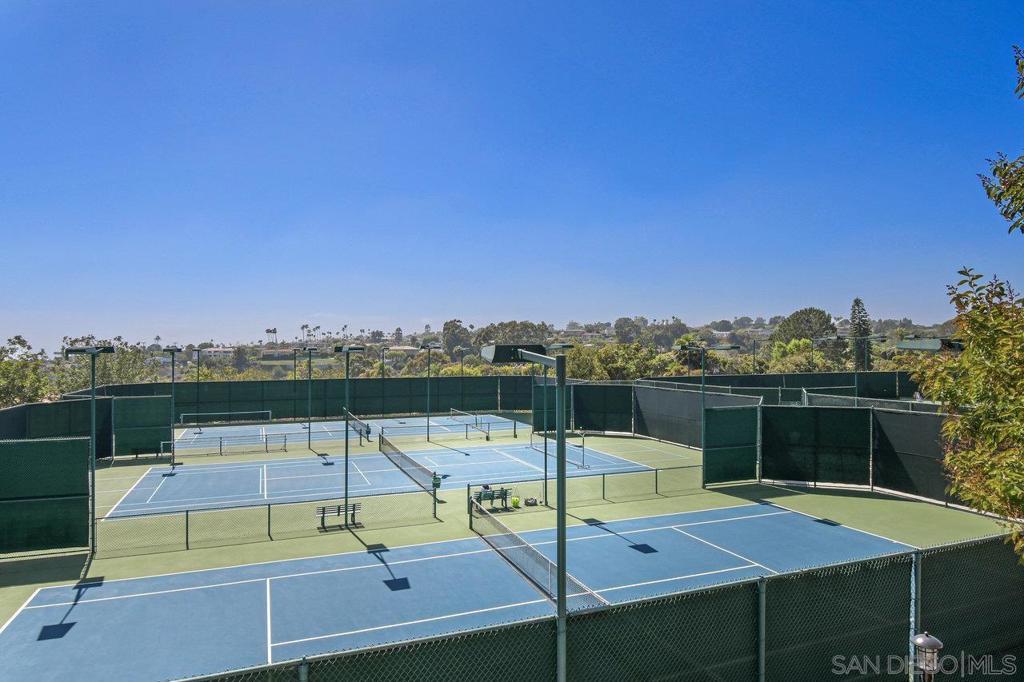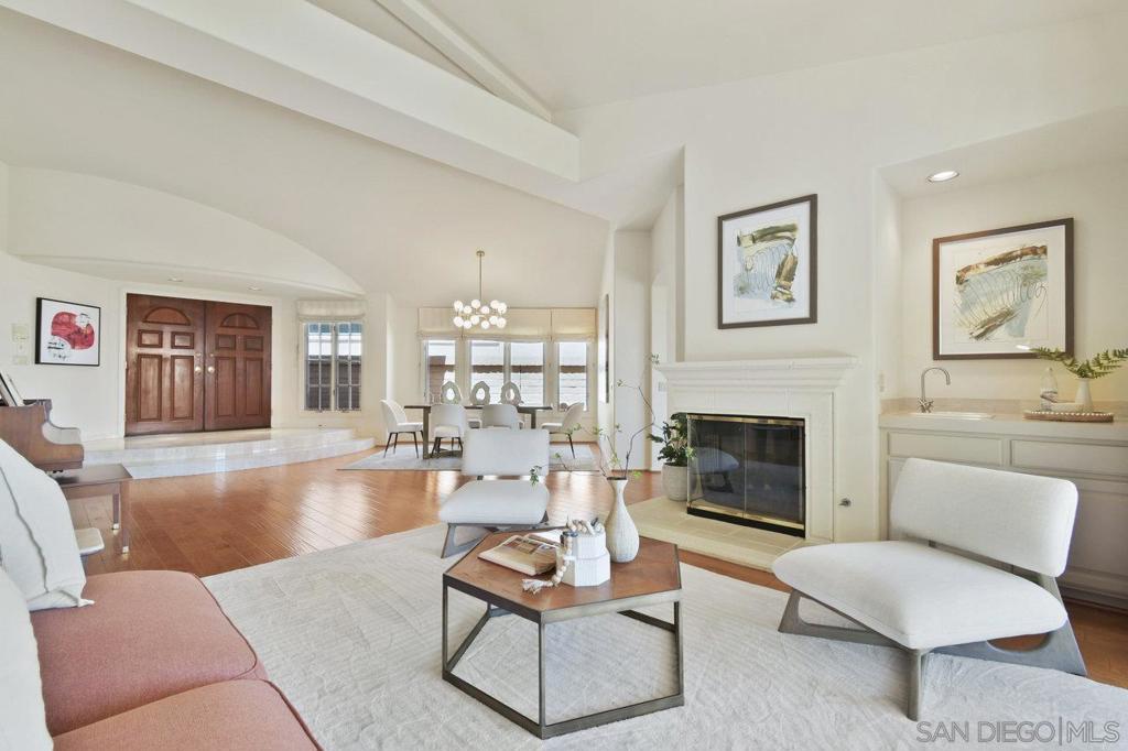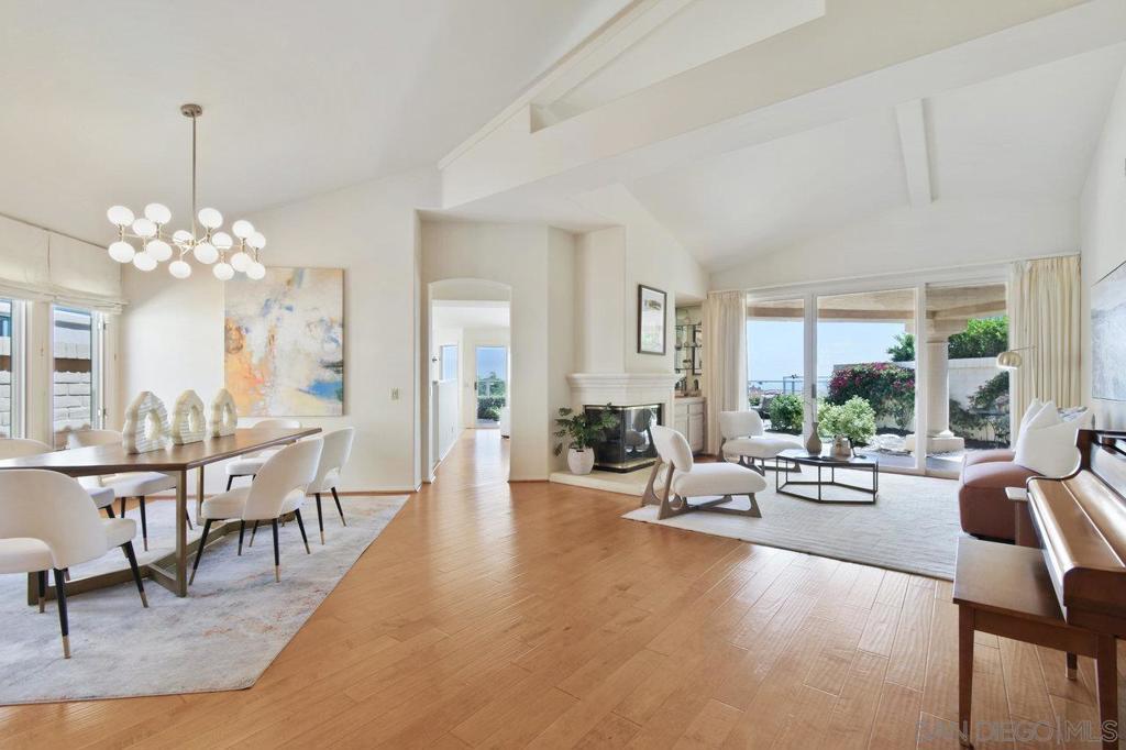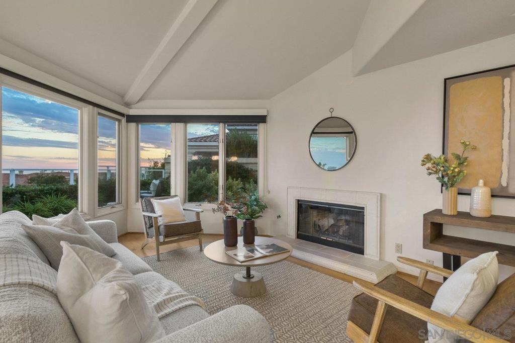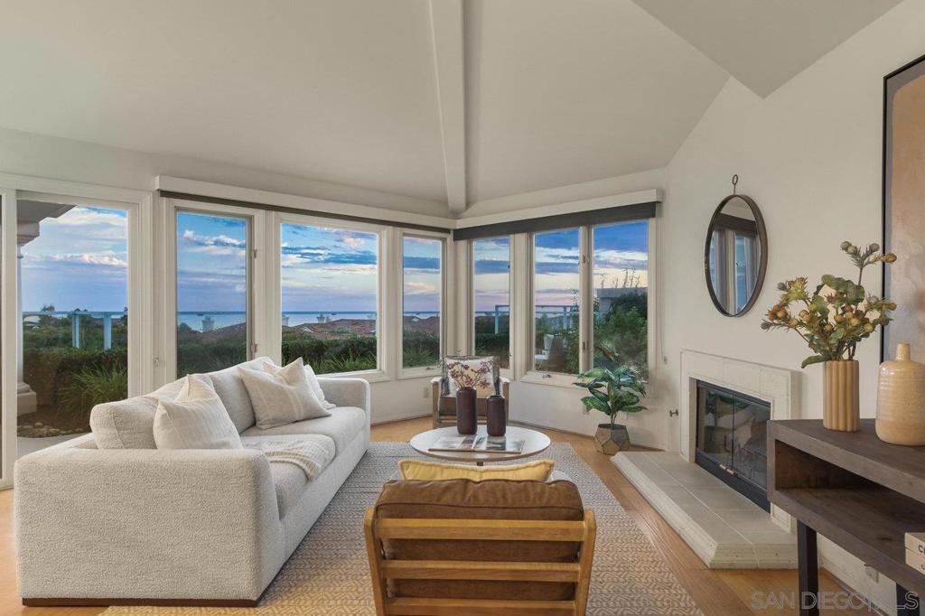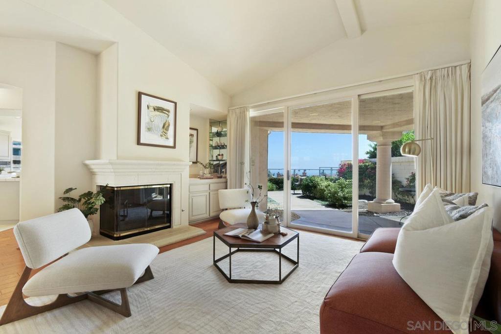 Single-story coastal living in La Jolla! This popular floor plan in the gated Crystal Bay community offers wonderful views and beautiful vistas of the Pacific Ocean, Mission Bay and downtown. As you pass through the double door entry, you're greeted by an expansive and serene space filled with light from the large windows, plus a spacious dining area and formal living space with fireplace and wet bar. Stroll into the open layout kitchen and family room, perfect for entertaining or crafting a gourmet meal. This space features vaulted ceilings, oversized windows, a cozy fireplace and indoor/outdoor vibes. The spacious primary suite includes a walk-in closet, separate tub and shower, and access to the back yard. The oversized guest suite features a walk-in closet, en-suite bathroom and arched windows overlooking the front yard. The third bedroom makes for a great office or media room, with a convenient half bath nearby. The peaceful backyard features three unique and useful spaces – a covered dining area, a sunny viewing spot, and a secluded covered patio accessed from the primary bedroom and living room. A laundry room and two car garage round out the amenities. As a resident of Crystal Bay, you'll have access to two community pools, spa, tennis/pickleball courts, exercise room and clubhouse.