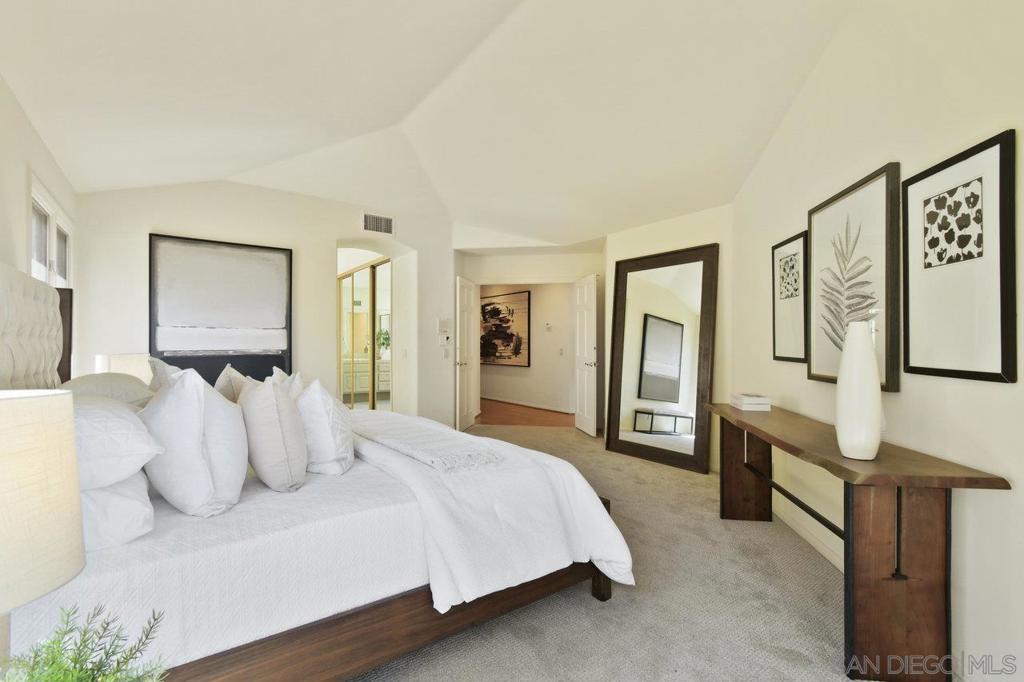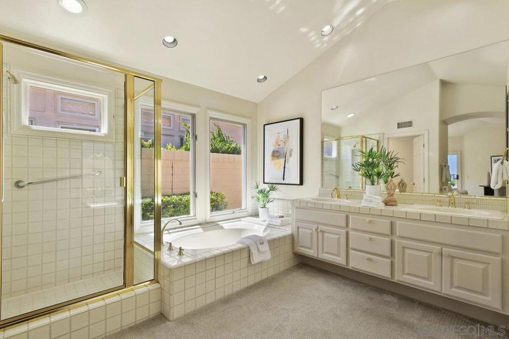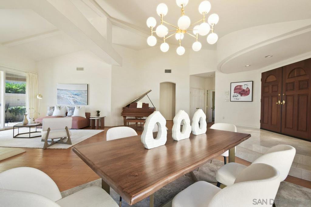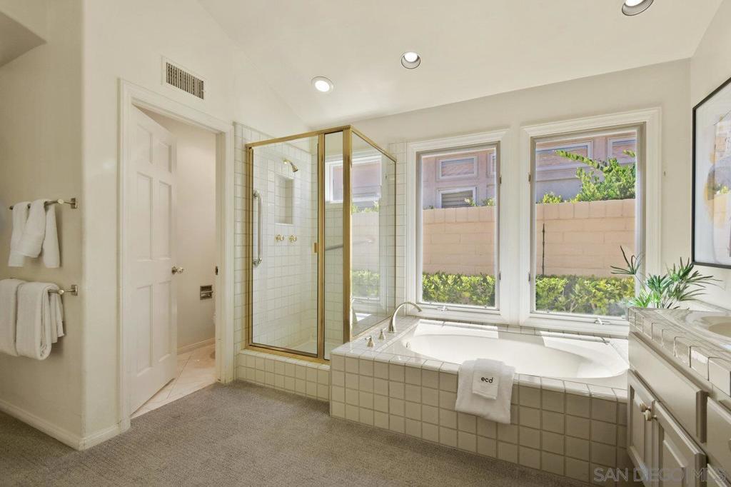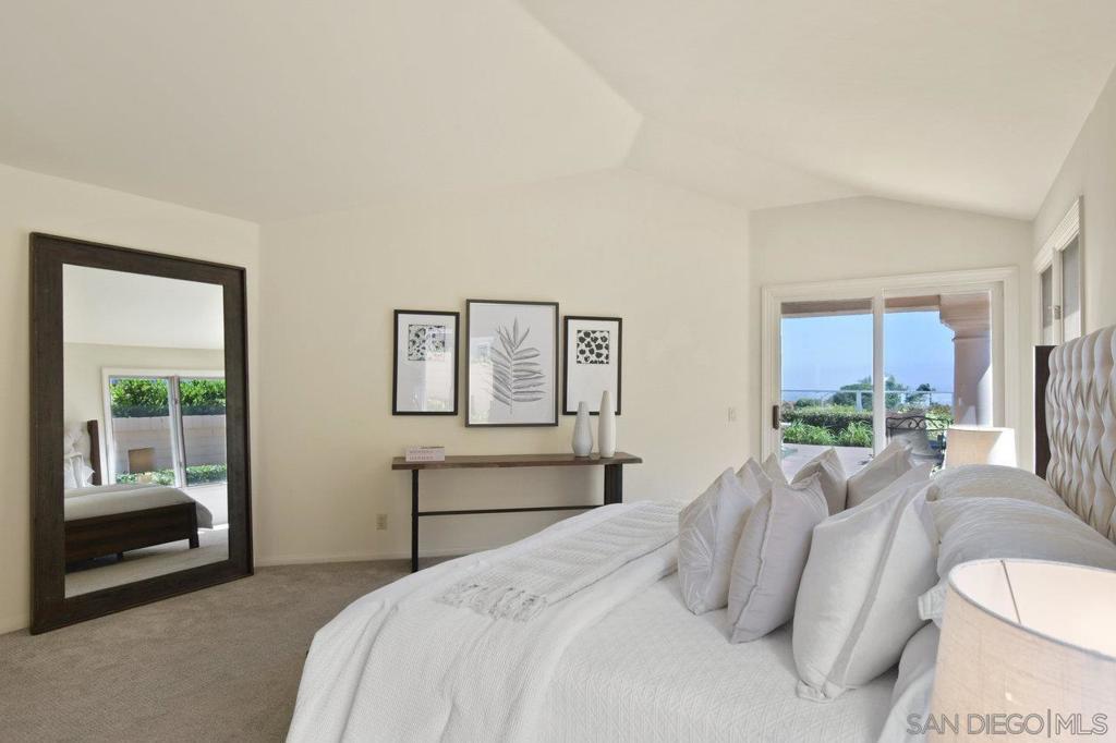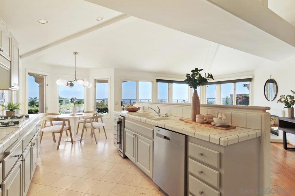 Single-story coastal living in La Jolla! This popular floor plan in the gated Crystal Bay community offers wonderful views and beautiful vistas of the Pacific Ocean, Mission Bay and downtown. As you pass through the double door entry, you're greeted by an expansive and serene space filled with light from the large windows, plus a spacious dining area and formal living space with fireplace and wet bar. Stroll into the open layout kitchen and family room, perfect for entertaining or crafting a gourmet meal. This space features vaulted ceilings, oversized windows, a cozy fireplace and indoor/outdoor vibes. The spacious primary suite includes a walk-in closet, separate tub and shower, and access to the back yard. The oversized guest suite features a walk-in closet, en-suite bathroom and arched windows overlooking the front yard. The third bedroom makes for a great office or media room, with a convenient half bath nearby. The peaceful backyard features three unique and useful spaces – a covered dining area, a sunny viewing spot, and a secluded covered patio accessed from the primary bedroom and living room. A laundry room and two car garage round out the amenities. As a resident of Crystal Bay, you'll have access to two community pools, spa, tennis/pickleball courts, exercise room and clubhouse.