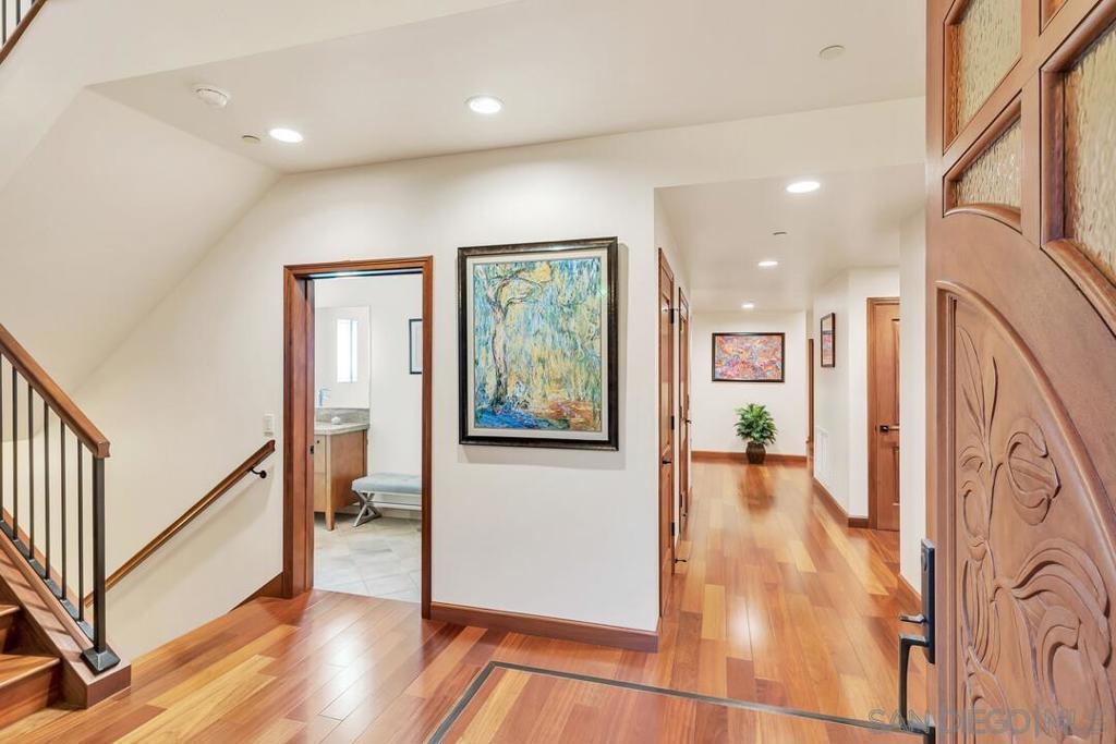 Lowest Price Per Sq. Ft. in Cardiff! Stunning 4 bed, 6 bath coastal home west of I-5 and just blocks from the beach. Built in 2013, this 4,400+ sq. ft. residence blends timeless design with modern luxury, featuring Brazilian cherry hardwood floors, solid-core mahogany doors, and refined finishes throughout. The main level offers seamless indoor-outdoor living with French sliding doors, motorized sunshades, a spacious great room with gas fireplace, media cabinet, and wine/beverage center. The chef’s kitchen boasts stainless steel appliances, maple cabinetry, and stone countertops, while a first-floor office/bedroom provides flexibility. An elevator serves all levels, including a basement retreat with wine cellar, full bath, and versatile bonus space ideal for a gym, theater, or playroom. Upstairs, the luxurious primary suite and two guest rooms with en-suite baths offer privacy and comfort. Additional highlights: 3-car garage, mudroom/workshop, laundry room with bath, owned solar, and reverse osmosis system. Just steps to beaches, Seaside Market, cafes, and trails—this is a rare chance to enjoy refined coastal living at an incredible value in one of San Diego’s most sought-after beach communities.