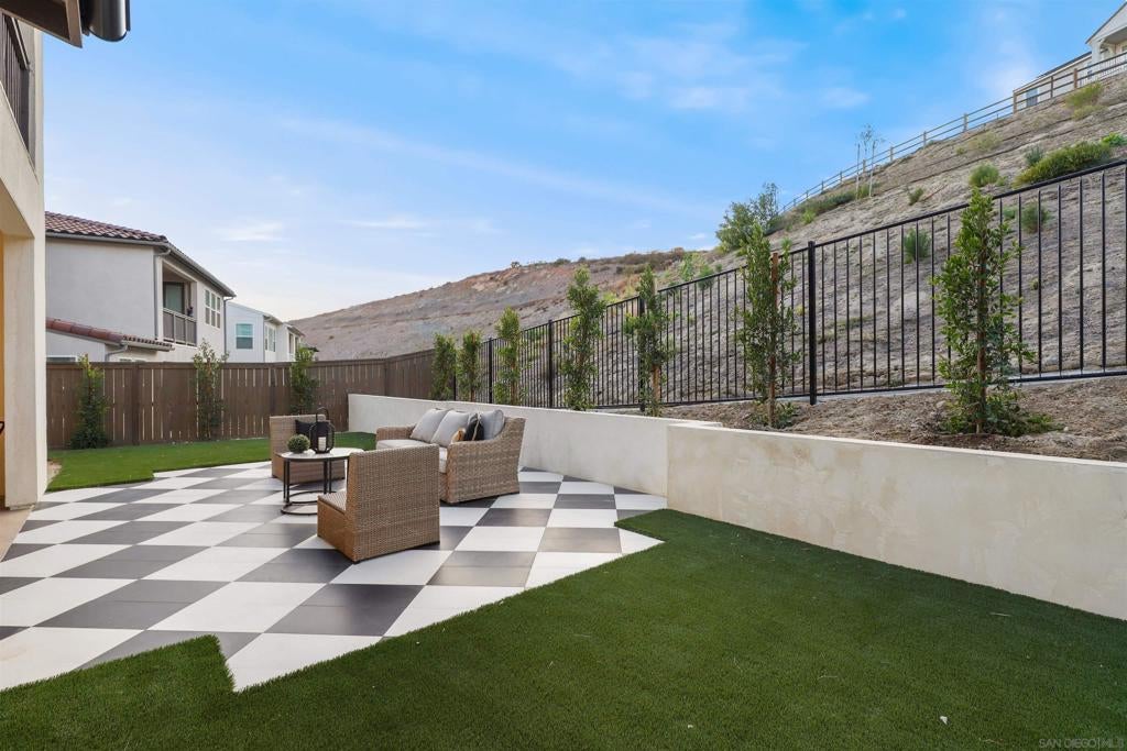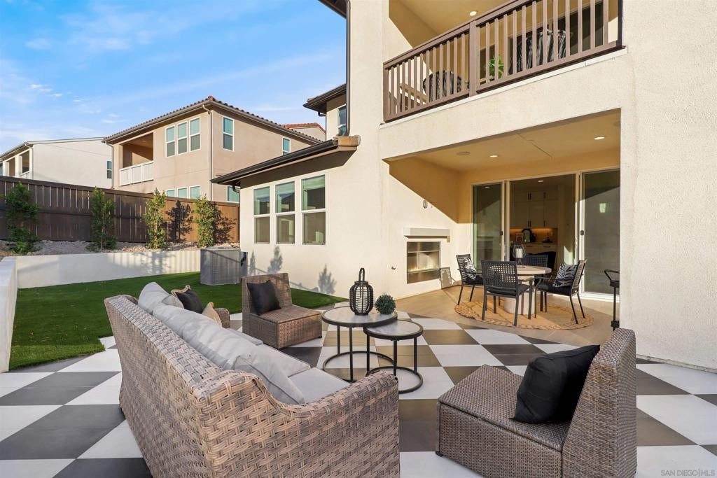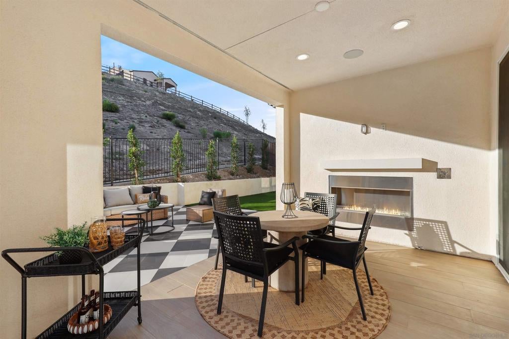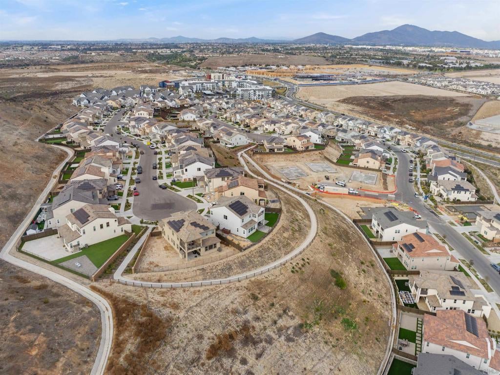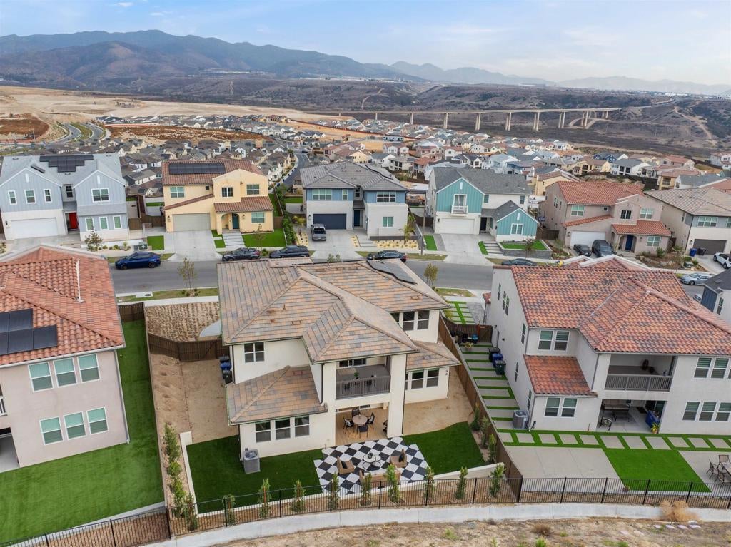 Revel in unparalleled elegance with this breathtaking 4-bedroom, 3.5-bath Shea home, located in the highly sought-after Luca community of Côta Vera. Designed to impress, this residence seamlessly combines modern aesthetics with exceptional functionality, creating an environment perfect for both entertaining and everyday living. The open-concept layout is enhanced by expansive windows, flooding the interior with natural light and offering stunning views at every turn. The gourmet kitchen is a chef’s dream, boasting abundant upgraded cabinetry, quartz countertops, a waterfall-edge center island, a butler’s pantry, and a walk-in pantry. Every detail has been meticulously considered, from the hardwood flooring throughout to the custom $20,000 California Closets in the primary suite. The first-floor bedroom suite ensures convenience and privacy, while the dedicated office featuring dual-purpose shelving doors and a speakeasy wall provides the ultimate work-from-home space. This home showcases over $170,000 in upgrades, including an owned solar system, a water filtration system, sound insulation for enhanced privacy, epoxy-coated flooring in the spacious 3-car garage plus a Tesla charging station installed in the garage, and thoughtfully designed sound protection to muffle footsteps and noise. Meander outside to the covered patio, complete with a cozy gas fireplace, and take in the serene mountain views. Whether enjoying a quiet evening or hosting guests, the outdoor space offers the perfect retreat. Upstairs, a bonus room provides additional flexibility, while the luxurious primary suite features a private balcony, ideal for soaking in stunning sunsets and panoramic vistas. Situated just minutes from downtown San Diego, Otay Ranch Shopping Mall, and the 125 Freeway, this home offers both convenience and a tranquil escape. The vibrant Côta Vera community is designed for an active lifestyle, featuring beautiful parks, playgrounds, picnic areas, and ample outdoor spaces to enjoy San Diego’s enviable weather. This is more than just a home; it’s a lifestyle. With its blend of modern elegance, top-tier upgrades, and an unbeatable location, this property is a rare opportunity to own a piece of San Diego’s finest.