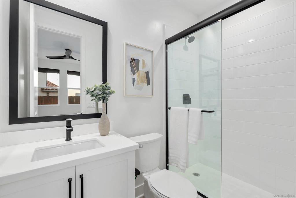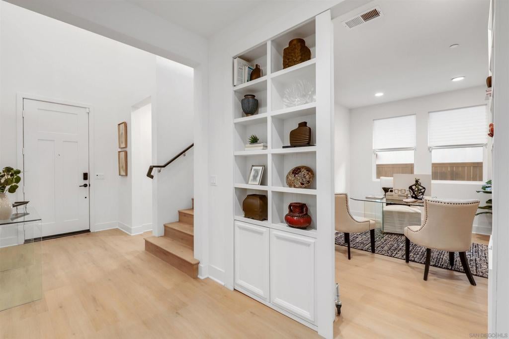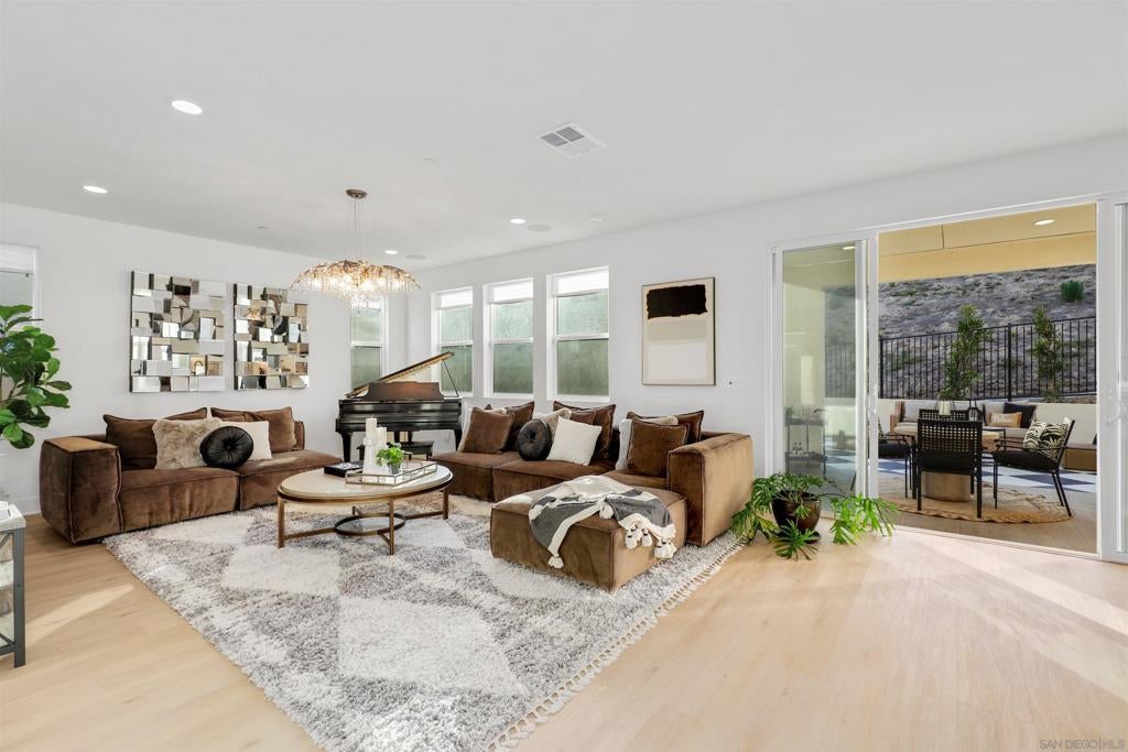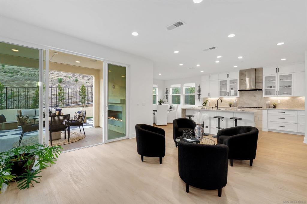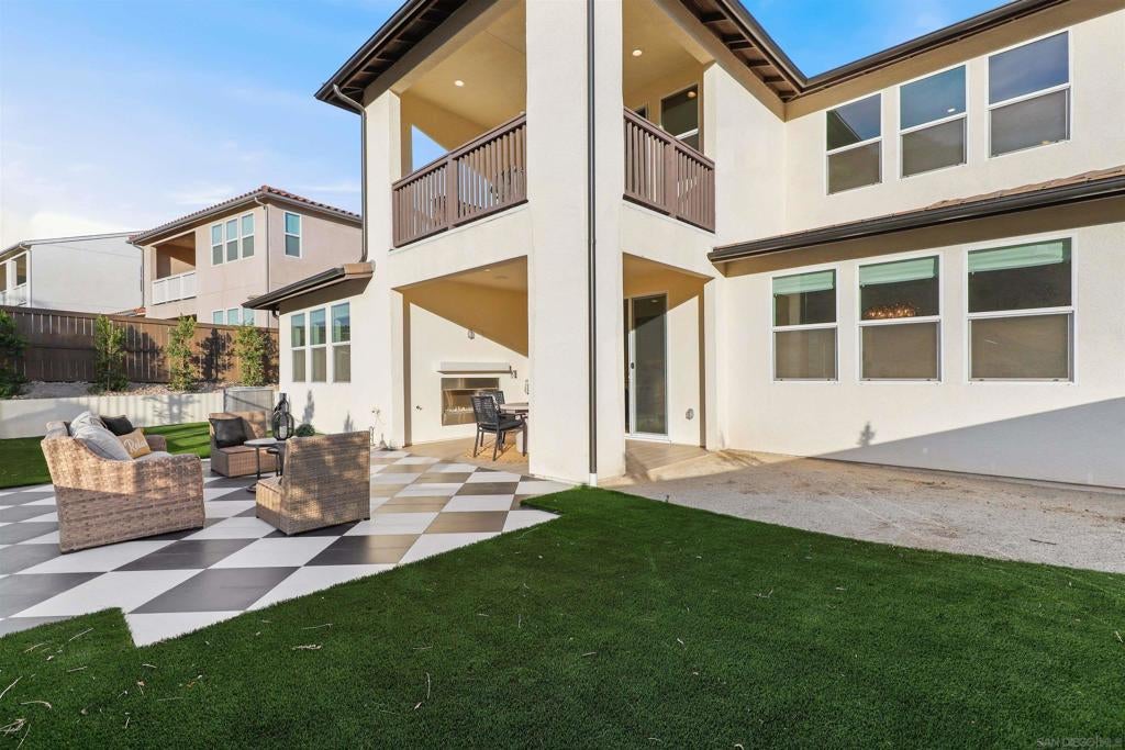 Revel in unparalleled elegance with this breathtaking 4-bedroom, 3.5-bath Shea home, located in the highly sought-after Luca community of Côta Vera. Designed to impress, this residence seamlessly combines modern aesthetics with exceptional functionality, creating an environment perfect for both entertaining and everyday living. The open-concept layout is enhanced by expansive windows, flooding the interior with natural light and offering stunning views at every turn. The gourmet kitchen is a chef’s dream, boasting abundant upgraded cabinetry, quartz countertops, a waterfall-edge center island, a butler’s pantry, and a walk-in pantry. Every detail has been meticulously considered, from the hardwood flooring throughout to the custom $20,000 California Closets in the primary suite. The first-floor bedroom suite ensures convenience and privacy, while the dedicated office featuring dual-purpose shelving doors and a speakeasy wall provides the ultimate work-from-home space. This home showcases over $170,000 in upgrades, including an owned solar system, a water filtration system, sound insulation for enhanced privacy, epoxy-coated flooring in the spacious 3-car garage plus a Tesla charging station installed in the garage, and thoughtfully designed sound protection to muffle footsteps and noise. Meander outside to the covered patio, complete with a cozy gas fireplace, and take in the serene mountain views. Whether enjoying a quiet evening or hosting guests, the outdoor space offers the perfect retreat. Upstairs, a bonus room provides additional flexibility, while the luxurious primary suite features a private balcony, ideal for soaking in stunning sunsets and panoramic vistas. Situated just minutes from downtown San Diego, Otay Ranch Shopping Mall, and the 125 Freeway, this home offers both convenience and a tranquil escape. The vibrant Côta Vera community is designed for an active lifestyle, featuring beautiful parks, playgrounds, picnic areas, and ample outdoor spaces to enjoy San Diego’s enviable weather. This is more than just a home; it’s a lifestyle. With its blend of modern elegance, top-tier upgrades, and an unbeatable location, this property is a rare opportunity to own a piece of San Diego’s finest.