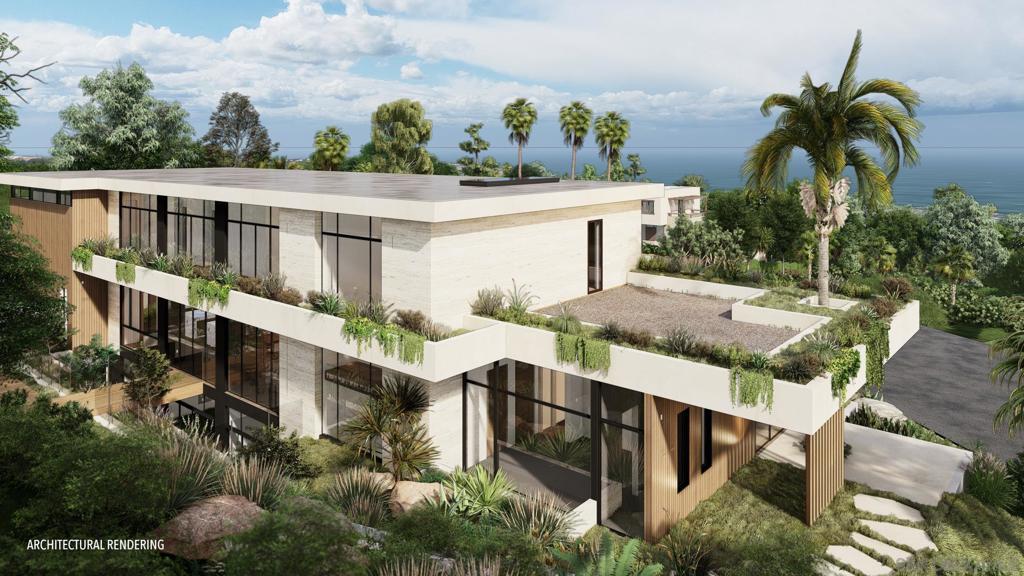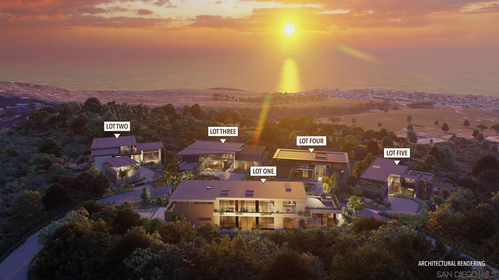 Perched at the pinnacle of Foxhill La Jolla, the proposed home for Lot One is a striking minimalist homage to mid-century modern design. With its clean lines and expansive overhangs, this home pairs timeless elegance with bold travertine surfaces that seamlessly integrate into the natural surroundings. At more than 10,000 square feet, this 6-bedroom, 8.5-bath residence masterfully balances modern sophistication with tranquil warmth. The home’s light, earthy stone reflects the golden hues of the setting sun, accentuating its architectural significance while blending into the serene coastal backdrop. The residence offers 180-degree ocean views at the front and a private nature preserve to the rear, creating a seamless connection between expansive panoramas and intimate tranquility. A front-facing infinity pool mirrors the coastal horizon, enhancing the home’s visual harmony, while a sleek suspended bridgeway connects the living room to a private courtyard and lush lightwell gardens. The simplicity of the home’s form allows the beauty of its materiality and thoughtful outdoor spaces to shine, embodying the very essence of mid-century modern design. The simplicity of the residence planned for Lot 1 allows its materiality and connection to nature to shine, embodying the essence of mid-century modern design, where bold surfaces, sleek lines, and thoughtful outdoor spaces merge seamlessly into one harmonious living experience. The living room opens to both a private courtyard and lush lightwell gardens via a sleek suspended bridgeway. Lot 1’s home plans feature a gym, movie room, and entertainment/bar space, including a back kitchen/pantry and laundry/mudroom, and 4-car garage. Its primary bathroom features double toilets. The lot size is 19,401 SF.