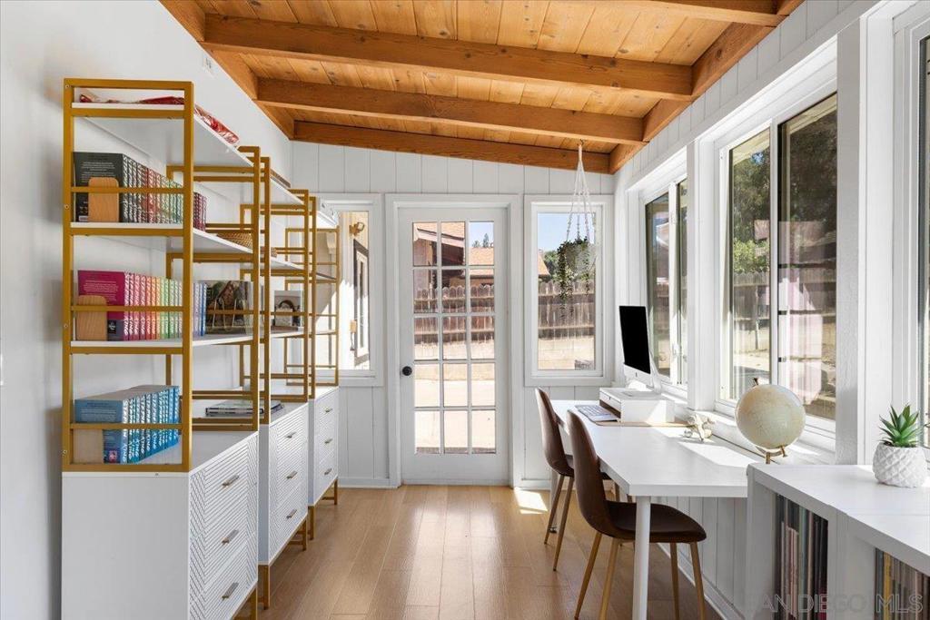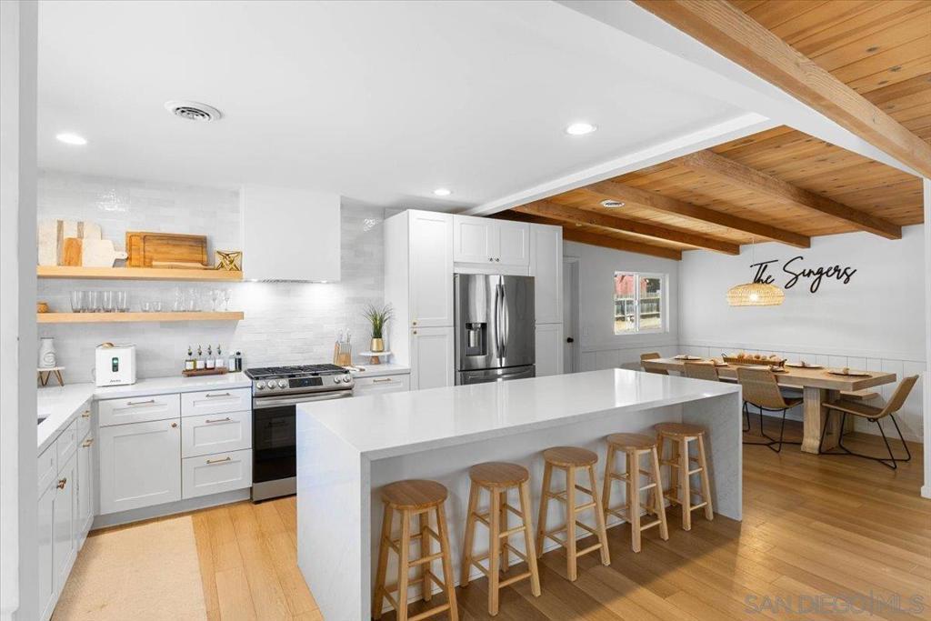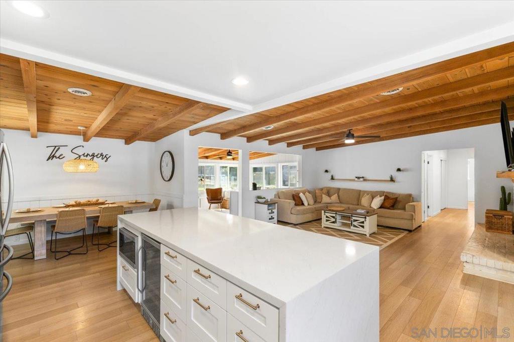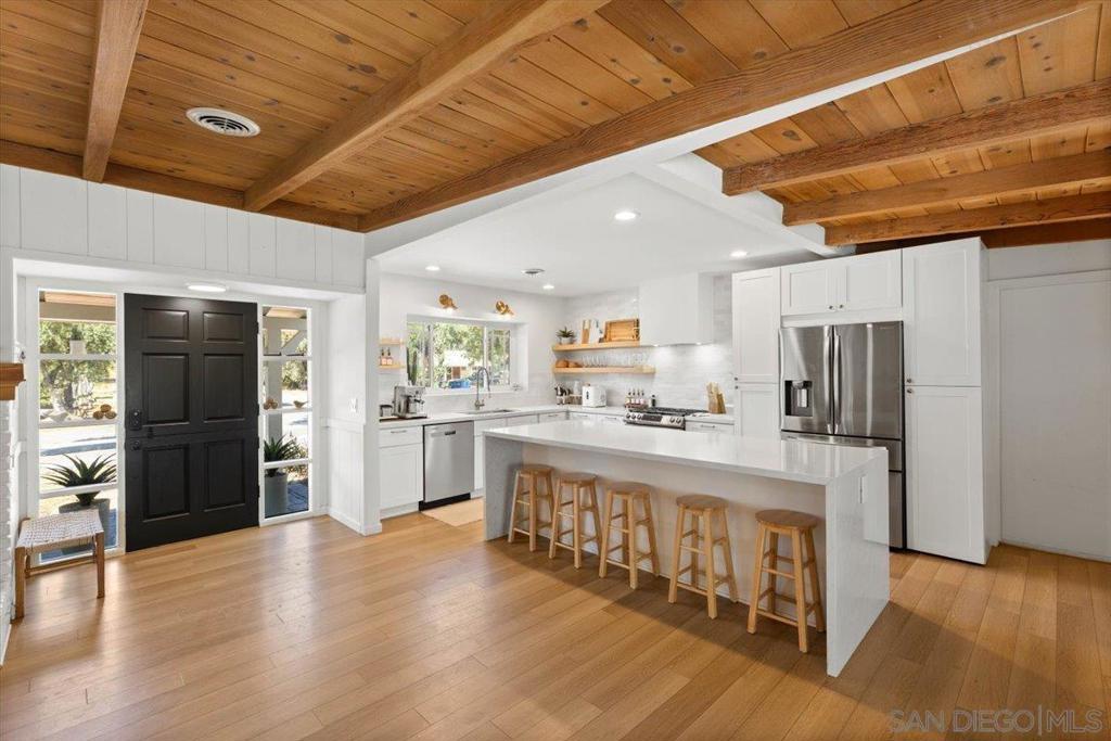 Completely remodeled in 2022, this 3 bedroom, 2 bath home with an attached 2-car garage, separate laundry room, and RV parking has it all. A new roof installed (April 2023), Solar Panels, and a Tesla Powerwall with the ability to connect an EV Charger. Step through the charming Dutch door into an open great room featuring beautifully refinished exposed beam ceilings and durable luxury vinyl plank flooring throughout. The newly renovated kitchen has a large island, quartz countertops with subway tiled backsplash, stainless steel appliances, upgraded fixtures, and even a wine fridge! Both bathrooms have been tastefully updated with new cabinets, countertops, tile/stone finishes, fixtures, and glass enclosures. You’ll also enjoy new lighting and ceiling fans throughout, plus updated mechanicals including a 2022 A/C, furnace, and water heater. Garage has been finished with new flooring. Set on a .34-acre usable lot, the property offers a large play area with low-maintenance artificial turf—perfect for family fun or entertaining.