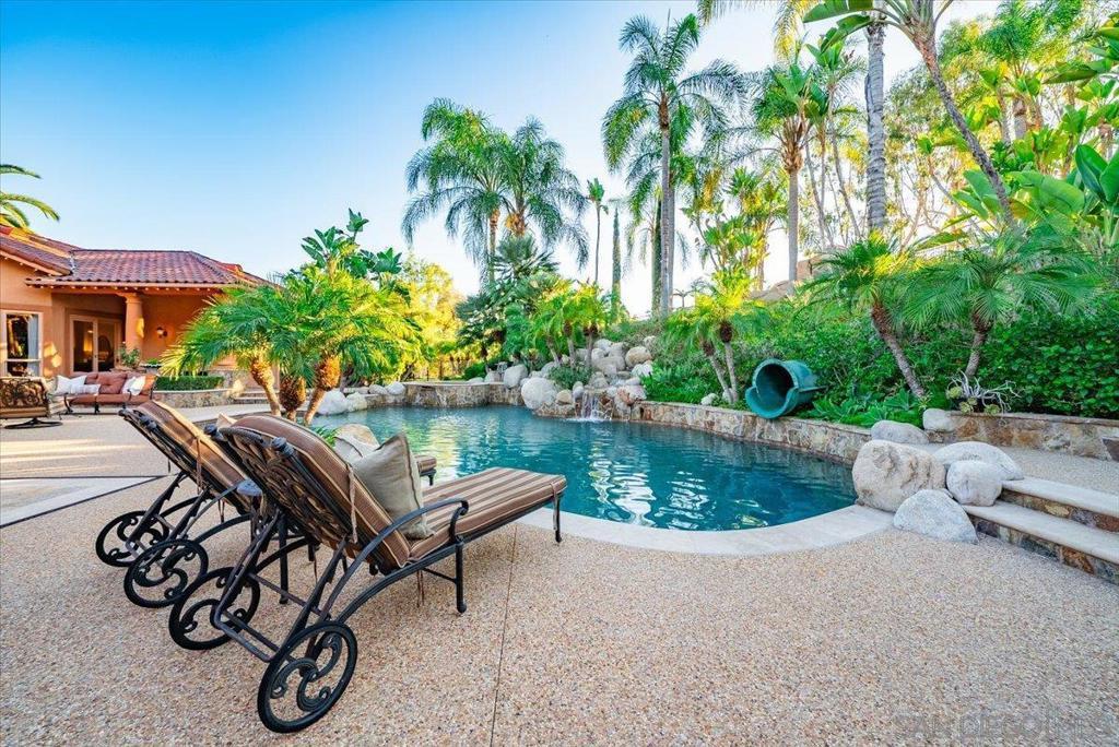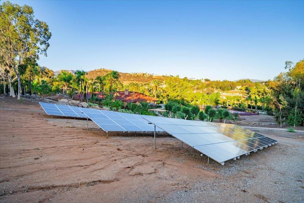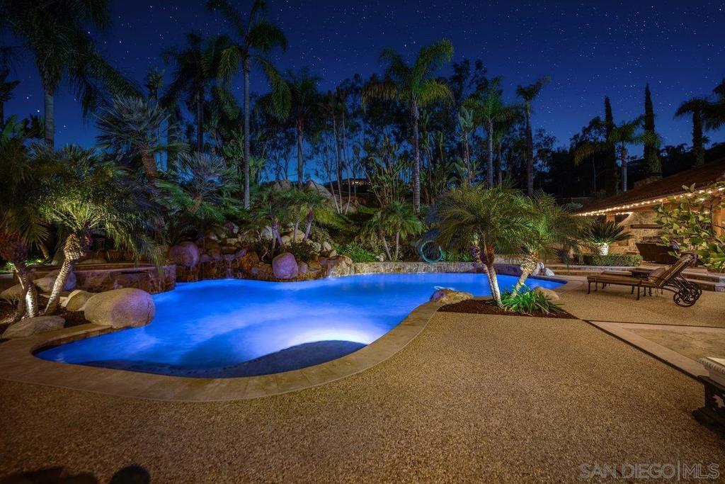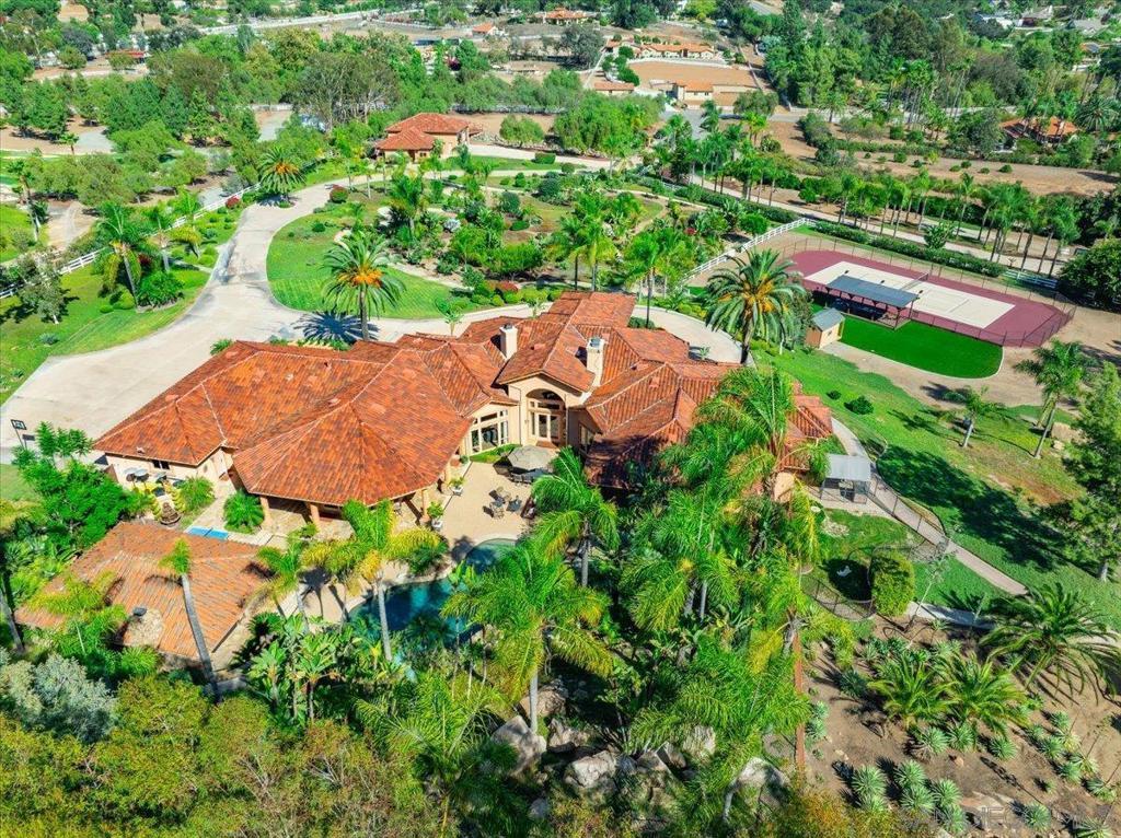 Prepare to be captivated by Blossom Valley's most exceptional estate, a privately gated sanctuary that redefines Southern California living. From the moment you enter through the grand gates, you are greeted by a sprawling 6.54-acre estate, offering unparalleled privacy and space. This estate is meticulously designed for both lavish gatherings and intimate celebrations, making it a true entertainer's paradise. The heart of this home is a chef's dream kitchen, featuring a huge prep island with a custom decorative extra-thick granite slab, a professional Wolf range, & Sub-Zero refrigerator, ensuring every culinary endeavor is a delight. The sophisticated 600 bottle Wine Cellar, an ideal for tastings and storing your prized collection. Featuring a Separate Guest House, perfect for visitors or extended family. An impressive 2 RV garage 40’ wide by 50’ long, with man cave/workshop & bathroom. The game room provides endless entertainment possibilities. The outdoor oasis features a magnificent Resort-Like Pool and Spa with enchanting waterfalls and an exhilarating 90-foot Waterslide, promising endless fun and relaxation. The Entertainment Pavilion features a full Kitchen, Living Room w/ cozy wood-burning Fireplace. Sports enthusiasts will appreciate the private Sport Court with tennis & pickleball. Inside, the master suite offers a sanctuary of luxury, complete with a Jacuzzi tub w/ fireplace, & a steam shower/sauna featuring aromatherapy for ultimate rejuvenation. Equipped w/ a state-of-the-art 108 panel solar system for energy efficiency and pool solar for year-round enjoyment.