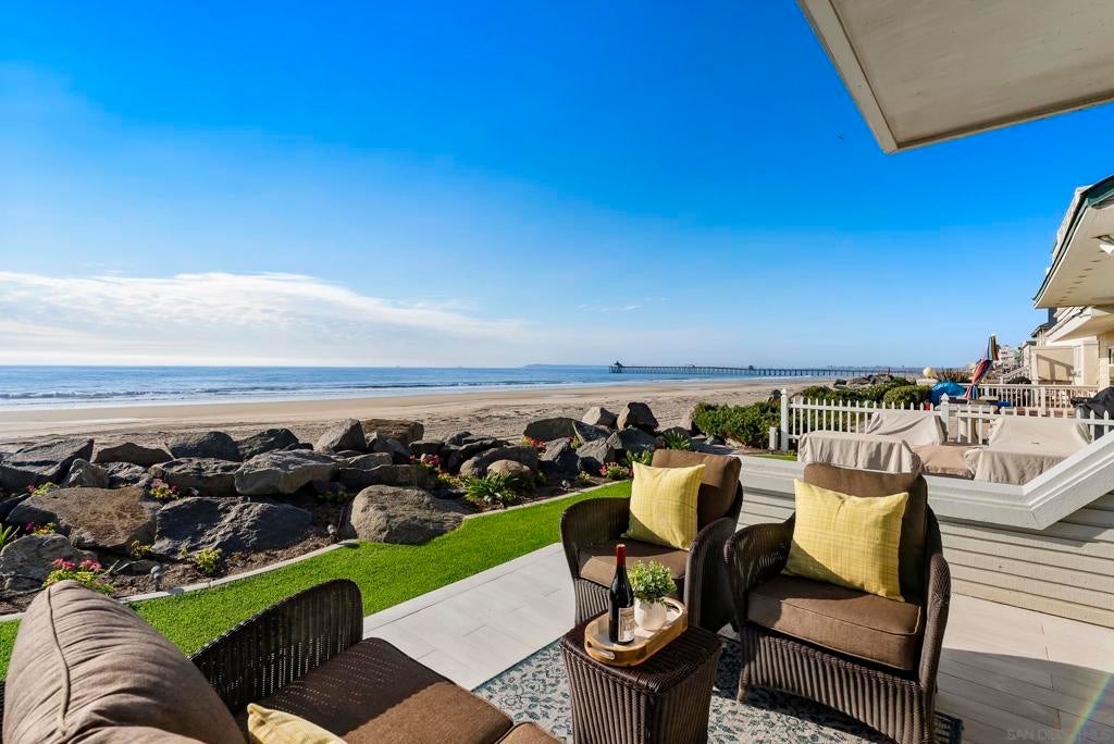 Rare Townhome that sits on the sand! With only two neighbors in the Tri-Plex, it lives like a private residence. Abundant light and vaulted ceilings make inside warm and inviting. Oversized primary suite with spa area opens to private deck. Guest room deck overlooks waves crashing. White paver drive leads to one-car garage and covered carport. Front is lush bird estuary and back is glowing sunsets. Stroll to Pier, dining and IB charm. It's a one-of-a kind property. $300,000 exterior renovation in 2022. Oversized Primary bedroom and bath. Massive windows on front, side and back of home bring in light all times of day. Incredible storage with closets and cabinets. Laundry room located next to bedrooms with full size washer/dryer.