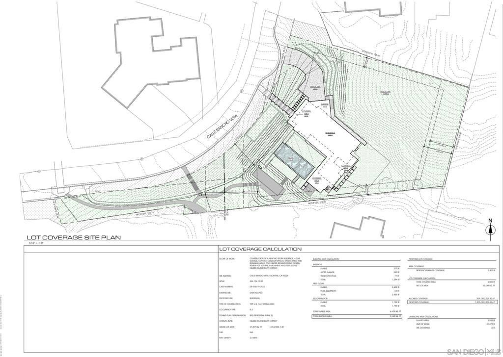 MOTIVATED SELLER. Seller is in escrow on a different property and has a tight window to close. Seller will look at all offers as long as his current up-leg property is in the picture. One of the Last Remaining Lots in Olivenhain – Canyon Views | Prime Location. Rare opportunity to build a custom estate on one of the final available lots in a private Olivenhain cul-de-sac, just 10 minutes from Cardiff Beach. This exceptional property offers stunning canyon views and over three years of completed work with the City of Encinitas. The proposed design features a 4,600 sq ft custom home with a 1,000 sq ft subterranean 4-car garage, 4 bedrooms (plus optional 5th), office, study, private elevator, oversized walk-in pantry, 250 sq ft primary closet, and a spacious backyard with a front-facing infinity edge pool. Progress highlights: Soils and ecological reports completed, grading and slope evaluations done, fire, water, and sewer services evaluated at the street Ready to enter structural and construction "doc" phase. With just one lot left in this coveted neighborhood, and the potential to break ground as soon as early 2026, this is a rare chance to create a signature home in one of North County’s most desirable communities.