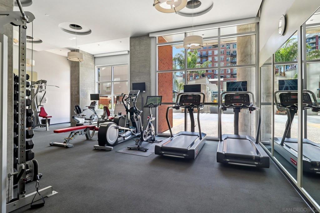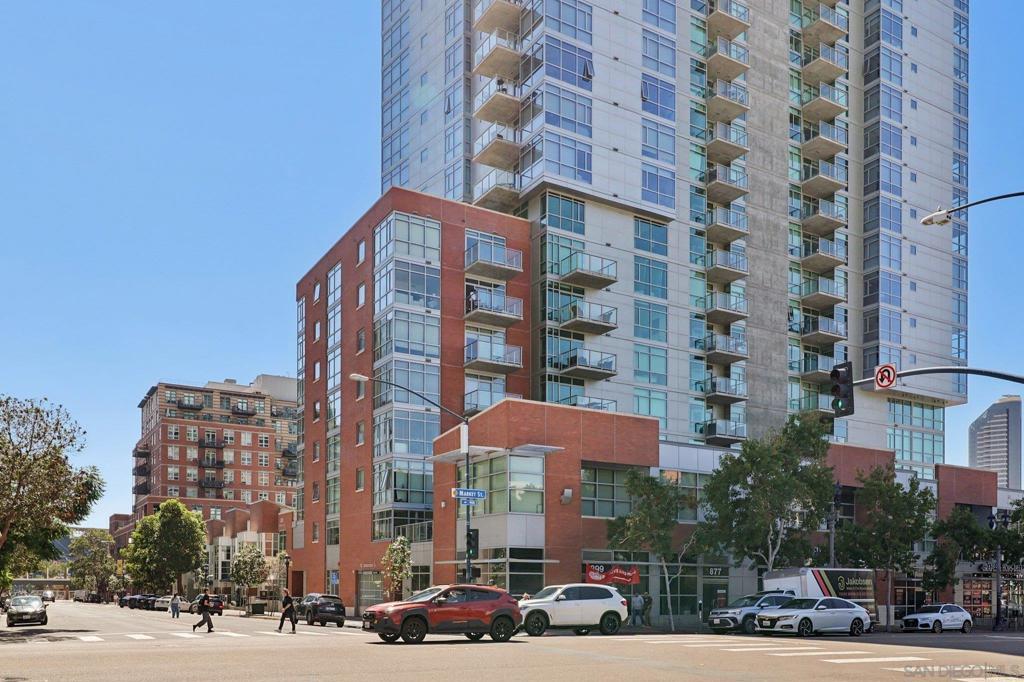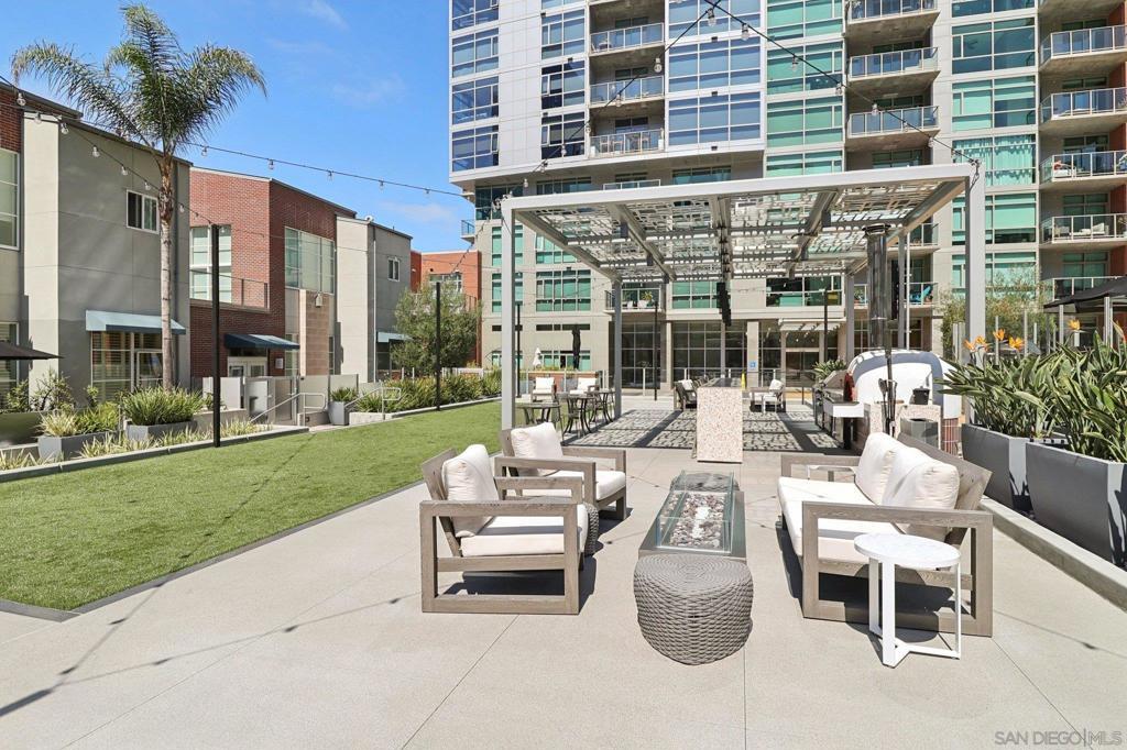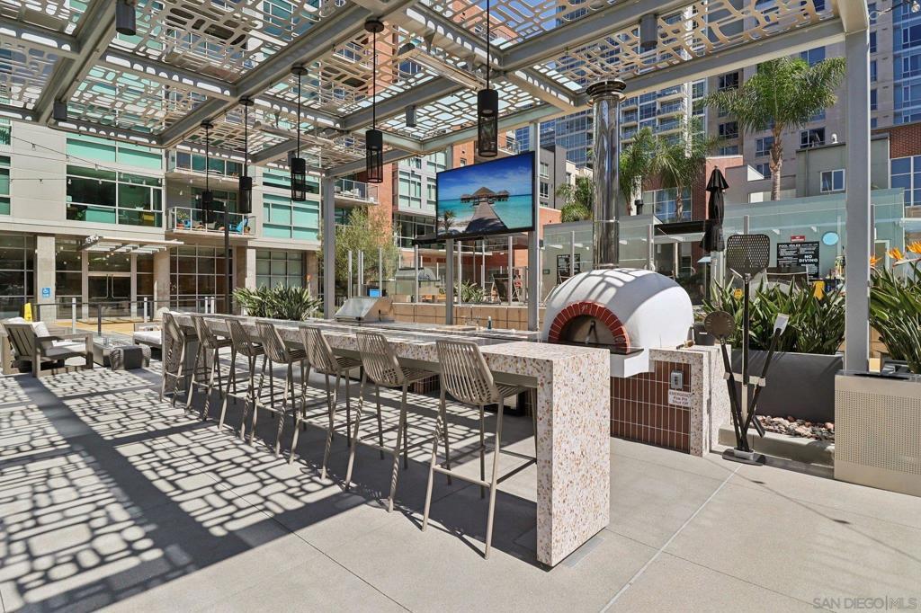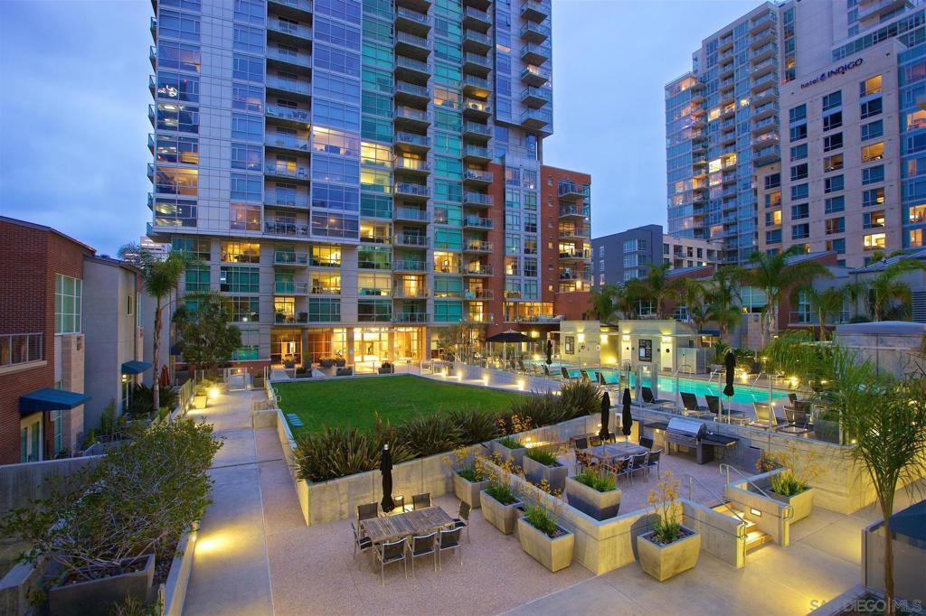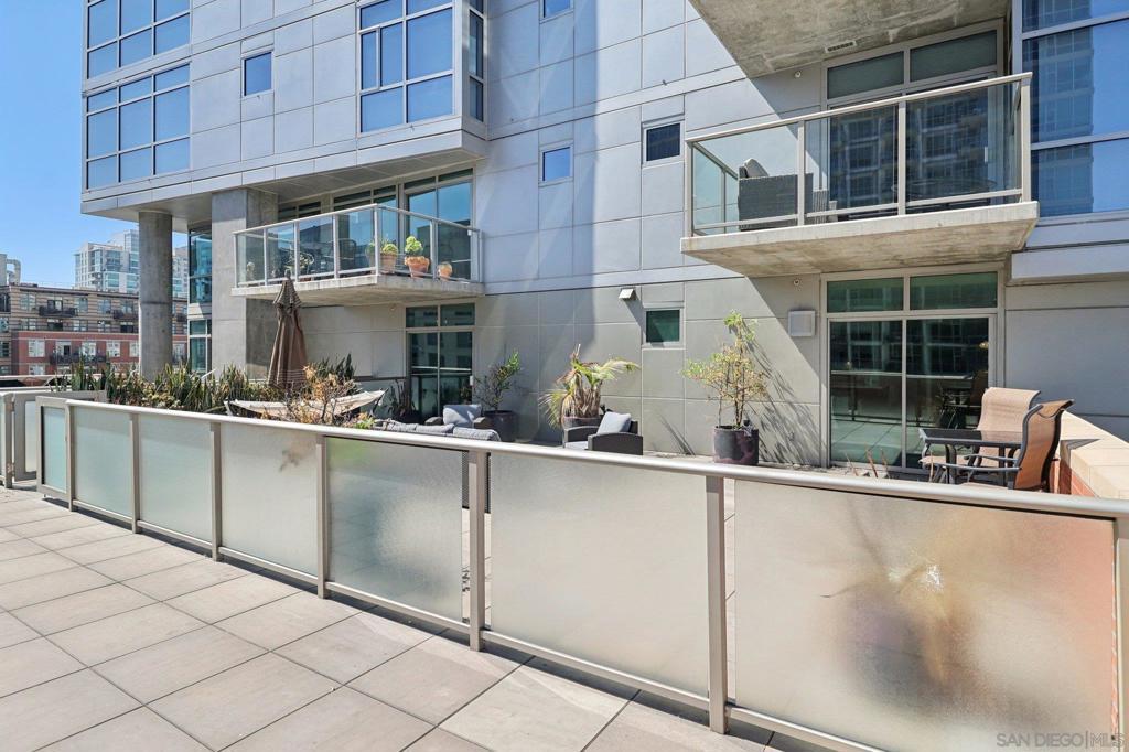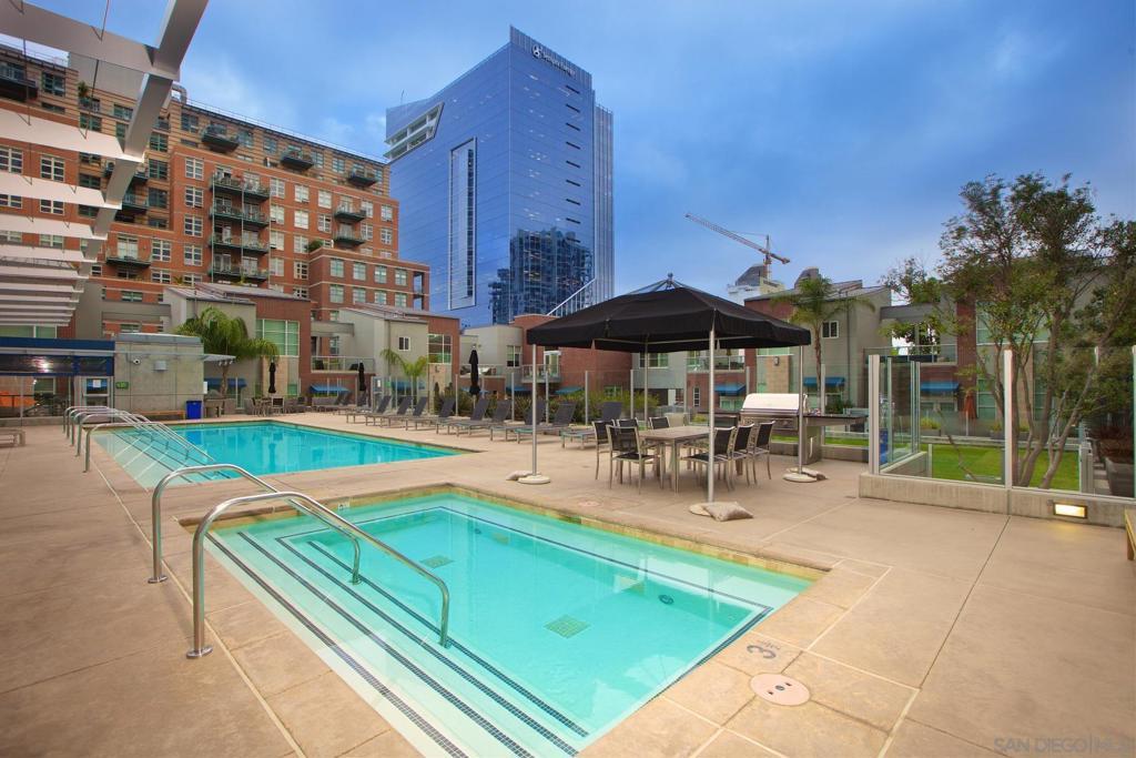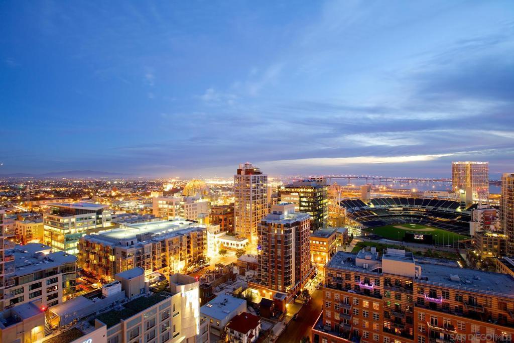 Welcome to this entertainer’s dream in the heart of downtown! A truly one-of-a-kind corner unit boasting an expansive 750 sq. ft. private patio, perfect for soaking in the morning sun, relaxing in the afternoon shade, and entertaining under the city lights. With over 1,858 sq. ft. of combined indoor/outdoor living space, this home is larger than many 2-bedroom units and offers a rare blend of luxury, space, and functionality. Step inside to find an updated kitchen and bath, soaring floor-to-ceiling windows, and high ceilings that flood the home with natural light and frame spectacular city skyline and bay views. The open floor plan includes a spacious living area with a large screen and projector setup, an extra nook ideal for a home office or den, and ample storage throughout. Additional features include upgraded stainless steel appliances, 2 parking spaces located across from one another, and a private storage room. All this, just 2 blocks from Petco Park and 3 blocks to the historic Gaslamp Quarter. Must see to appreciate!