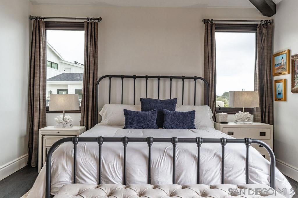 *FURNISHED* Oceanview Spanish-Style Retreat in Encinitas Stunning 4BR/3.5BA Spanish-style home with breathtaking ocean views and resort-style outdoor living, located just minutes from Moonlight Beach, restaurants, and shops. Enter through a private courtyard into an open-concept living, dining, and kitchen area with French doors opening to an expansive deck overlooking the ocean. The gourmet kitchen features a large stone island, high-end stainless steel appliances, and wine fridge. Outdoor spaces include a pool, spa, fire pit, BBQ, lounge areas, dining for eight, and landscaped gardens with fruit trees. The primary suite offers a king bed, private balcony, spa-like bath with soaking tub, shower, and ocean views. Second bedroom has king bed, balcony, TV, and en-suite bath; third and fourth bedrooms share a connecting bath with king and queen beds. Additional amenities include laundry, partial A/C, gated parking, and garage access. A rare opportunity to enjoy luxurious coastal living in the heart of Encinitas.