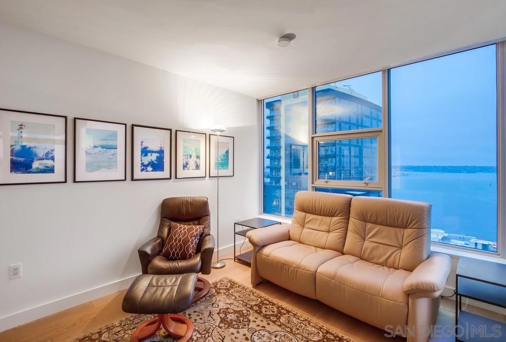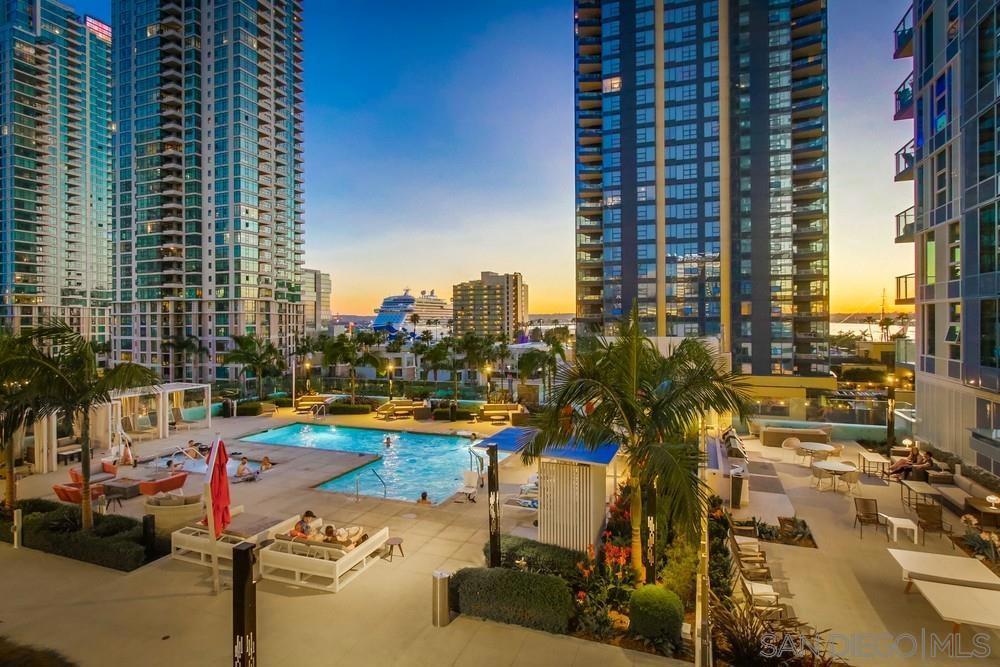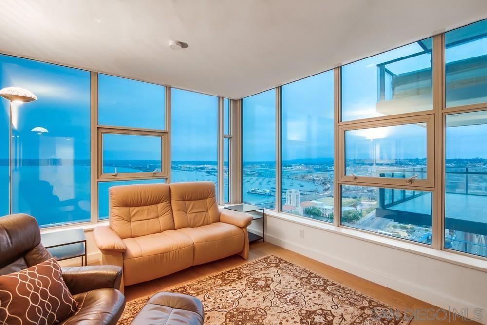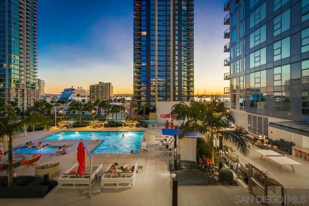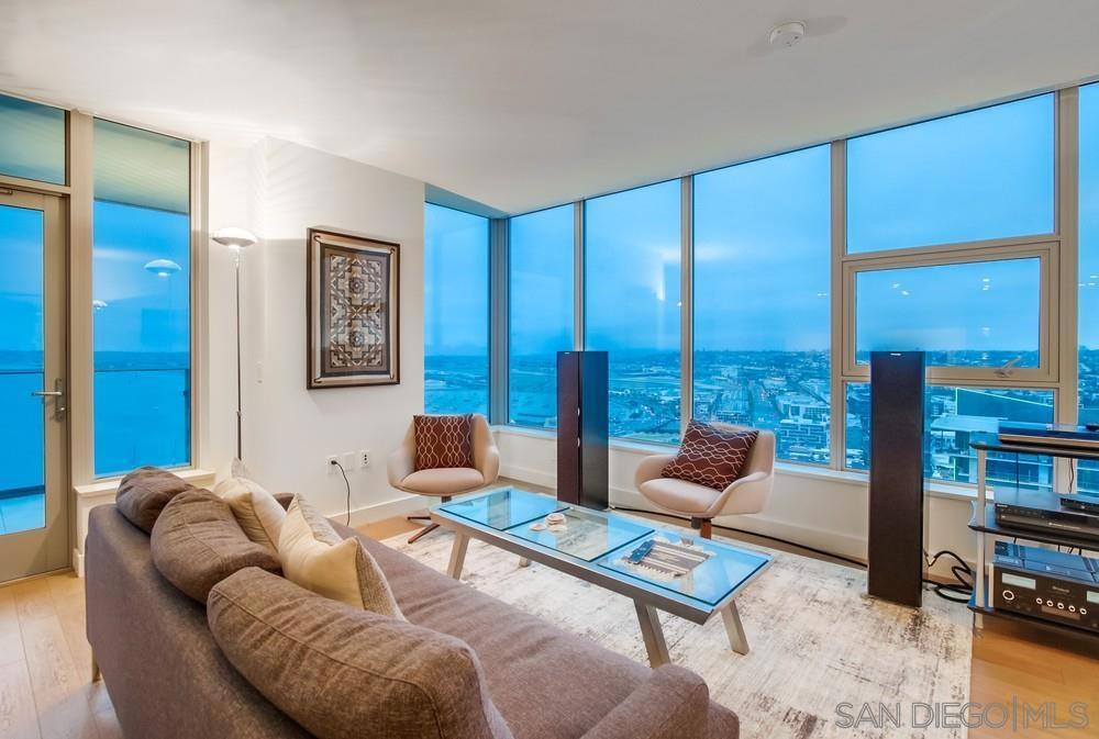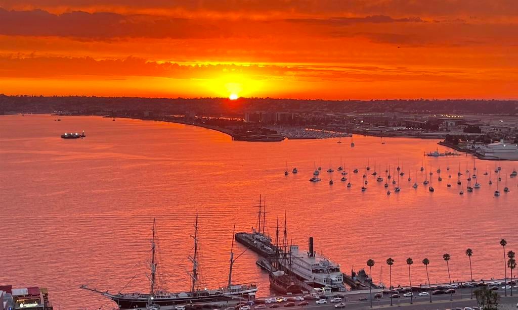 Views from every room! 29th floor Residence at Savina, a coveted Downtown San Diego location steps from Little Italy. This NW corner home looks out to Balboa Park, Sea World and across the bay for sweeping views and sunsets. Generous outdoor patio, modern open concept kitchen with top of the line Thermador appliances and wine refrigerator. Savina offers concierge services along with incredible amenities including resort area pool and spa, steam/sauna, incredible fitness center and more. Side by side parking spaces and extra large storage included with home.