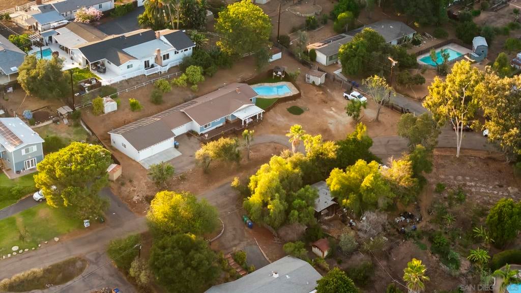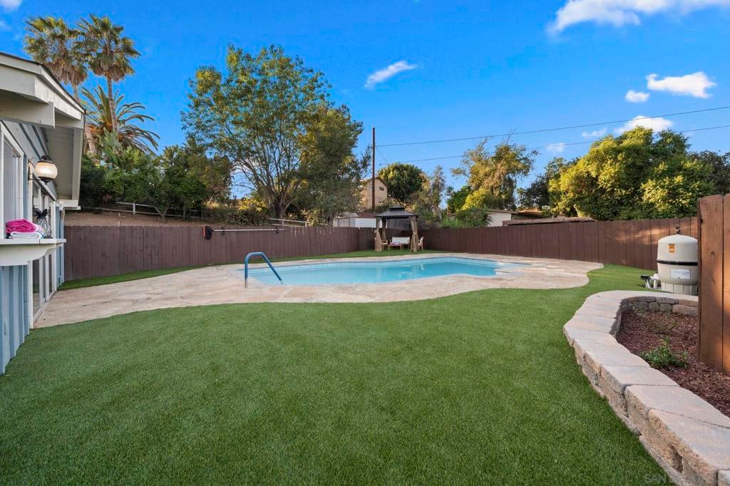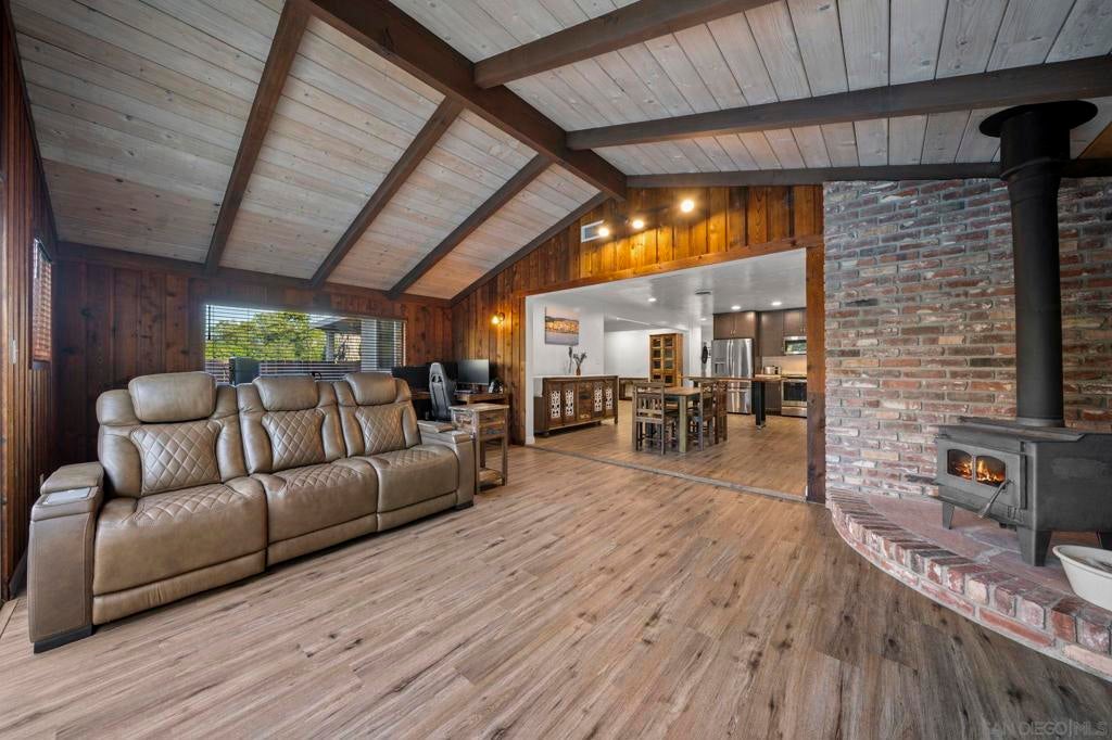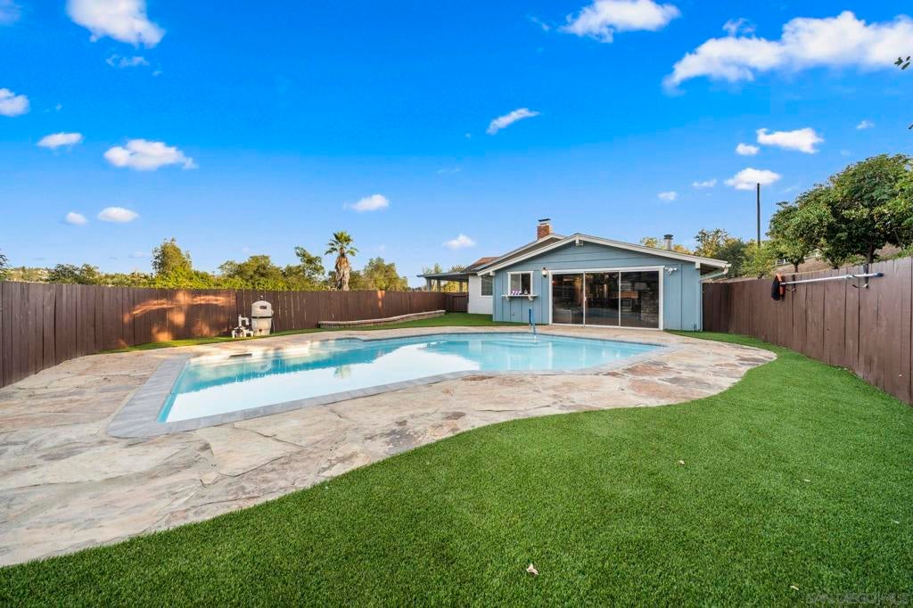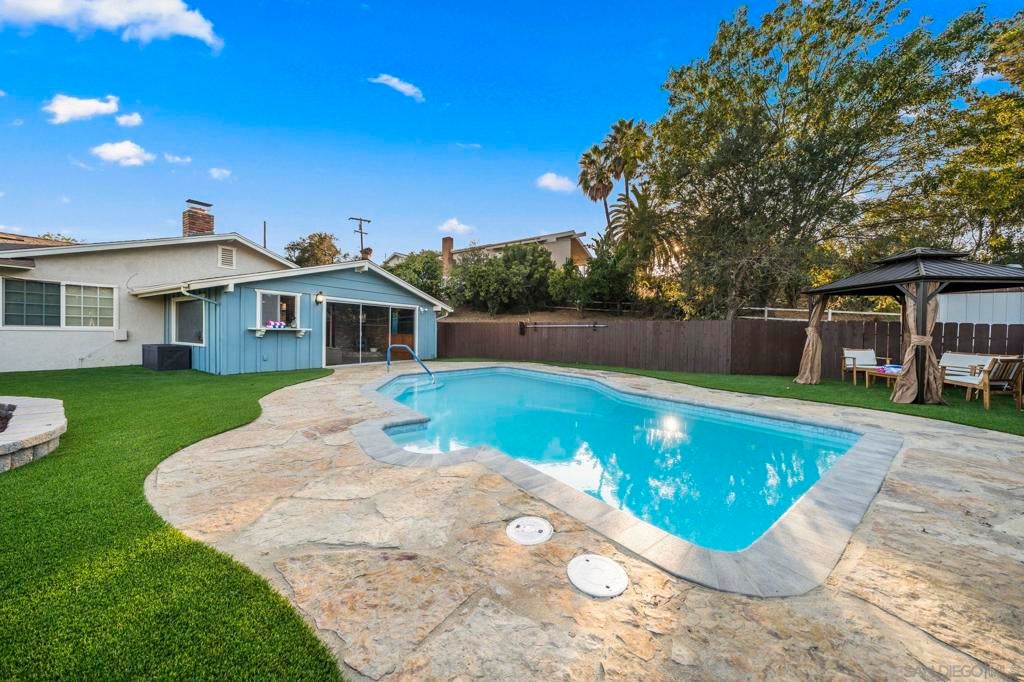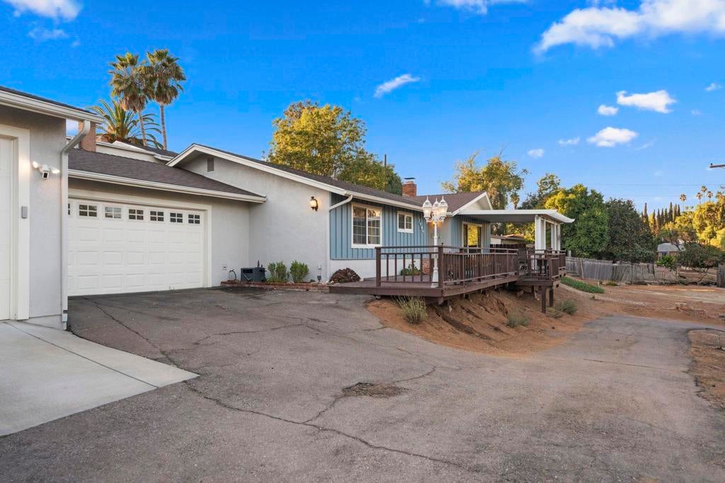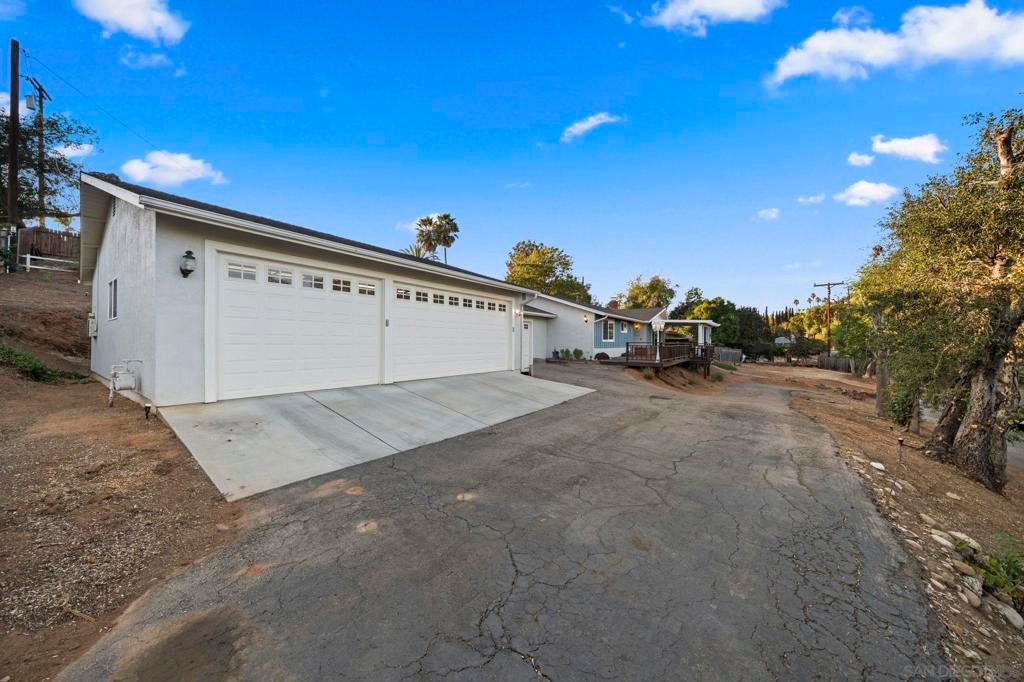 This beautifully updated single-level home in the desirable Rancho San Diego area of El Cajon offers a RARE FIVE-CAR garage setup, perfect for car enthusiasts or those in need of ample storage and workspace. It includes an attached 2-car garage and a custom-built 3-car garage with high ceilings that can accommodate tandem parking for certain vehicles. The garage also features a tankless water heater, adding to the home’s modern conveniences. The home offers 3 bedrooms, 2 bathrooms, and 1,866 square feet of living space on a peaceful hillside lot. The home sits on a usable half-acre and features a resurfaced pool with a new pump in a private, fenced-in area with synthetic turf—ideal for relaxing or entertaining, with direct access from the home. Inside, the kitchen has been fully remodeled with soft-close custom cabinetry, stainless steel appliances, a built-in wine fridge, and a coffee bar. There are two separate living areas, each with its own fireplace, creating flexible and comfortable spaces. Additional updates include high-end dual-pane windows, a newer HVAC system, and a FULLY PAID 20-PANEL SOLAR SYTEM for energy efficiency. The exterior has been treated with a $30,000 “Cool Wall” energy-efficient paint system. There’s also a private driveway, RV parking, and three additional storage sheds. The property includes mature fruit trees and plenty of open space, offering peace and quiet in a highly sought-after neighborhood. Laundry hookups are available both inside the home and in the garage.