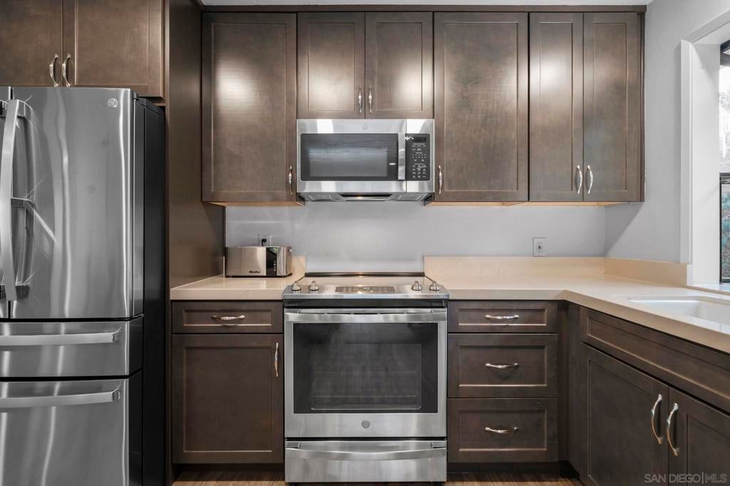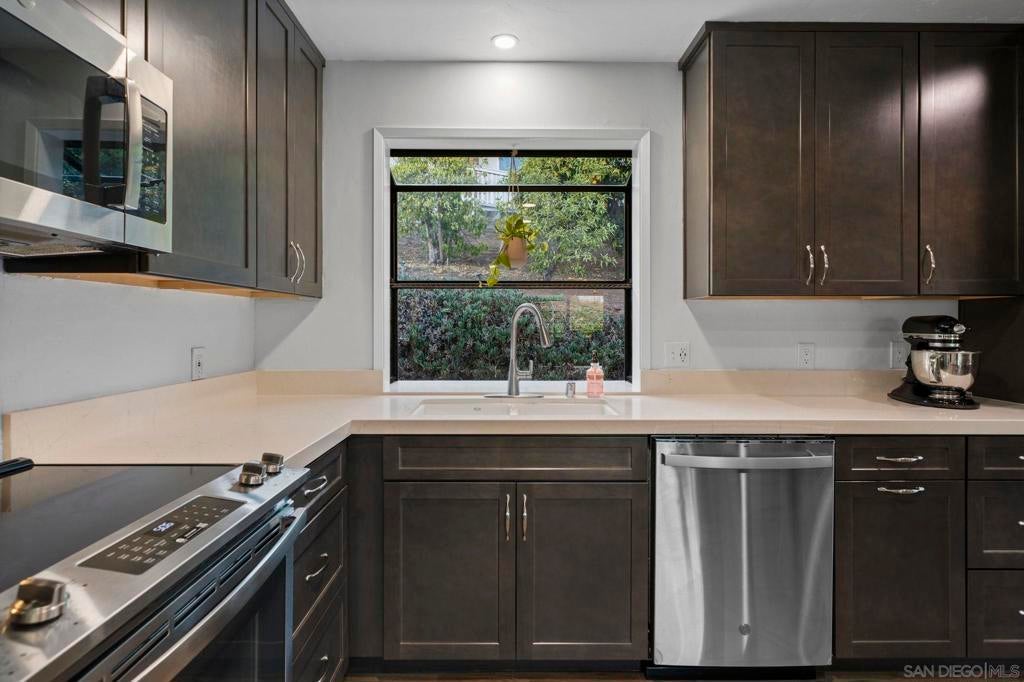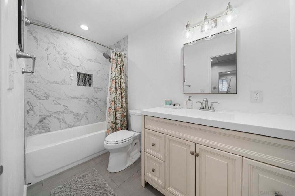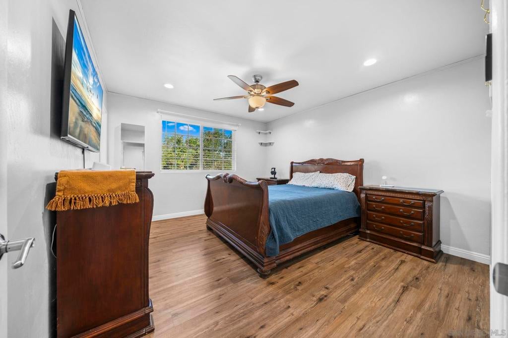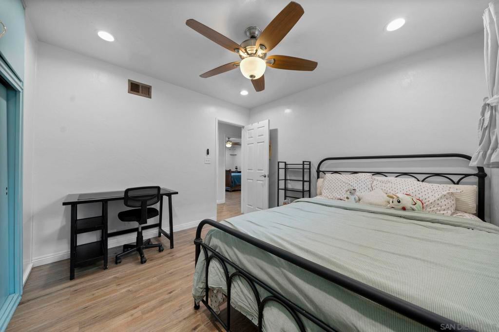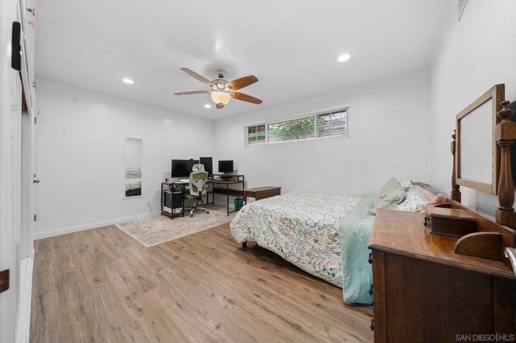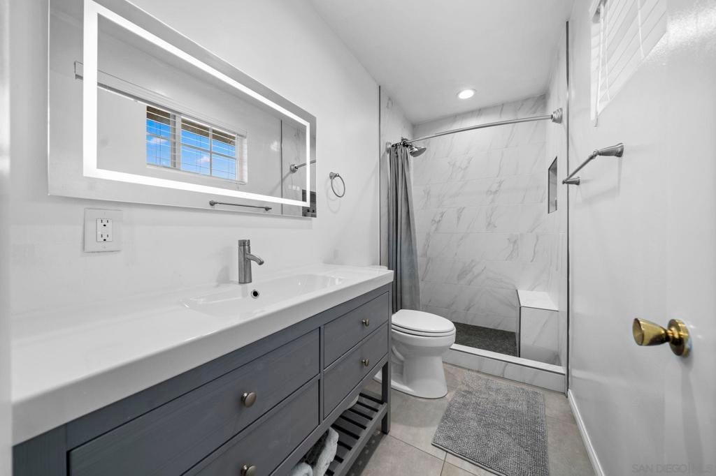 This beautifully updated single-level home in the desirable Rancho San Diego area of El Cajon offers a RARE FIVE-CAR garage setup, perfect for car enthusiasts or those in need of ample storage and workspace. It includes an attached 2-car garage and a custom-built 3-car garage with high ceilings that can accommodate tandem parking for certain vehicles. The garage also features a tankless water heater, adding to the home’s modern conveniences. The home offers 3 bedrooms, 2 bathrooms, and 1,866 square feet of living space on a peaceful hillside lot. The home sits on a usable half-acre and features a resurfaced pool with a new pump in a private, fenced-in area with synthetic turf—ideal for relaxing or entertaining, with direct access from the home. Inside, the kitchen has been fully remodeled with soft-close custom cabinetry, stainless steel appliances, a built-in wine fridge, and a coffee bar. There are two separate living areas, each with its own fireplace, creating flexible and comfortable spaces. Additional updates include high-end dual-pane windows, a newer HVAC system, and a FULLY PAID 20-PANEL SOLAR SYTEM for energy efficiency. The exterior has been treated with a $30,000 “Cool Wall” energy-efficient paint system. There’s also a private driveway, RV parking, and three additional storage sheds. The property includes mature fruit trees and plenty of open space, offering peace and quiet in a highly sought-after neighborhood. Laundry hookups are available both inside the home and in the garage.