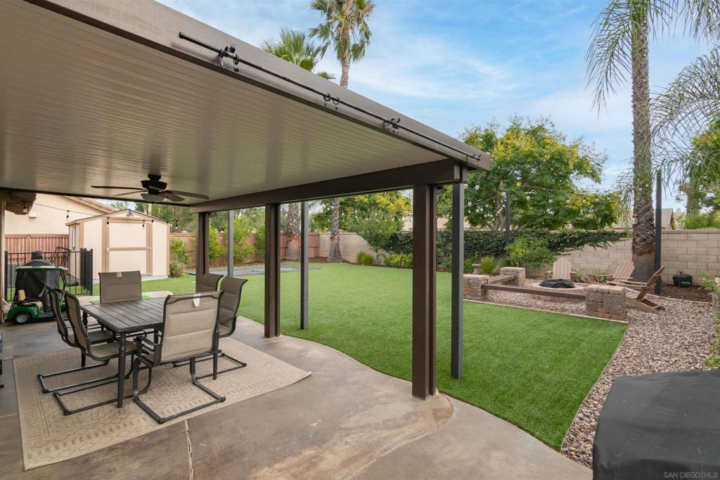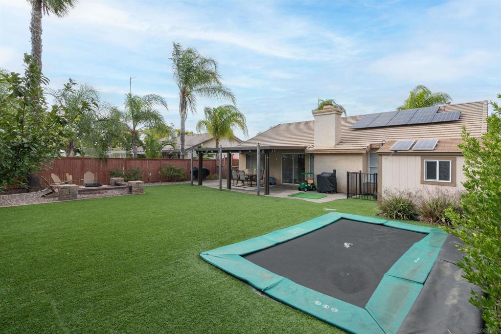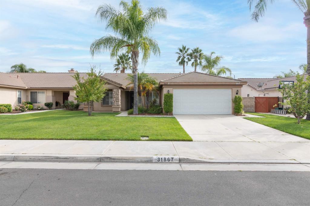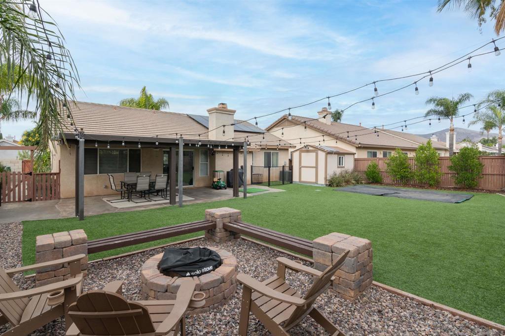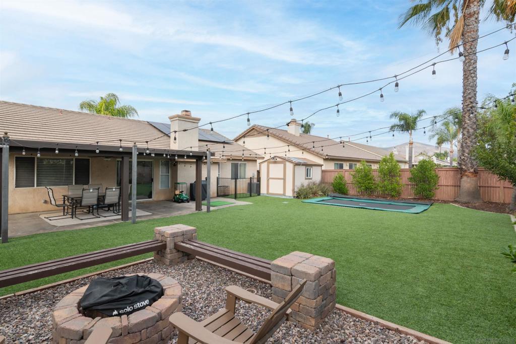 Welcome to 31867 Crecy Drive! A beautifully updated single-story retreat where comfort, convenience, and modern living come together. Step inside this 3 bed, 2 bath home offering light-filled living with vaulted ceilings, flexible office nook, new crown molding, fireplace, custom shutters with a lifetime warranty, and a custom designed walk-in closet. Every detail has been thoughtfully upgraded to make this home truly move-in ready. Dream Kitchen: Cook and entertain with ease in a modern kitchen featuring quartz countertops, white shaker cabinetry, a new Samsung Bespoke Smart Refrigerator with beverage center, Samsung Smart dishwasher, and a premium Puronics Hydronex whole-home water softener with Alkaline reverse osmosis filtration in the kitchen. Outdoor Living: Relax and entertain in a spacious backyard retreat complete with Alumawood covered patio, low-maintenance turf lawn, built-in ground trampoline, cozy firepit for sunset views, raised garden beds, a producing lemon tree, gated dog run, and an insulated shed; the perfect space for entertaining, gardening, or unwinding under the stars. Smart & Efficient Upgrades: Includes a ChargePoint 240-volt EV charger, A/C with smart thermostat, and the added peace of mind of solar panels on the roof and shed producing energy for long-term efficiency and savings for the home. Located in the desirable Temecula School District with quick access to both the I-15 and I-215, this home blends fresh finishes, thoughtful upgrades, and a prime location; offering the perfect balance of style, functionality, and convenience.