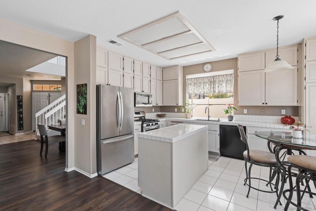 Discover Rancho Del Oro living in this beautifully maintained 4-bedroom, 3-bath corner-lot home offering 2,196 sq. ft. of comfort and style. A full bedroom and bathroom on the first floor make it perfect for guests, multi-generational living, or a private home office. Inside, soaring high ceilings and a bright open floor plan create seamless flow between the living, dining, and kitchen areas—ideal for entertaining or cozy family nights in the family room with fireplace. The kitchen features abundant storage, while durable laminate flooring adds modern appeal. Upstairs, the spacious primary suite includes a large walk-in closet, plenty of natural light, and a private bath. Enjoy indoor-outdoor living with a private backyard and patio, perfect for BBQs, gardening, or relaxing evenings. A brand-new Whole House Fan enhances efficiency, and the attached garage offers storage and convenience. Located next to the private and QUIET community playground and within walking distance to Empresa Elementary, this home is a dream for families. Rancho Del Oro is celebrated for its parks, community pool areas nearby, tree-lined streets, and award-winning schools, while being minutes from shopping, dining, and the Oceanside beaches. Easy freeway access makes commuting simple. Don’t miss this opportunity—1593 Avenida Guillermo delivers all the features buyers search for: open floor plan, fireplace, walk-in closet, backyard, patio, garage, and move-in-ready living. First-time and VA buyers welcome!