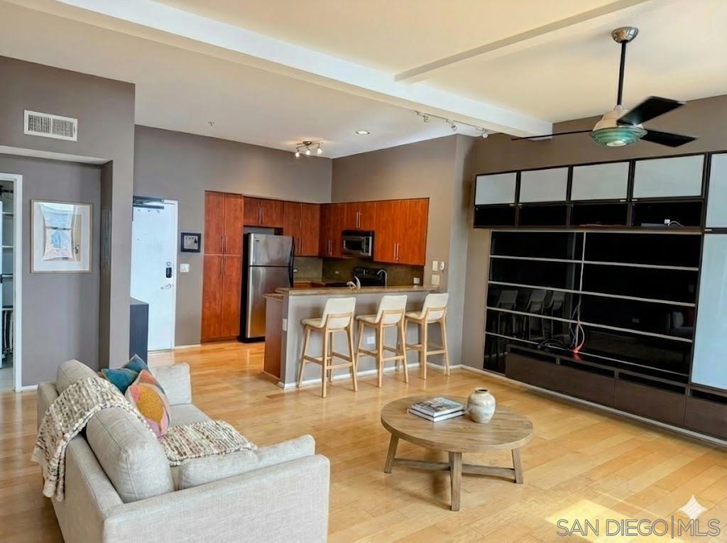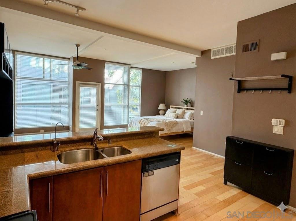Welcome to a stylish UNFURNISHED studio located in the heart of San Diego's Marina District. This unfurnished residence offers a bright, open layout with large windows that bring in natural light and highlight the vibrant city surroundings. The kitchen features modern cabinetry and ample counter space, while the open-concept design makes it easy to create a comfortable living, dining, and sleeping area. Additional highlights include in-unit laundry, central A/C, and a private balcony perfect for enjoying the downtown atmosphere. Located in a secure mid-rise building, residents enjoy access to community amenities such as a rooftop deck, fitness center, and assigned parking. Just steps from the Gaslamp Quarter, Seaport Village, Little Italy, Petco Park, and San Diego's best dining, shopping, and nightlife, this home offers the perfect mix of convenience and urban lifestyle.