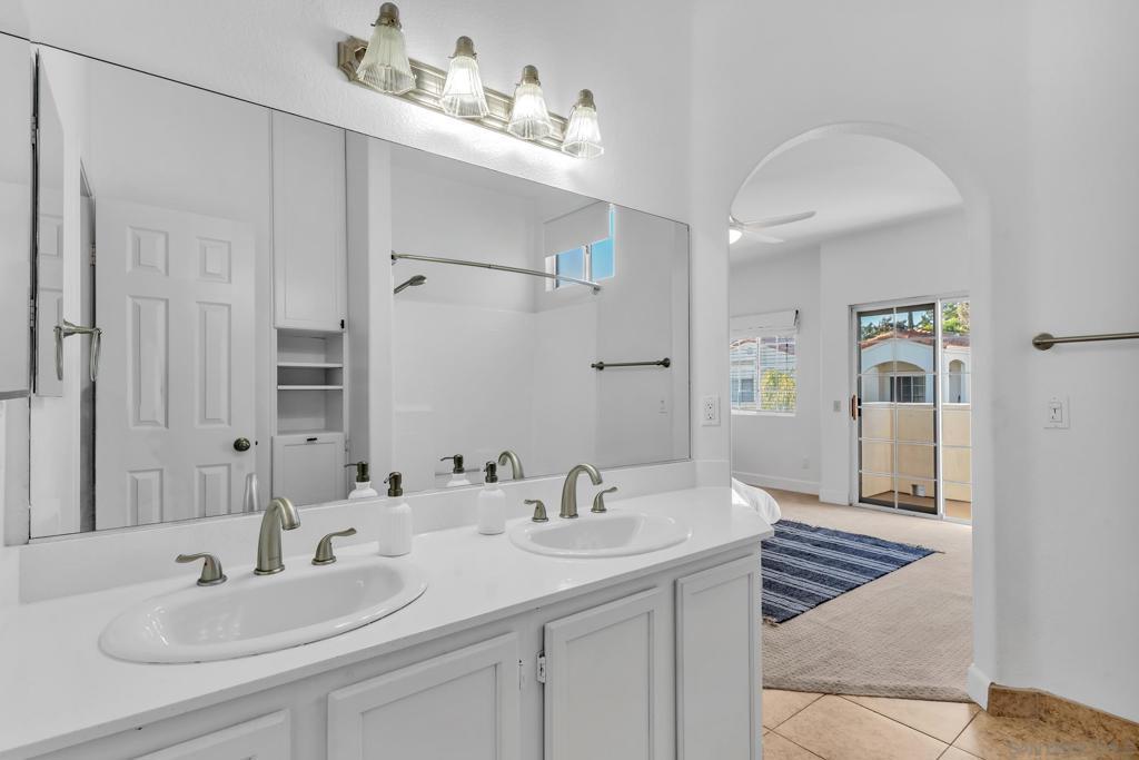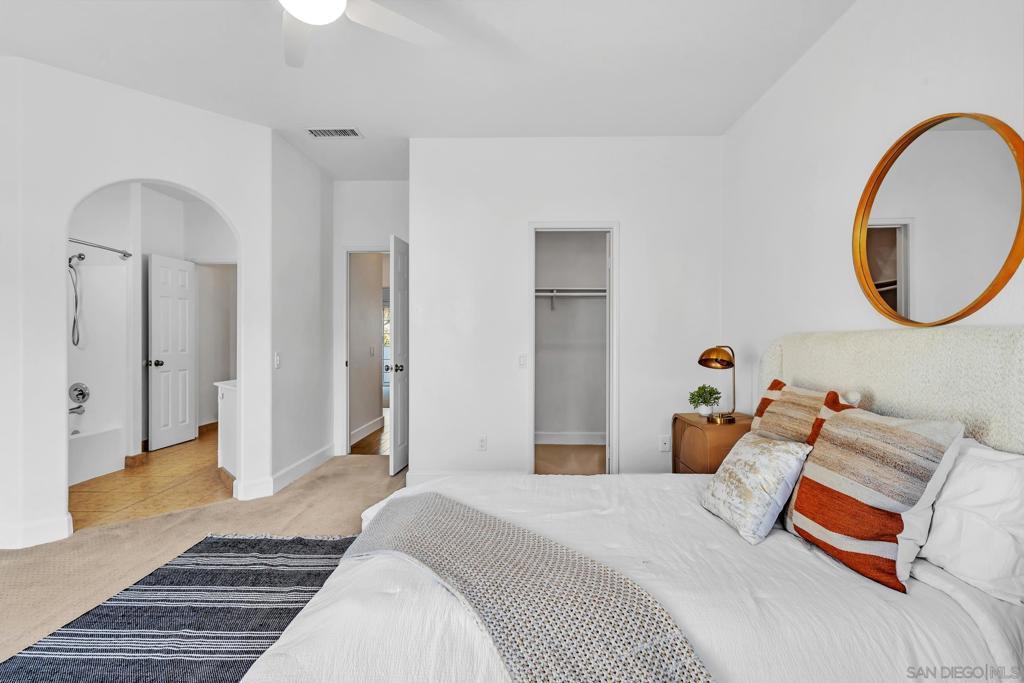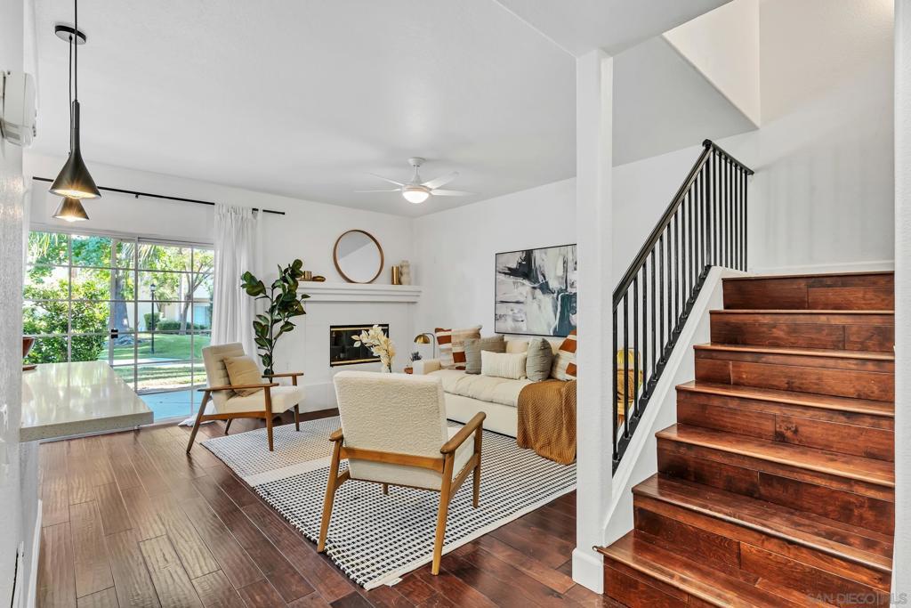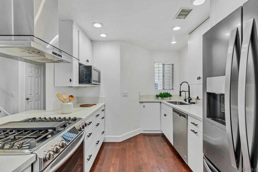 Crisp, modern, and move-in ready—this updated townhome in gated Villa Aspara backs to open greenspace and lives large with natural light and two private balconies. Inside, you’ll find real wood flooring, solar for energy savings, and a modern kitchen with quartz counters, stainless appliances, and bar seating—perfect for everyday living or easy entertaining. The flexible layout offers a spacious living area, dining zone, and a powder room on the main level, with bedrooms tucked upstairs for privacy. The attached two-car garage has a rare perk in this community: convenient loading/unloading parking directly in front of the garage. Outdoors, enjoy the peaceful backdrop of the greenbelt plus community amenities and the security of a gated neighborhood. All of this in a prime San Marcos location—minutes to shopping, dining, Cal State San Marcos & Palomar College, and quick access to Hwy-78 & I-15. Villa Aspara is known for its well-kept grounds, pool/spa area, and lock-and-leave convenience.