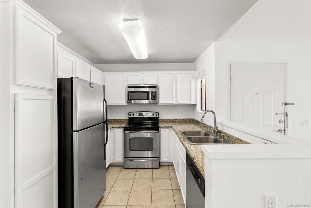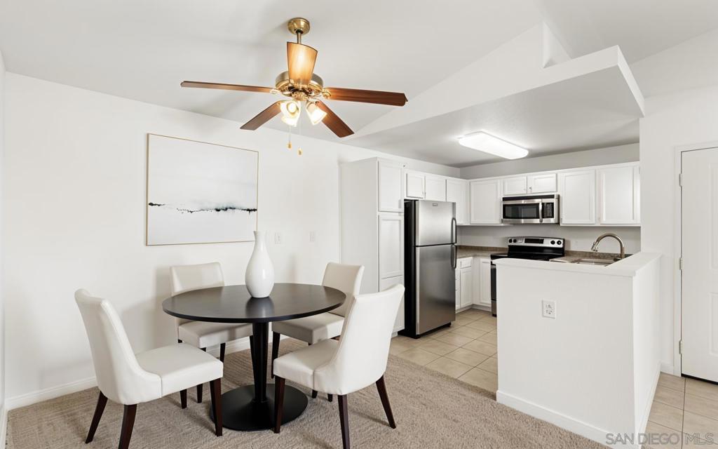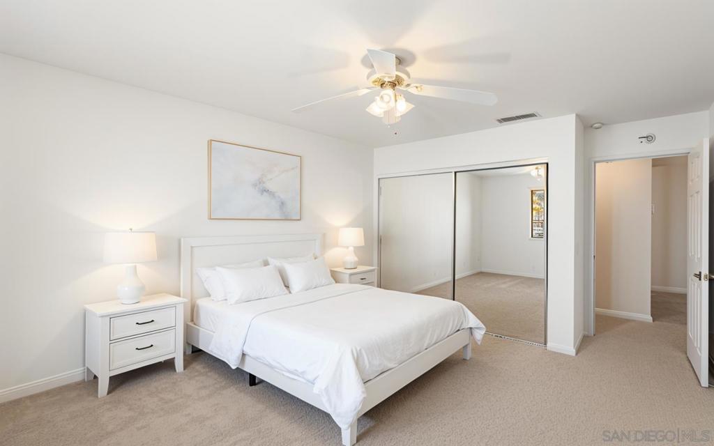 Located in the desirable Villa MonteVina complex of Rancho San Diego, this upper-level condo features peek mountain views, high vaulted ceilings, central heat/AC, in-unit laundry, fresh paint, brand new carpet throughout and a spacious private balcony with storage closet. The kitchen features newly updated cabinets, stainless steel appliances, stone counters and ample cabinet space. The Villa MonteVina community offers two pools & spas, a gym, sauna, tennis & racquetball courts, playground, BBQ's, clubhouse and plenty of guest parking. It's conveniently located walking distance to Cuyamaca College and minutes to shopping, dining, grocery stores, theaters and more. With all paid utilities besides SDGE/internet, this is an excellent personal home or rental investment!