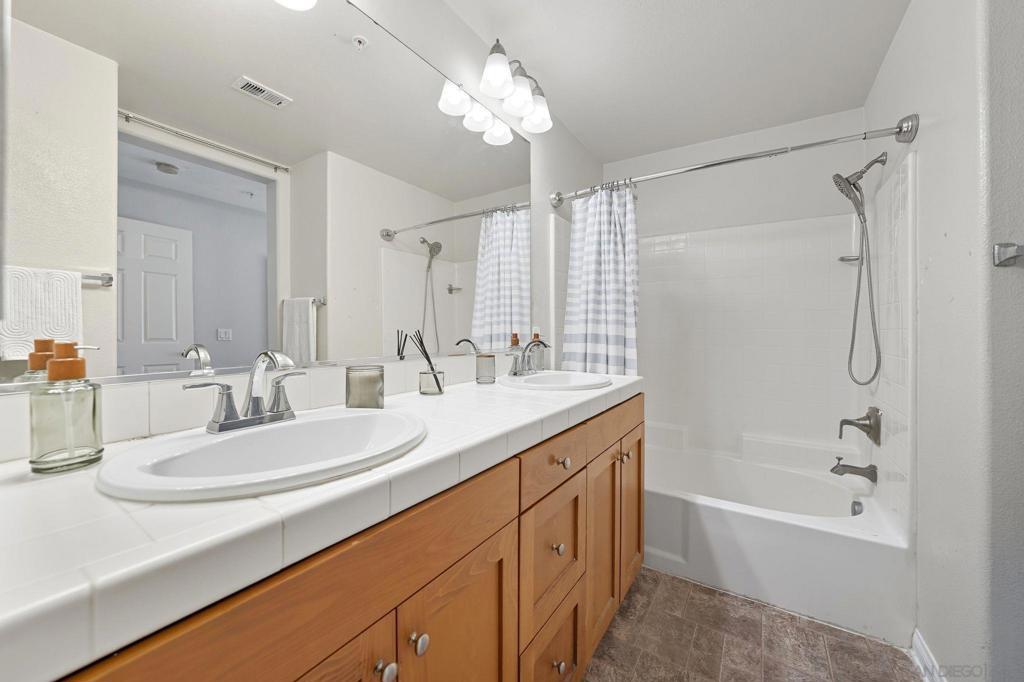 Discover this exceptional 4-bedroom, 3.5-bathroom townhome, perfectly situated in the heart of Kearny Mesa. The main level features an inviting living room, highlighted by a built-in entertainment center, serving as the ideal space for relaxation and hosting. This home's versatile three-story layout is a true standout, featuring three bedrooms with private en-suite bathrooms. The secluded first-floor suite is perfect for long-term guests or a dedicated home office. This home also has the premium convenience of a rare side-by-side two-car garage. Across the street, Centrum Park offers a playground, two gated dog parks, and expansive green lawns for effortless recreation. With easy access to major freeways and Kearny Mesa's vibrant dining scene, this home flawlessly combines comfort, intelligent design, and a prime, central location.