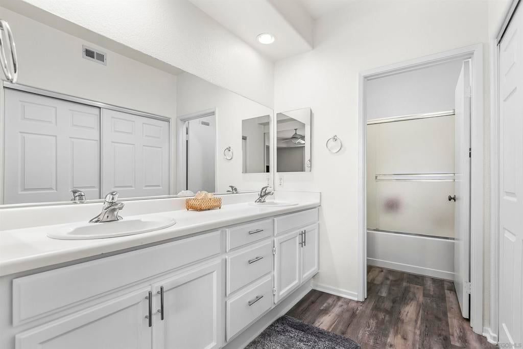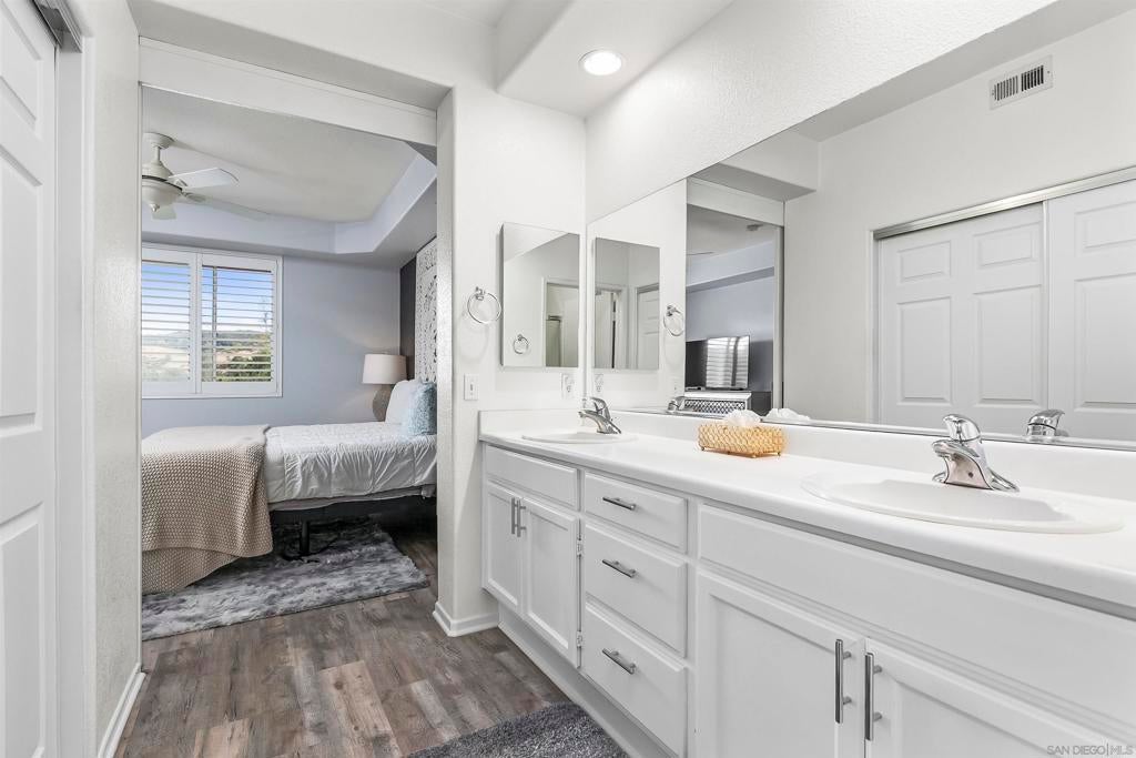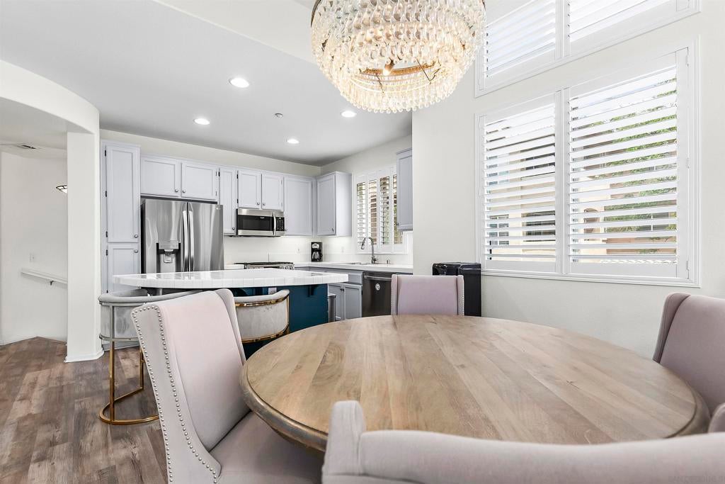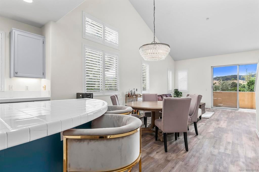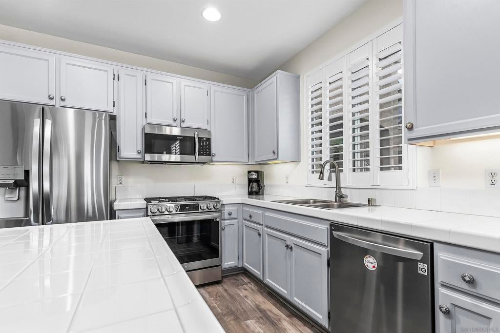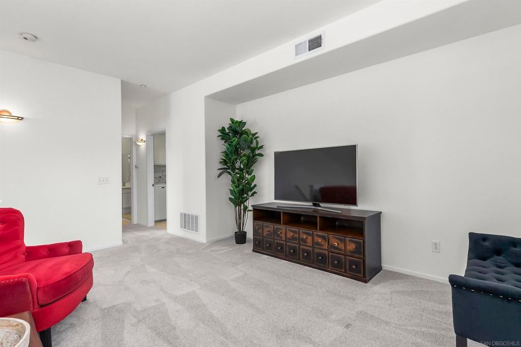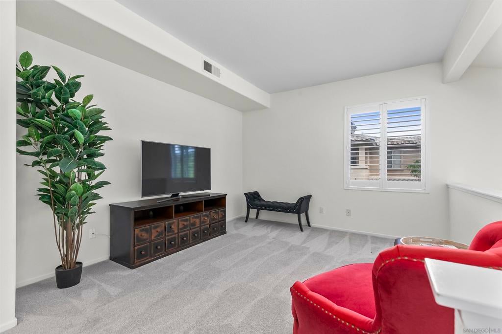 Welcome to this beautifully maintained 2-bedroom, 2-bathroom townhome with an added loft space—perfect for a home office, guest room, or creative studio—located in the desirable gated community of Fairway Villas. This unit has GOLF COURSE VIEWS of Singing Hills 10th hole! Step inside to a bright and airy open-concept layout featuring luxury vinyl plank and new carpet throughout. The updated kitchen is a chef’s delight, complete with a central island, tile countertops, stainless steel gas range, built-in microwave, and refrigerator. The spacious main floor consists of the living and dining areas that flow effortlessly and offer views, making entertaining a breeze. Upstairs, the versatile loft provides additional space to suit your lifestyle—ideal for working from home or relaxing in a cozy reading nook. The generous primary suite offers a walk-in closet, dual vanity sinks, and private toilet and shower room. Other features include huge walk-in closet on lower level, attached 1-car garage, and large laundry room.