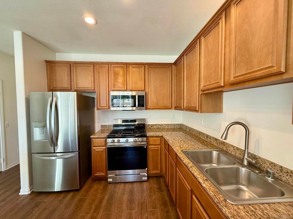 Experience Refined Urban Living at Park Avenue Discover this stunning luxury rowhome featuring an expansive, open-concept tri-level design within the secure, gated community of Park Avenue Homes. Thoughtfully maintained and beautifully appointed, this residence blends modern sophistication with timeless comfort. Step inside to a grand living room with soaring vaulted ceilings and abundant natural light streaming through large picture windows—creating an airy, elegant space perfect for relaxation or entertaining. Inside, this exceptional home showcases tasteful upgrades throughout — from fresh designer paint to wood look tile flooring. The gourmet kitchen is a chef’s delight, featuring elegant maple cabinetry, stainless steel appliances, generous storage, and beautiful granite countertops with a convenient breakfast bar for casual dining. Upstairs, the spacious primary suite offers a peaceful retreat complete with a walk-in closet, dual vanities, and an attached master bath. Two additional large bedrooms and a stylish full bath provide comfort and versatility for family, guests, or a home office. An attached two-car garage adds everyday convenience, while low HOA fees make this property even more appealing. FHA and VA approved, this residence is ideally situated in the heart of El Cajon, offering easy access to Hwy 67 and I-8, nearby trolley and transit options, and all the dining, shopping, and entertainment of downtown. *NOTE* Park Avenue Homes are Rowhomes, not townhomes — though they appear attached, each is constructed with no common walls for enhanced privacy and sound separation and title is issued as a single family home.