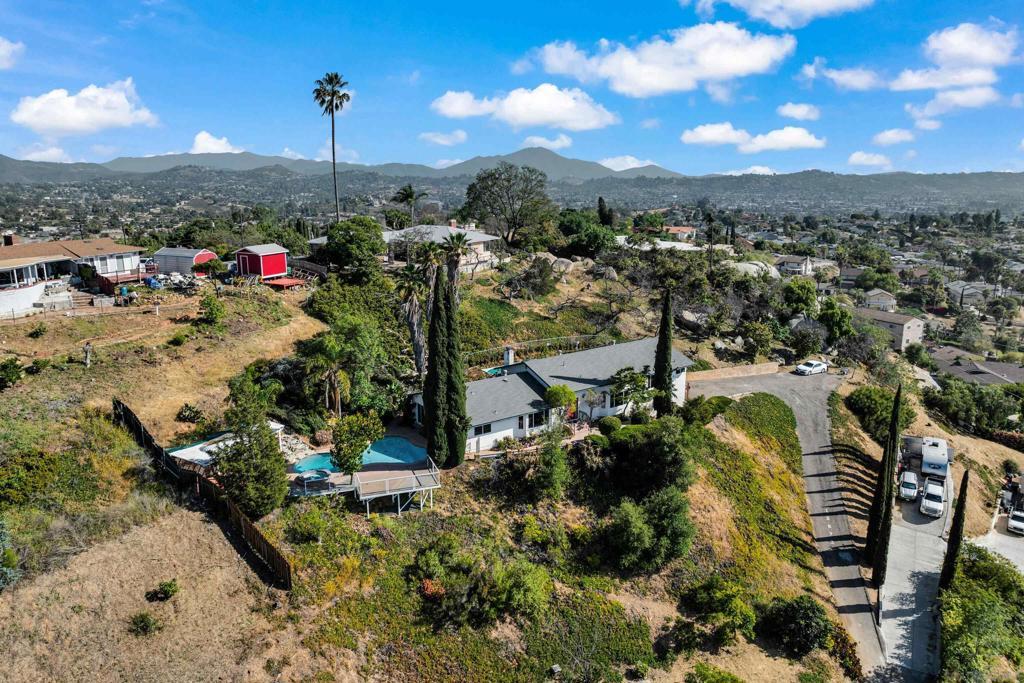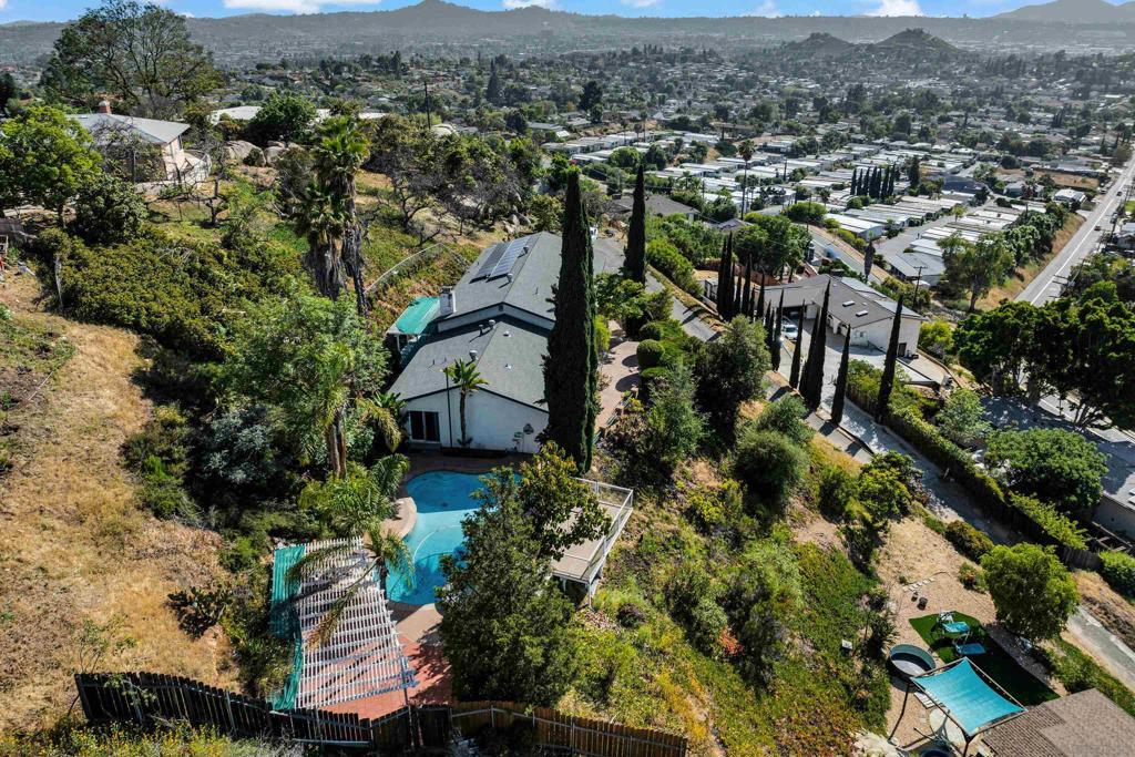Welcome to 12673 Jackson Hill Drive, a beautifully updated single-story home nestled atop a peaceful hill in El Cajon. Energy efficiency is a highlight, thanks to fully PAID solar panels that keep utility costs low. This spacious residence sits on a generous 1.12-acre lot, offering not only privacy and tranquility but also exciting land development potential on its .25-acre level portion. The home features a bright and open floor plan with modern finishes and thoughtful design throughout. Step outside to enjoy a private pool and spa jacuzzi perfect for relaxing or entertaining while taking in the breathtaking mountain views that surround the property. Downstairs, a cozy office nook located in the garage provides a quiet space for work or creative pursuits. Whether you're looking for a serene retreat or a property with room to expand, this home delivers comfort, functionality, and opportunity all in one.