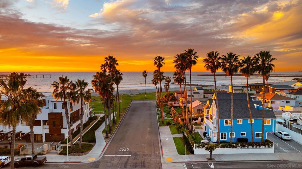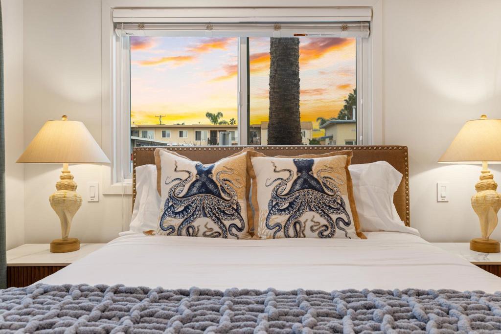 Ocean Beach Cottage with Views Just a half block from the sand and park, this charming 2BR/2BA single-level unit offers stunning ocean and pier views from the living room and front yard. Fire up the BBQ while waves crash and the sun sets over the pier. Only 2 blocks from shops, restaurants, bars, and the iconic OB Pier. Boogie boards, chairs, towels, umbrellas, and sand toys provided—everything you need for a perfect Cape Cod-style coastal getaway. This fully upgraded beach cottage features an open floor plan with fireplace, wall-mounted TV, and breakfast bar. The kitchen has stainless steel appliances, quartz countertops, and is stocked for home-cooked meals. The king bedroom has its own bath with tub, while the second bedroom offers a queen bed. A full-size pull-out sofa in the living room provides extra sleeping space. The home also has A/C, though ocean breezes and the sound of waves make opening the windows irresistible. The private front yard is ideal for morning coffee, afternoon BBQs, or simply relaxing with ocean views. The swim- and surf-friendly beach is just steps away, and the OB Pier—the longest concrete pier on the West Coast—is perfect for scenic walks, fishing, or dining. Tide pools below the pier are great for exploring. One of four units in the building, this cottage is perfect for couples, families, or groups needing multiple rentals. STR-11195L | TOT-617561