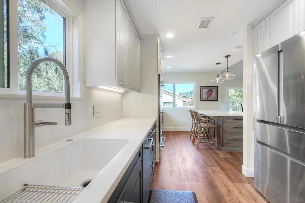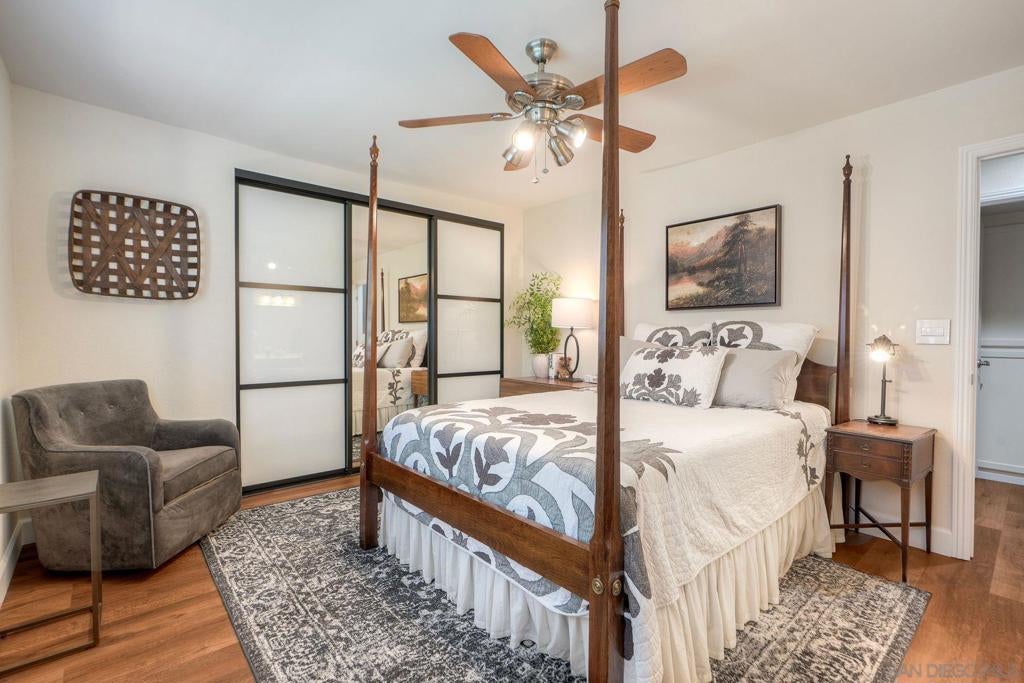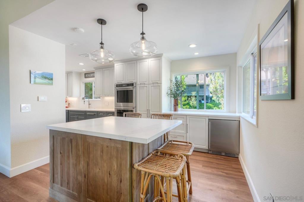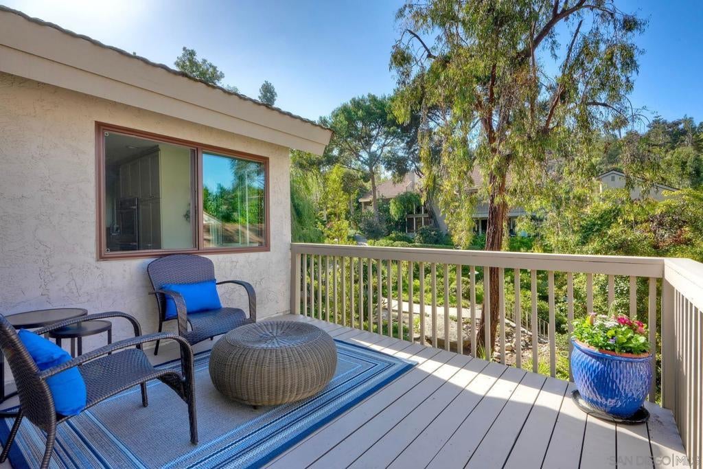 Fully Renovated Townhome in the Highly Desirable Kensington Park Villas Welcome to Kensington Park Villas, a serene, resort-style community tucked away in the heart of San Diego. This beautifully renovated 3-bedroom, 3-bathroom home spans approximately 1,875 sq. ft. and is one of the largest floor plans in the community. Thoughtfully upgraded from top to bottom, the home features a brand-new A/C system (installed in 2023), updated electrical throughout, a new water heater (2024), modernized bathrooms, and custom Elfa-built closets with interchangeable organizers. Perfectly positioned with no neighbors directly behind and scenic views of lush trees and a tranquil pond, this home combines privacy, style, and comfort in one stunning package. Step inside to a bright, open living space featuring tall, vaulted ceilings, modern finishes, and a newer fireplace that creates an inviting atmosphere. The gourmet kitchen is designed for both everyday living and entertaining, showcasing white and navy cabinetry, quartz countertops, sleek stainless-steel appliances, an induction cooktop, dual ovens, a warming drawer, and ample cabinet space with soft-closing features—including storage under the island. This home offers dual primary suites, one conveniently located on the lower level and one on the upper level. The downstairs primary suite features real bamboo wood floors, direct access to the private patio, and a luxurious ensuite bathroom with dual vanity sinks and a large walk-in shower. See Supplement => Upstairs, you’ll find the second primary suite, which was refreshed this year, along with an additional guest bedroom and full bath. Additional highlights include luxury vinyl plank flooring throughout, a balcony with serene views, and an attached 2-car garage with epoxy floors and built-in storage. Kensington Park Villas is truly a hidden oasis, offering a resort-like atmosphere with two swimming pools and spas, cascading waterfalls and ponds, beautiful mature landscaping, and pedestrian gates with direct access to the Village of Kensington. The gated community also features a clubhouse ideal for gatherings and events. Don’t miss this incredible opportunity to own a move-in ready, fully renovated home in one of San Diego’s most unique and desirable communities