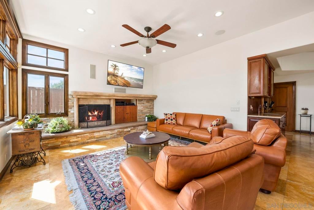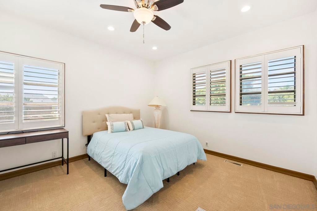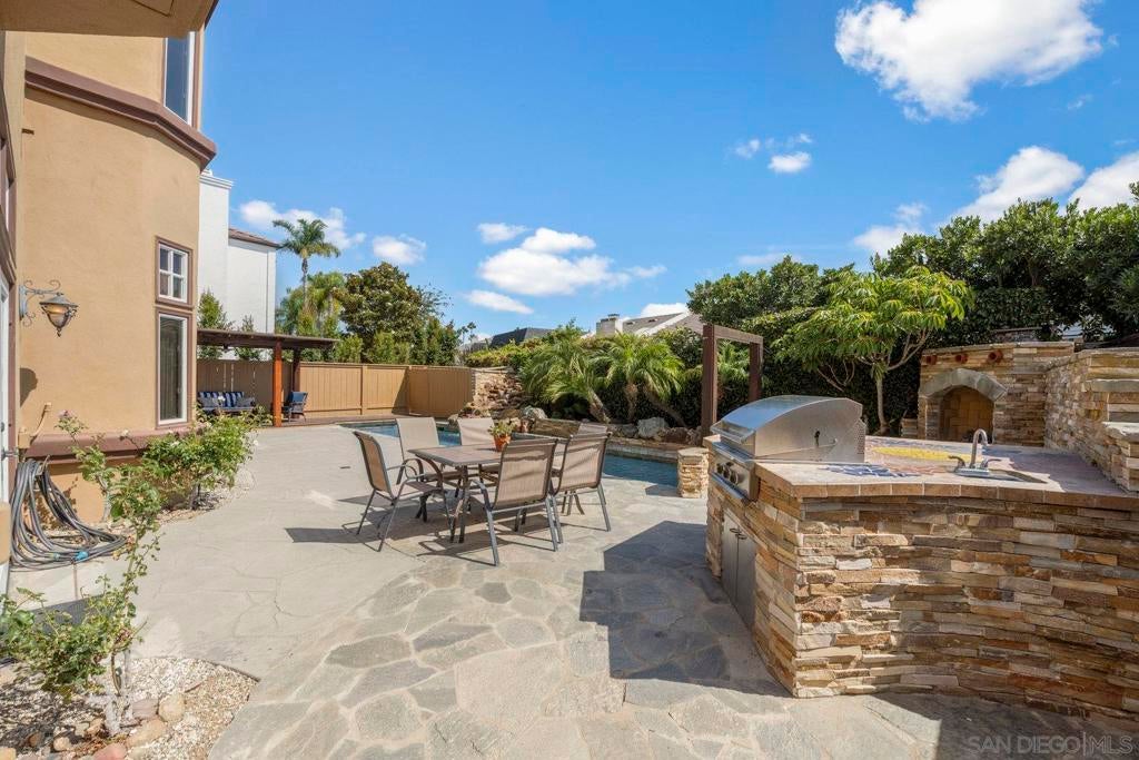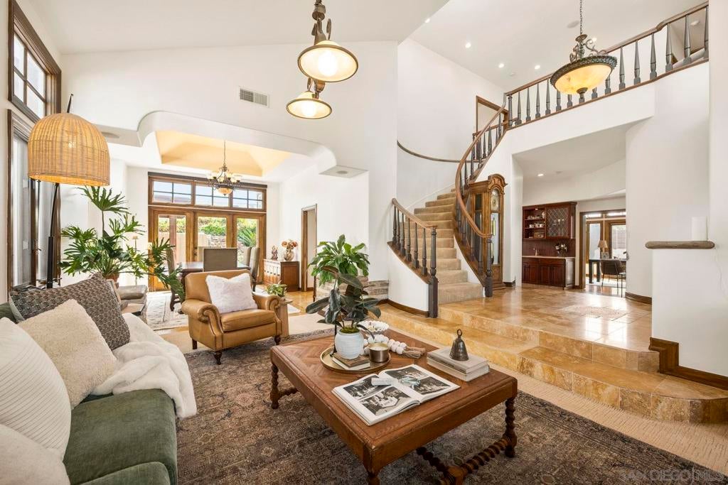Welcome to this beautiful 4 bedroom, 3 bathroom home located in the highly desirable Morgan Run/La Valle Community of Rancho Santa Fe. This light and bright home features soaring ceilings and an open floor plan designed for comfort and entertaining. The spacious living and dining areas flow seamlessly, highlighted by abundant natural light and timeless finishes. The kitchen offers ample counter space, generous storage, and a convenient layout for both everyday living. The home includes a large primary suite with a private bath and walk-in closet, along with two additional bedrooms upstairs. The downstairs bedroom offers incredible versatility—it features custom wood built-in shelves, a Murphy bed, and a private entrance, making it an ideal home office, guest suite, or multi-purpose space. Set on an ideal cul-de-sac location, the backyard is a private retreat with a sparkling pool, built-in BBQ, and cozy fireplace—perfect for entertaining or relaxing year-round. The home also comes with the benefit of solar, offering energy efficiency and cost savings. Morgan Run/La Valle is one of Rancho Santa Fe’s most sought-after neighborhoods, offering close proximity to top-rated schools, golf and country club amenities, dining, shopping, and coastal beaches. This property blends elegance, flexibility, and an unbeatable location in North County San Diego.
