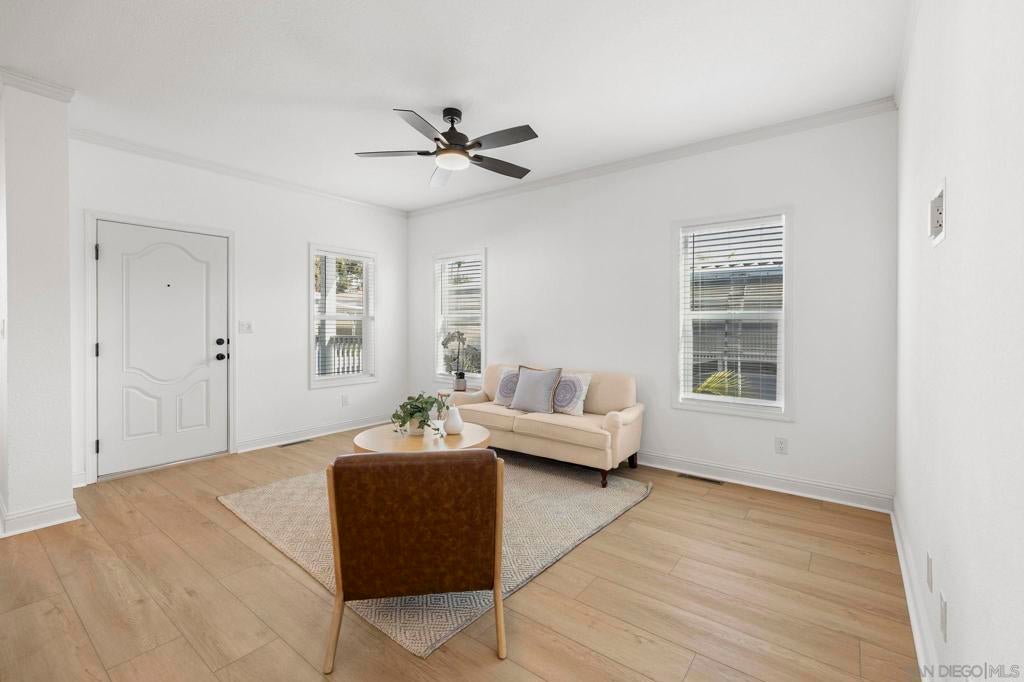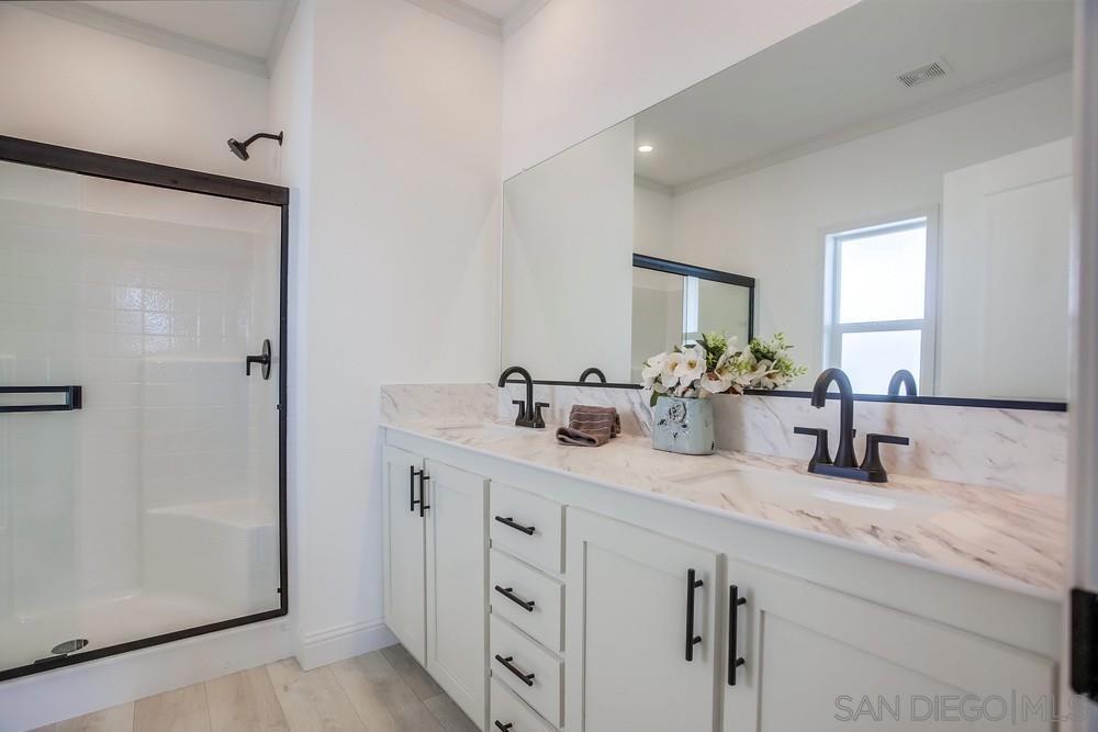 Live the coastal dream in this NEW, never lived in, gorgeous three bedroom, two bath home in the 55+ exclusive gated community of Lakeshore Gardens! Enjoy an open-concept layout including a chef-style kitchen with island. New hardwood laminate flooring recently installed in living room, dining area and hallway! Dual pane windows. Ceiling fans in living room and bedrooms. Walk-in closets in bedrooms. Expansive deck on front of home. Spacious shed included! Designed for comfort, style, and easy living. Community amenities support an active, social lifestyle. Lakeshore Gardens is an active 55+, luxury manufactured home community in Carlsbad. This park is located on 54 acres of land, has 383 home sites, & 10 small lakes. Lush landscaping, greenbelts & mature trees throughout, giving the community a park-like feel. Extensive waterfowl call this home. The ponds are home to turtles & many fish. Nature lovers have the best of all worlds here! The 2-story club house has a country club feel. The upper-level houses an office, lobby, card room with fireplace, billiard room & a beautiful balcony to enjoy ocean views. Lower level has a fabulous library, recreation room with a stage, kitchen & restrooms. A large patio with fountain, fire pit, & outdoor fireplace adjoins the community room, which is used for many events. Heated pool & spa, sauna beautiful gym, ping pong & shuffleboard tables. Various activities in the community, so residents can find friendship & companionship while attending events they enjoy. Activities include card games, bingo, monthly breakfasts, craft groups, golf groups, ladies’ luncheons & much more! You can be as active as you choose right here at Lakeshore Gardens!