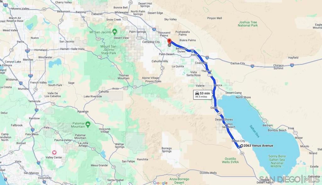 BIG corner lot measures 15,634 sq ft/.36 acre in the Salton Sea area! Build a home or keep for future development or sale. So much to see...Visitors Center, Sonny Bono Wildlife Refuge, Bombay Beach Ruins Art Project and more! Become part of the Lithium boom since materials to produce Lithium batteries has been found and possible production may begin in 2026. Once production begins projections say thousands of good paying jobs will be filled! Utilities may be nearby. About 60 miles to Palm Springs and 48 to Coachella Valley! Plus, recreational opportunities galore! Hiking, off roading, nearby Casino, and about an hour to Palm Springs and less to Coachella Valley!! Come see what Salton Sea is all about!! Utilities may be nearby.